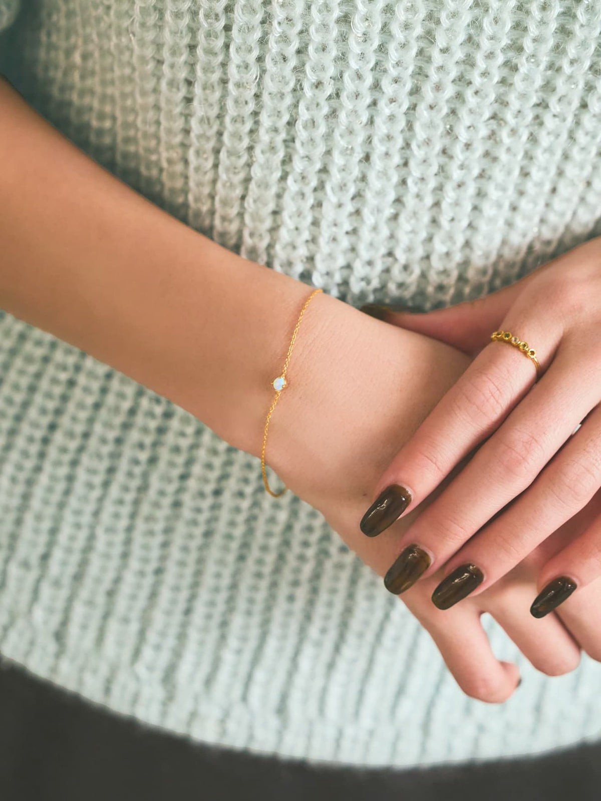 マルチカラーの輝きは華やかでありながら、あくまで上品。小柄さんの手元に馴染むサイズで、単品でも、重ねづけでもバランスよくまとまり、日常のスタイリングにさりげない彩りを添えます。