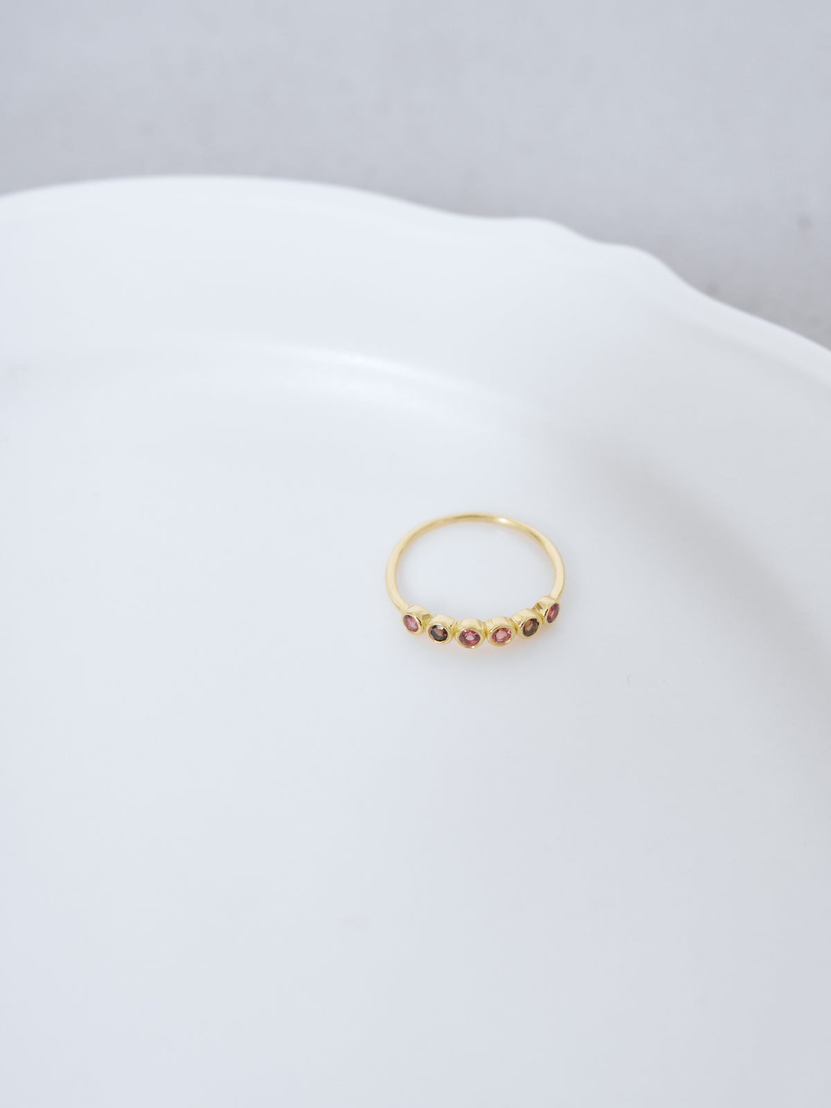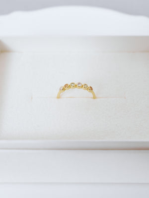 小さなラウンドカットのストーンを半周に並べた、繊細なハーフエタニティリング。