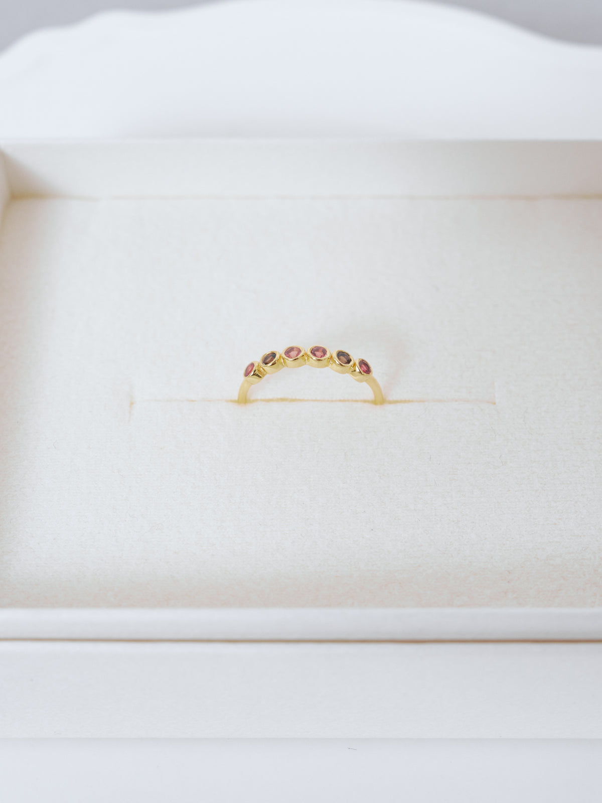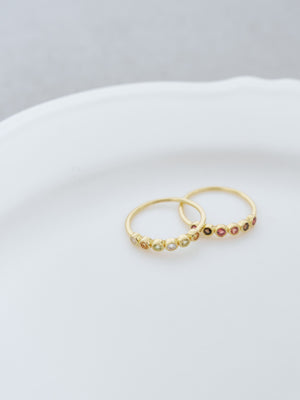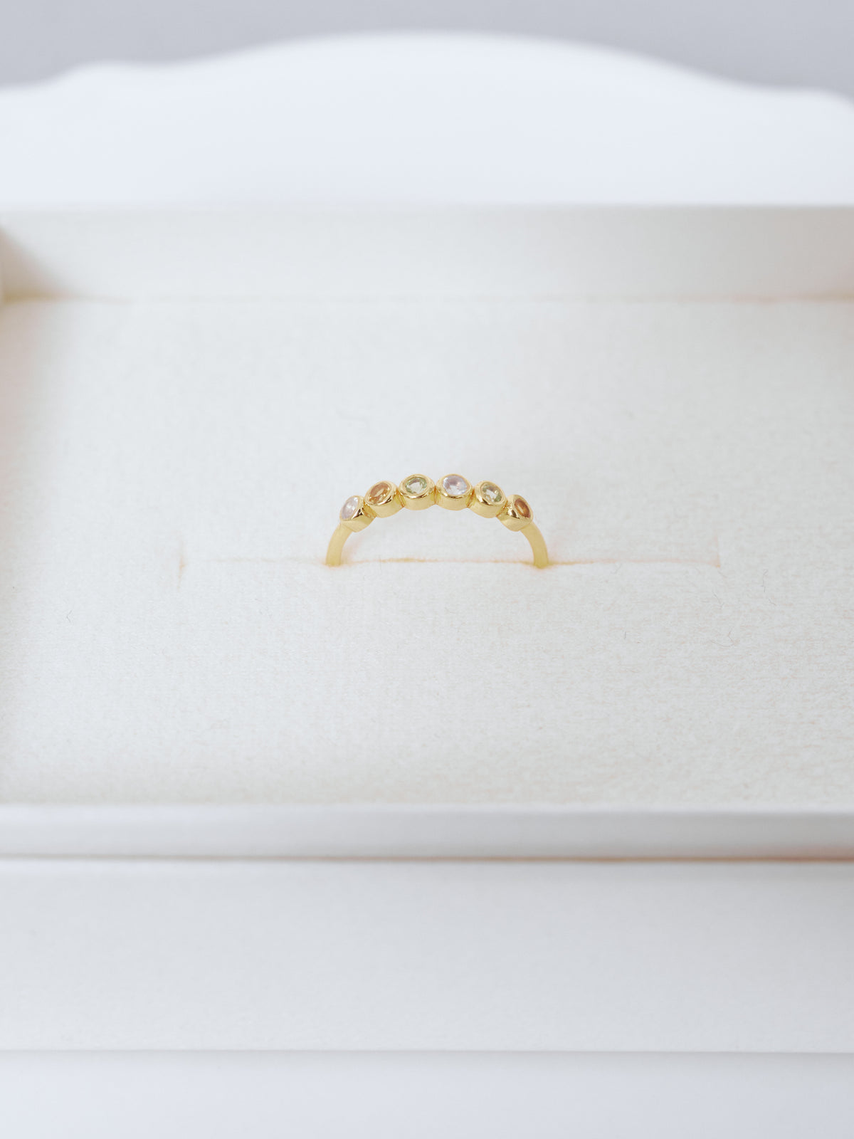 指先に柔らかな光を、上品マルチカラーのハーフエタニティリング