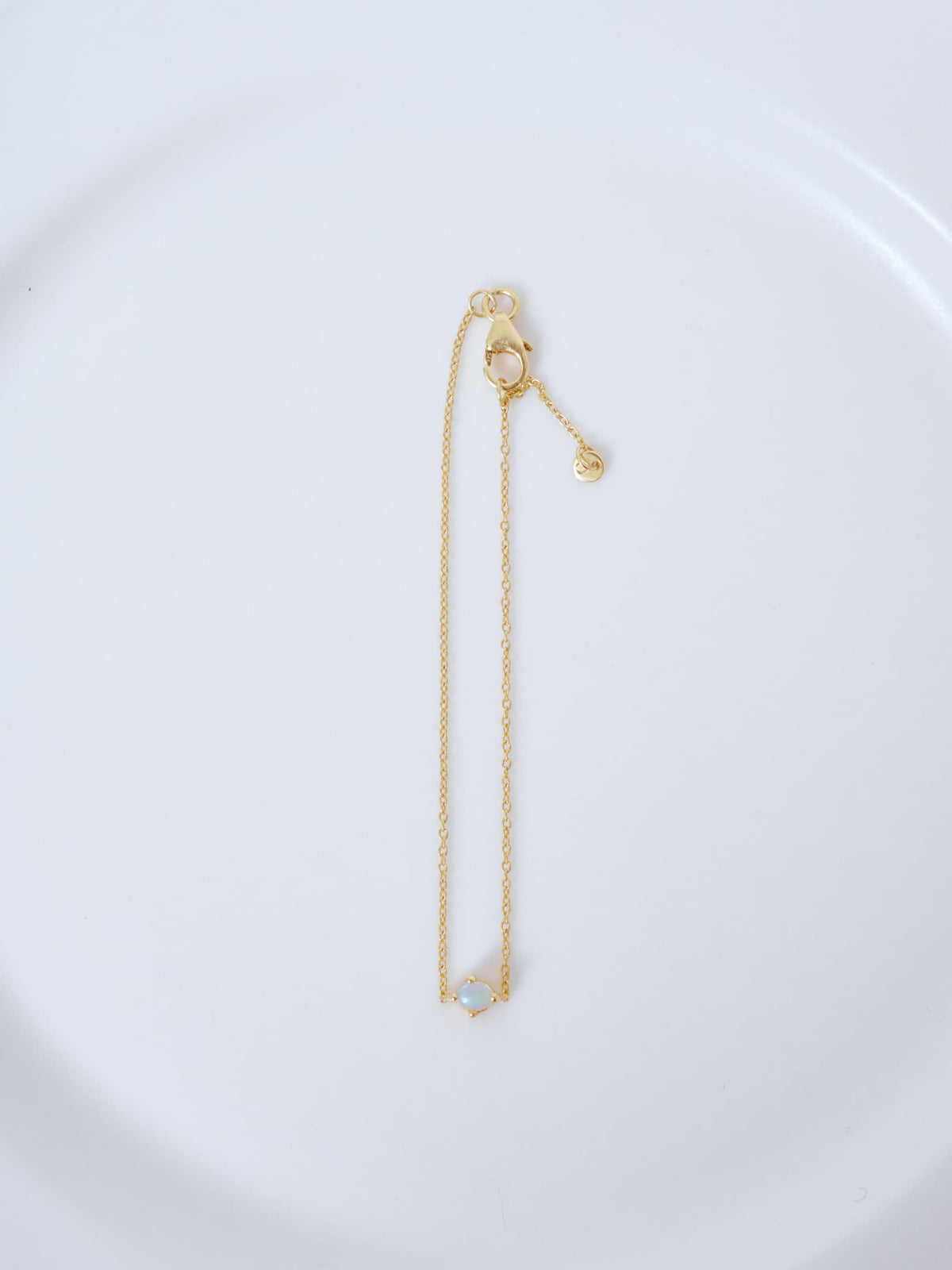 ストーンのきらめきを最大限に生かすため、爪留めで仕立てたミニマルなデザイン。華奢なチェーンが手元にそっと馴染み、さりげない存在感を放ちます。
