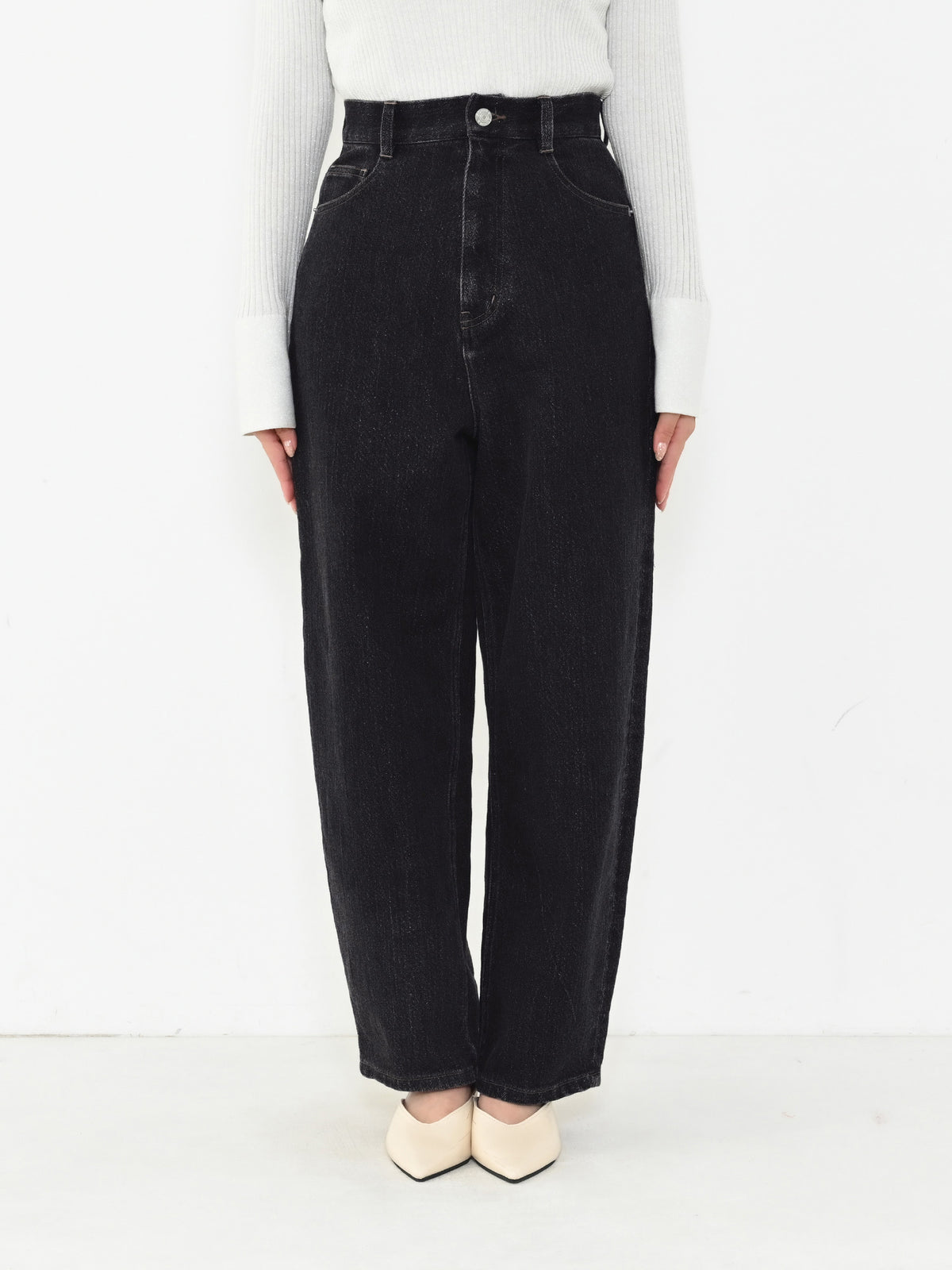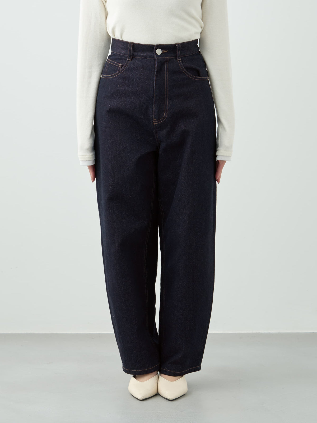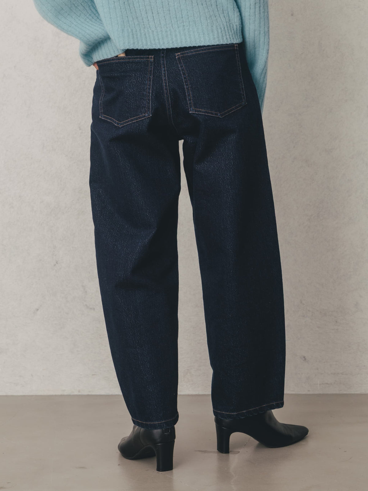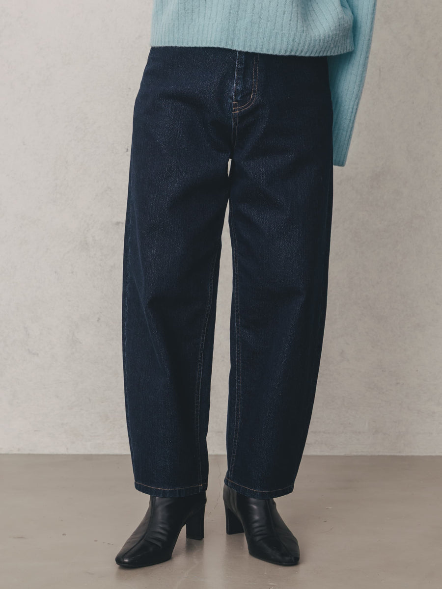 ハイウエスト×丸みのあるコクーンシルエットで、腰周りはすっきり、下半身はふんわり包み込むようなラインのデニム。