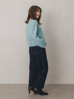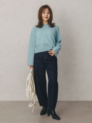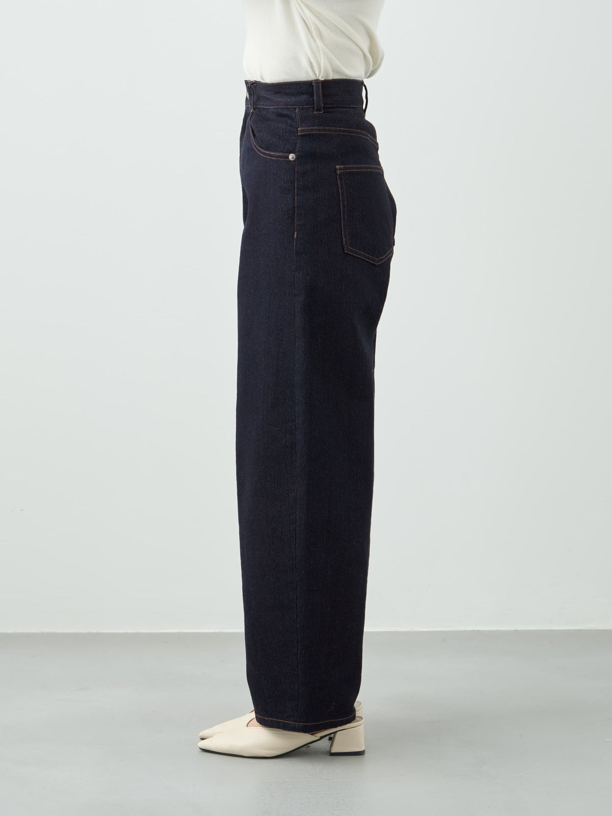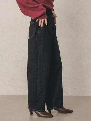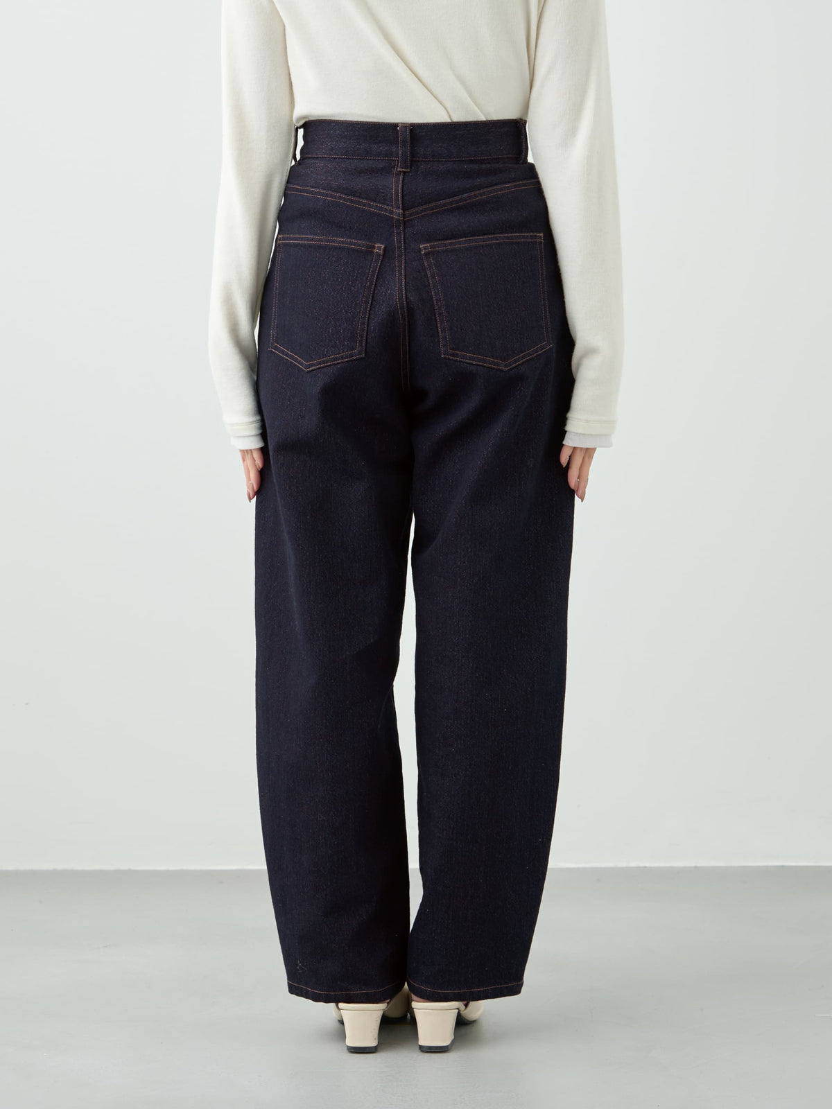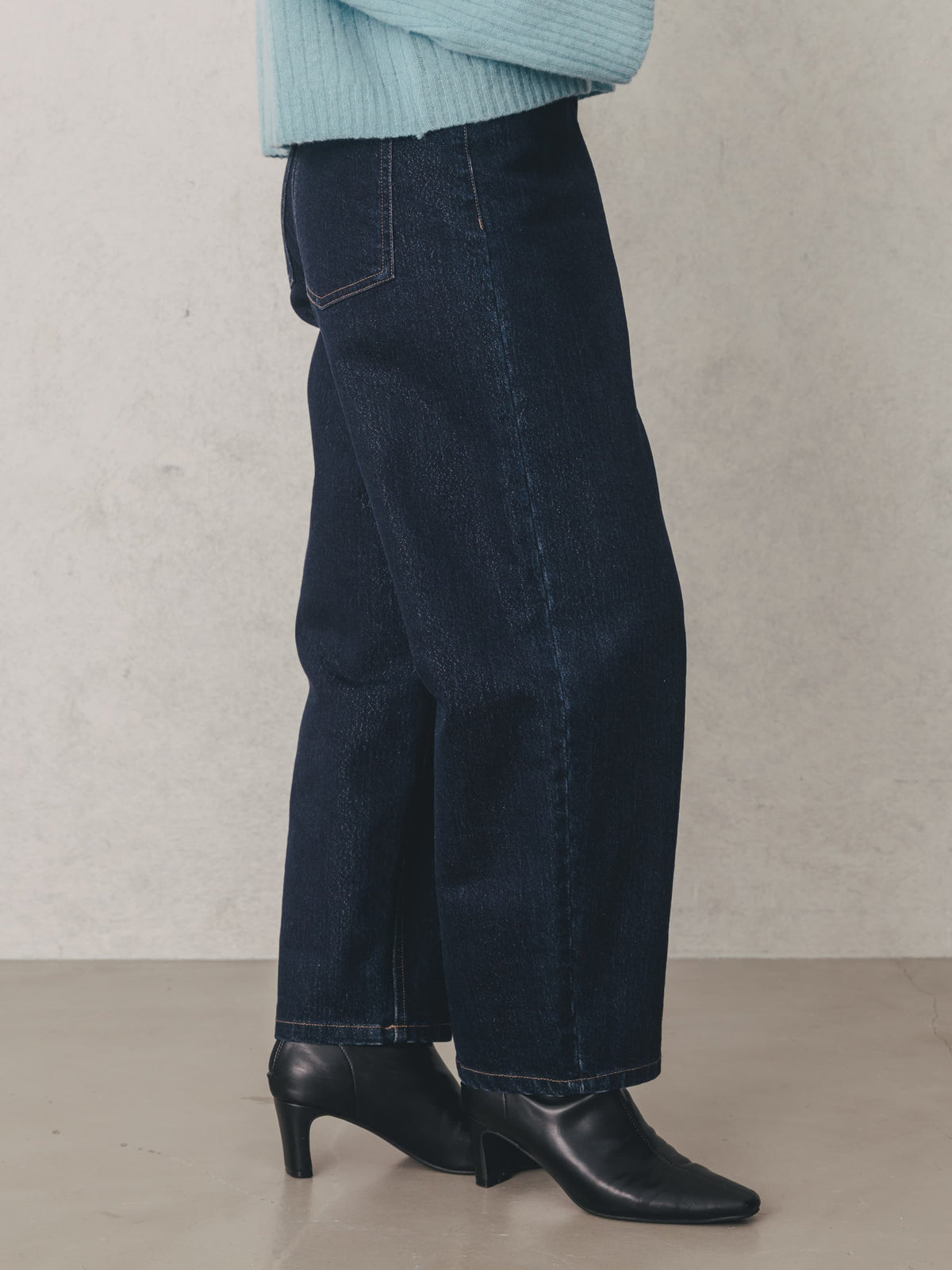 ハイウエスト×丸みのあるコクーンシルエットで、腰周りはすっきり、下半身はふんわり包み込むようなラインのデニム。