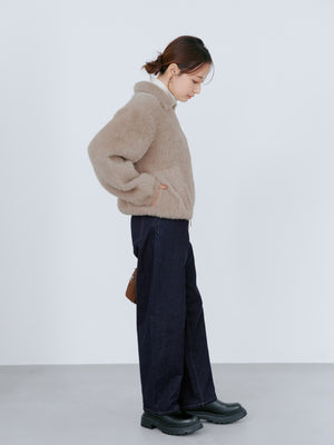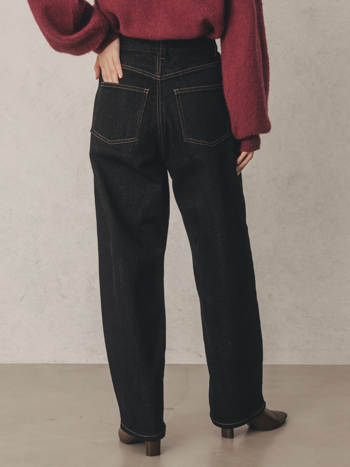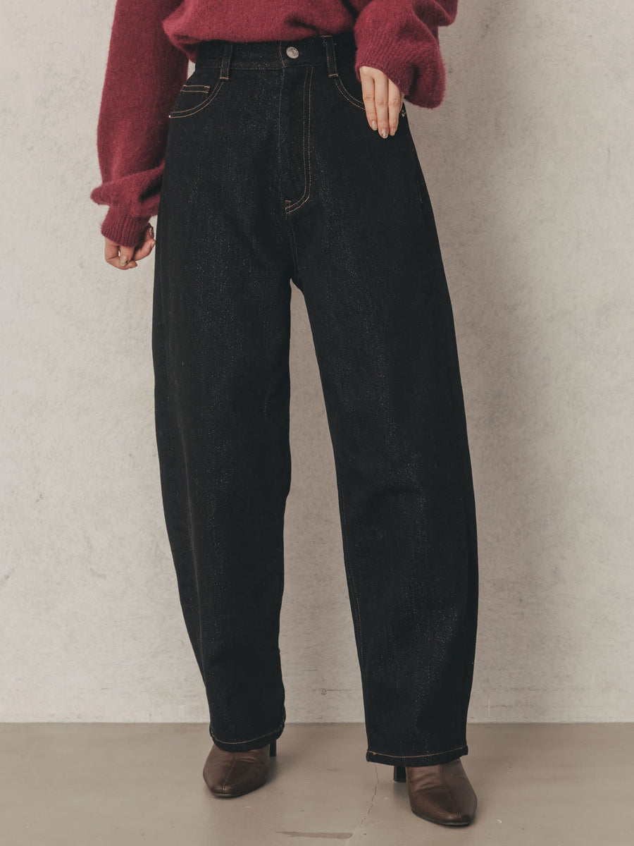 ほんのりきらめくラメ感がポイントのコクーンシルエットデニム。