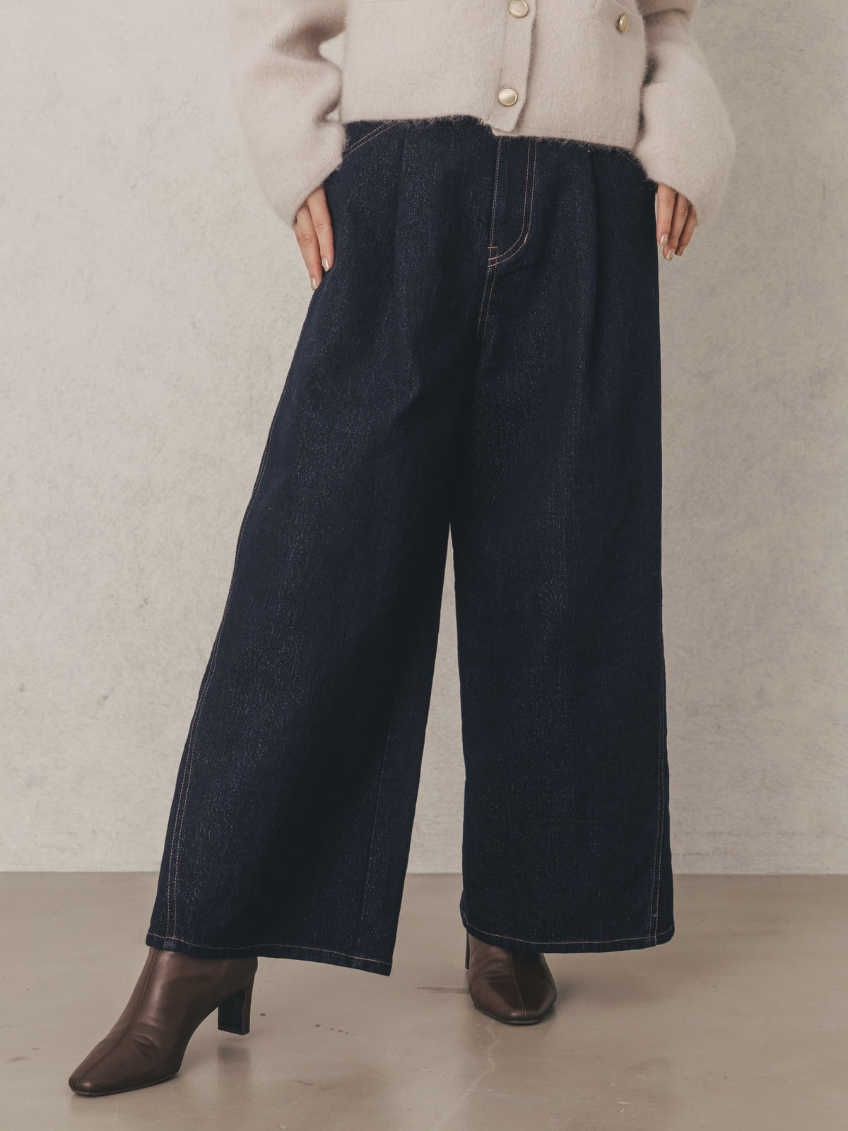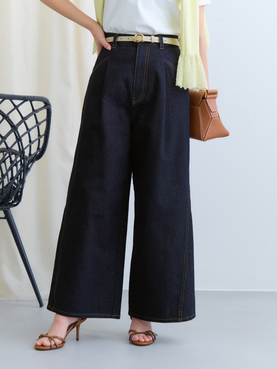 ほんのりきらめくラメ感がポイントのタック×ワイドシルエットのデザインデニム。
