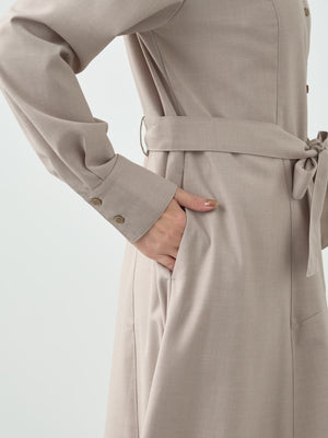 さらりとした肌触りで長いシーズン着ていただけます。小柄さんでもすっきりと着こなせるように、生地の厚みと分量感にもこだわりました。柔らかさと大人の気品が漂うニュアンスカラーのグレージュ、知的で大人見えするカラーのネイビーの2色展開。