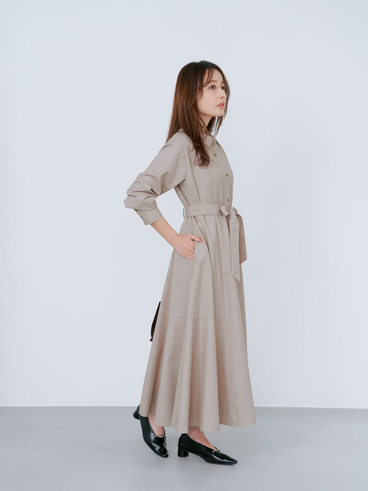 動くたび華やぐ、スタイルアップを叶えるシャツワンピース