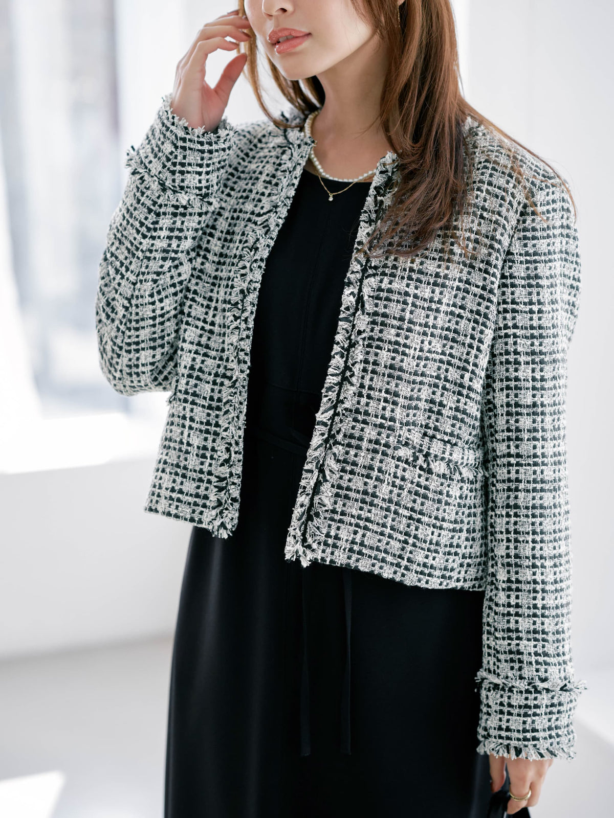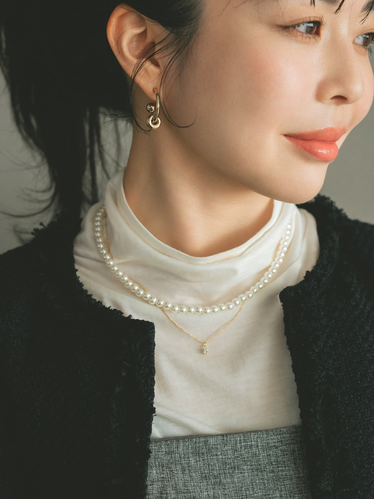 首元に馴染む長さに仕上げているので、フォーマルな装いにもぴったり。
