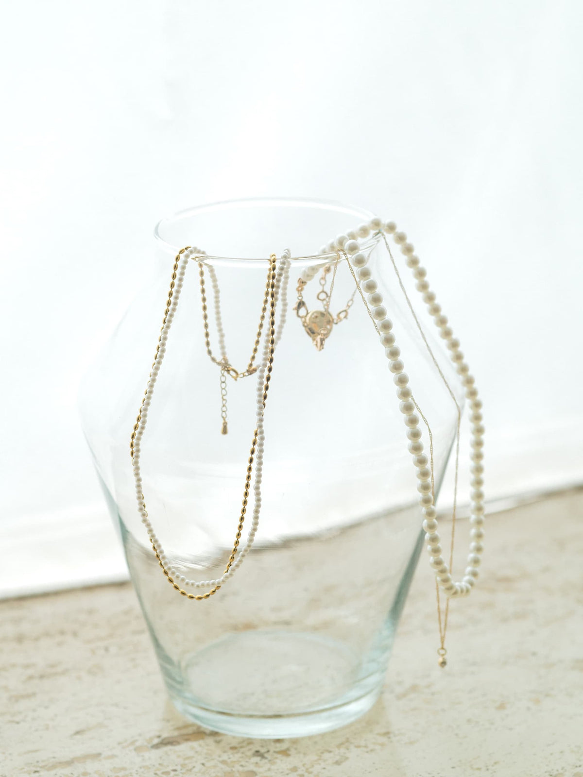 パールネックレスは、パールビーズを使用。