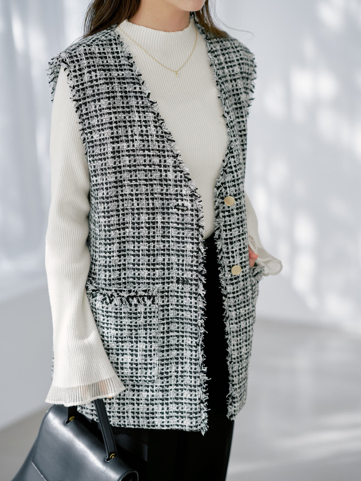 レイヤードでの着用に加えて、それぞれを取り外して単品使いもできる3WAYアイテム。