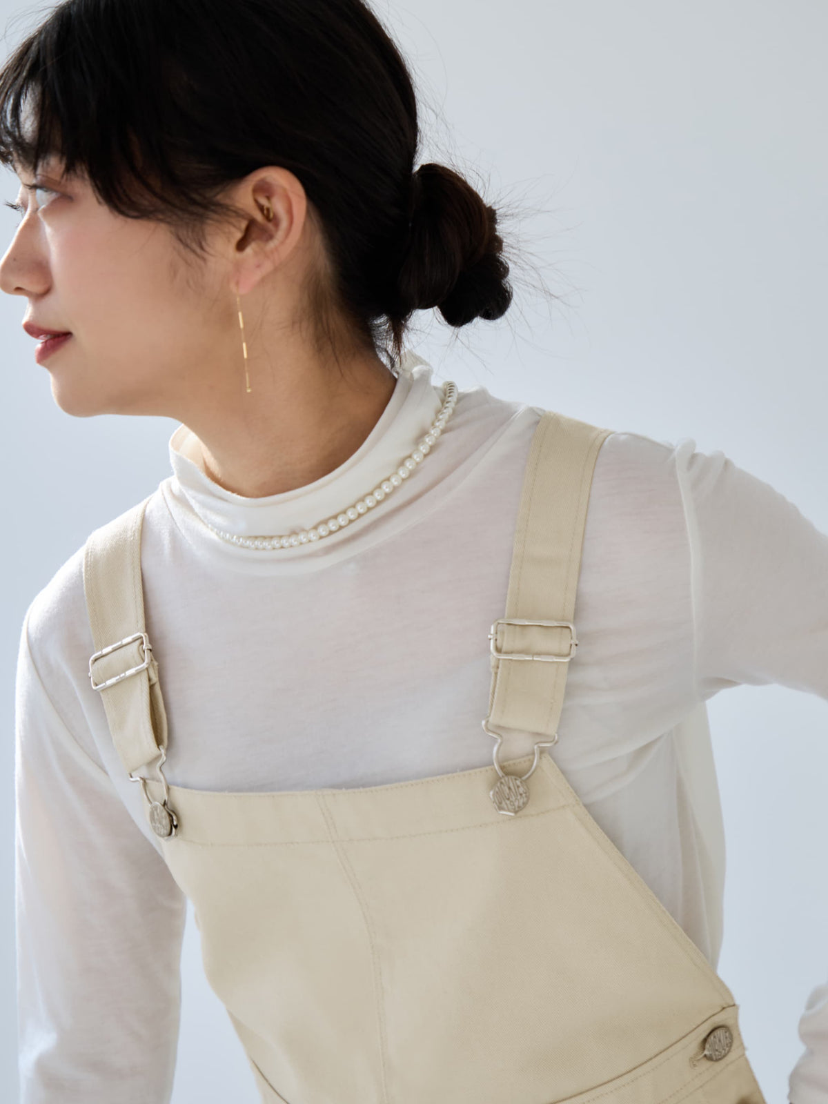 ウエスト切り替え位置、ベルト幅、身幅などに調整を重ねてスタイルアップを叶えながら、ワークニュアンスを存分に楽しめるアイテムに仕上げました。