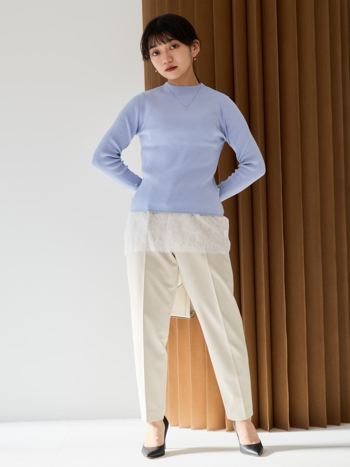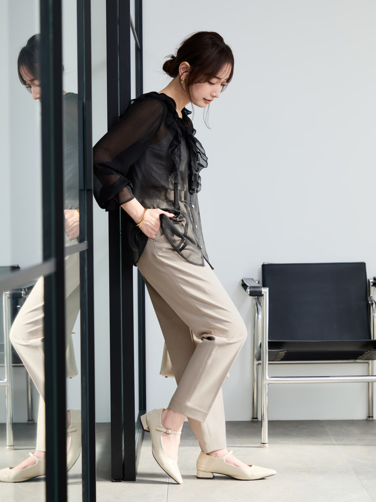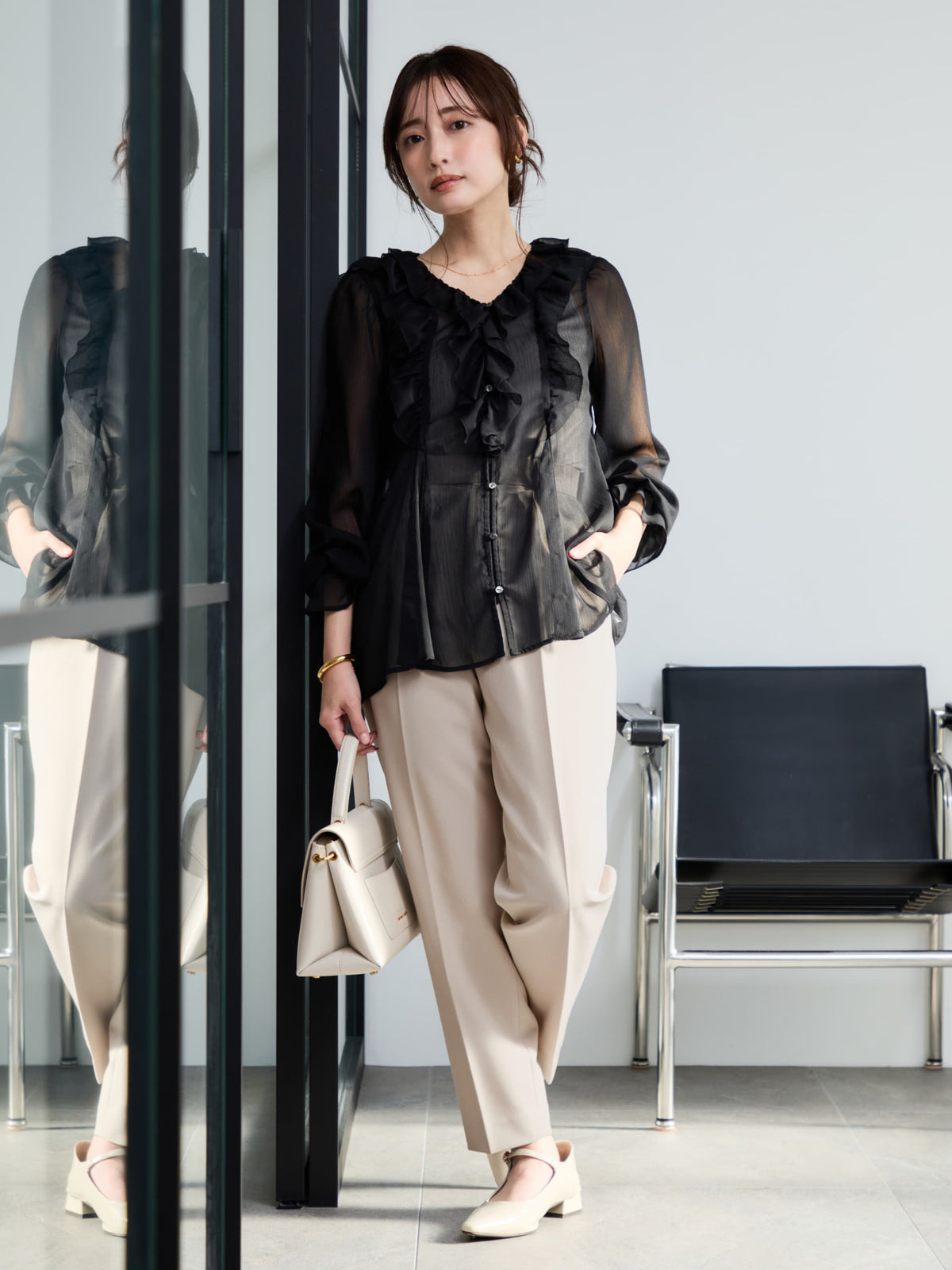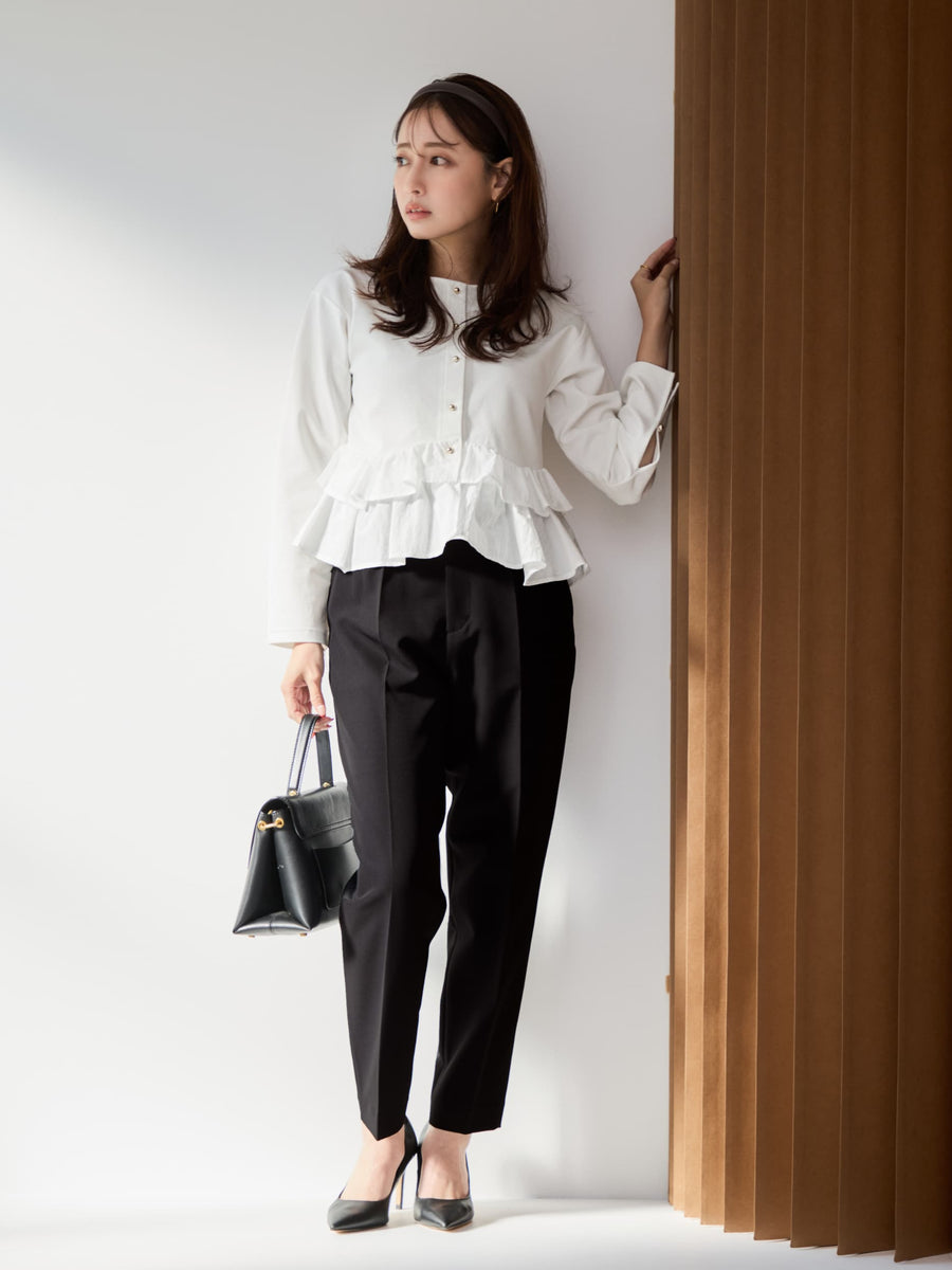 ブラウスやジャケットを合わせたきちんとした装いから、トレンドのペプラムなどデザイン性のあるトップスまで、幅広いアイテムとも好相性。