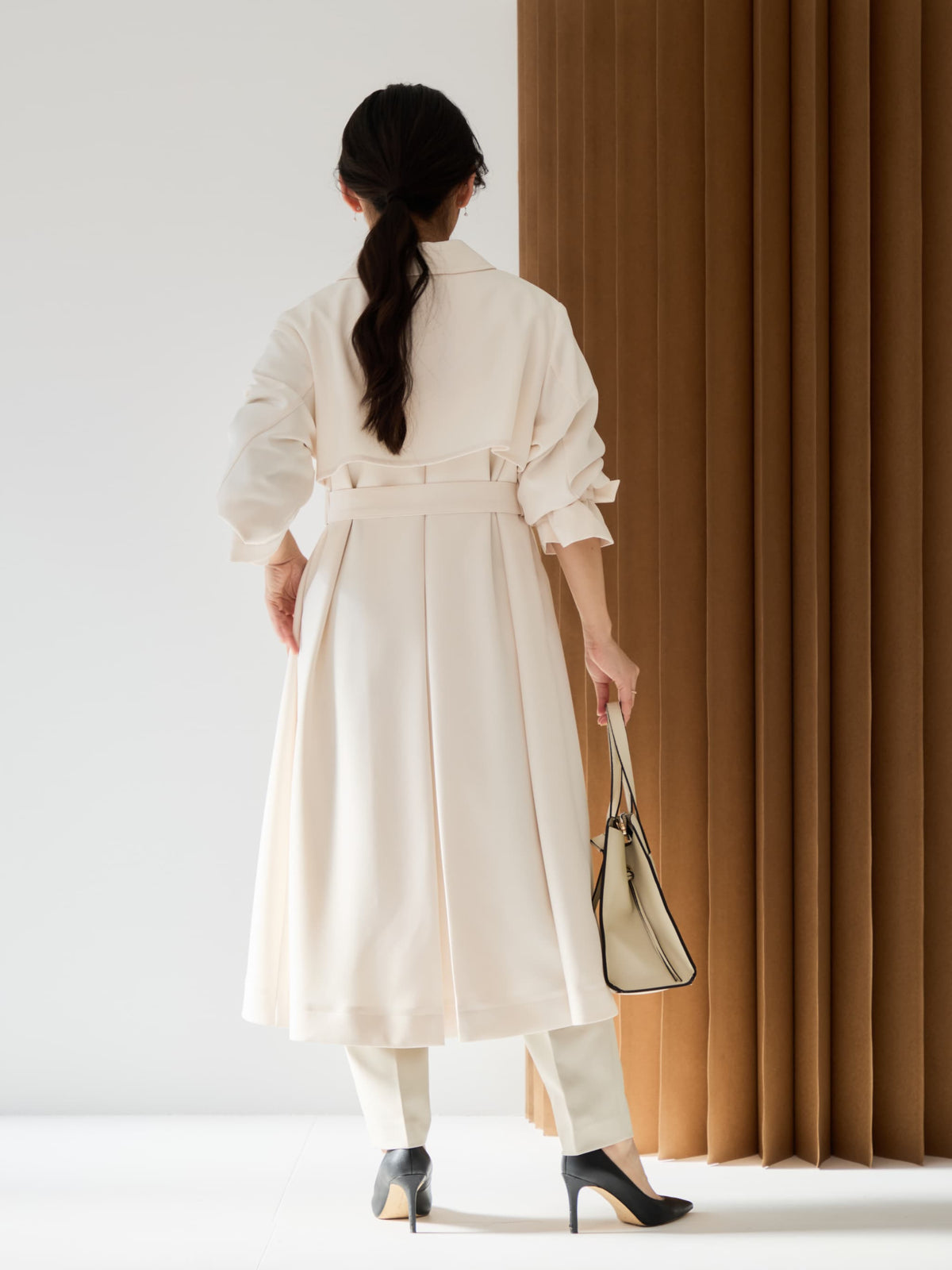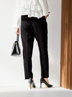 ラインの美しさと履き心地の良さ、両方を追求したワンタックテーパードパンツ。タックの分量や股上のバランスなど、美脚を叶えるためのシルエット設計にこだわりました。
