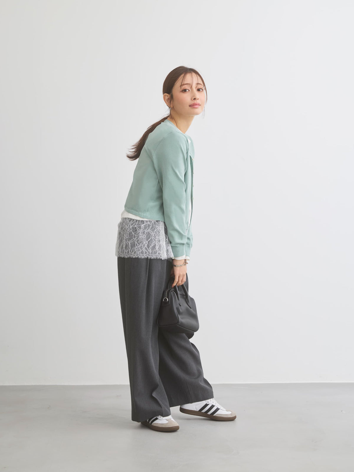 丈感はおへそより下で、短すぎず長すぎずなので、スタイルバランスも取りやすい!