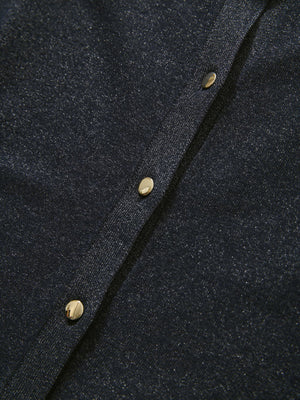 繊細なラメのきらめきとフロントに配した小ぶりのゴールドボタンが華やかさをプラス。