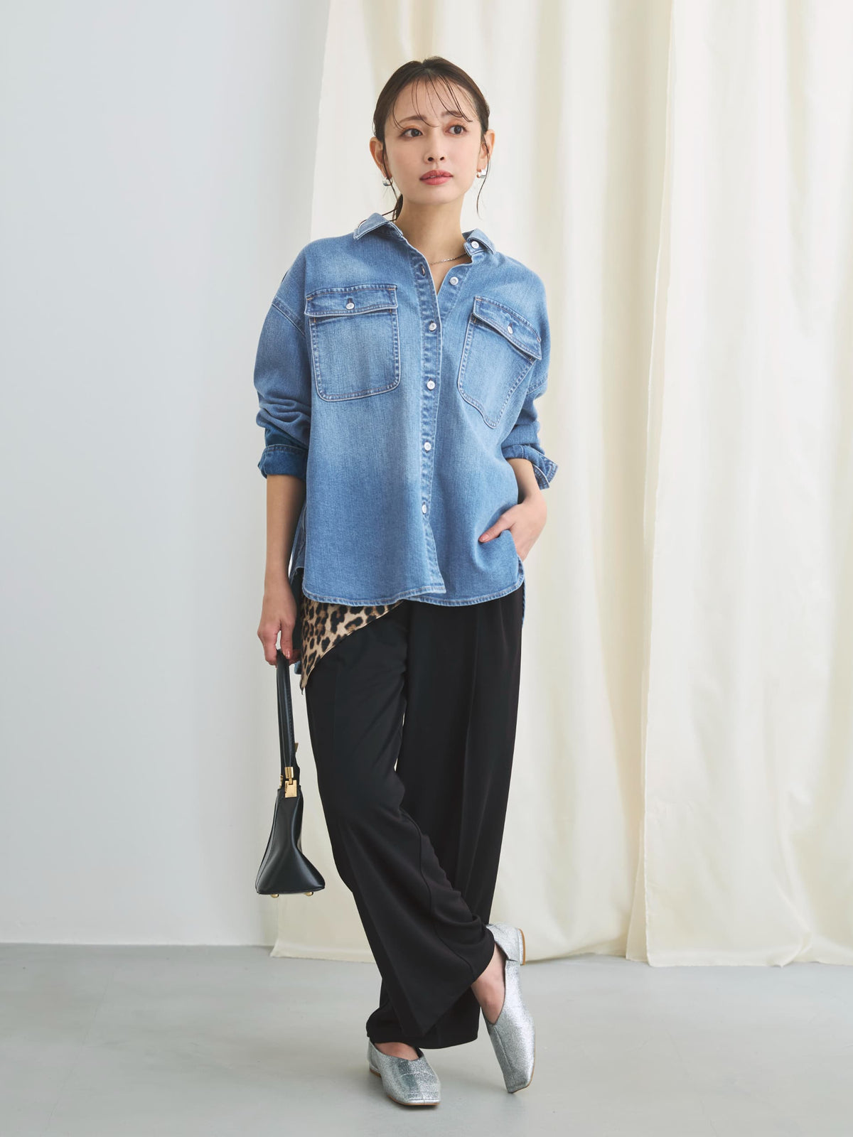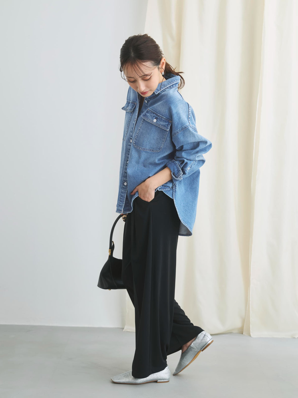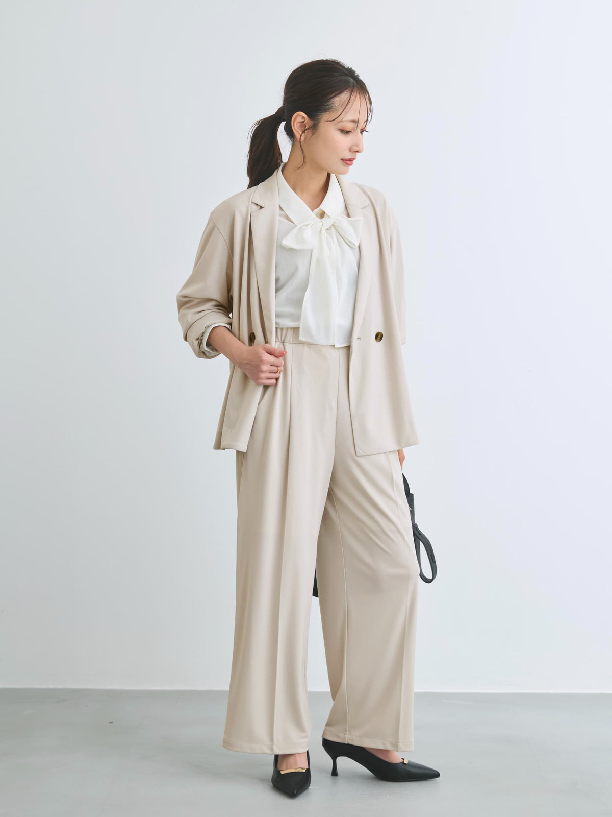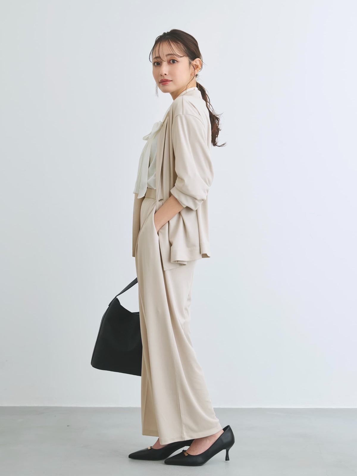 リラックス感のある着こなしもキレイ見えな素材感でカジュアルになりすぎずに日々のコーディネートを格上げしてくれる1枚。