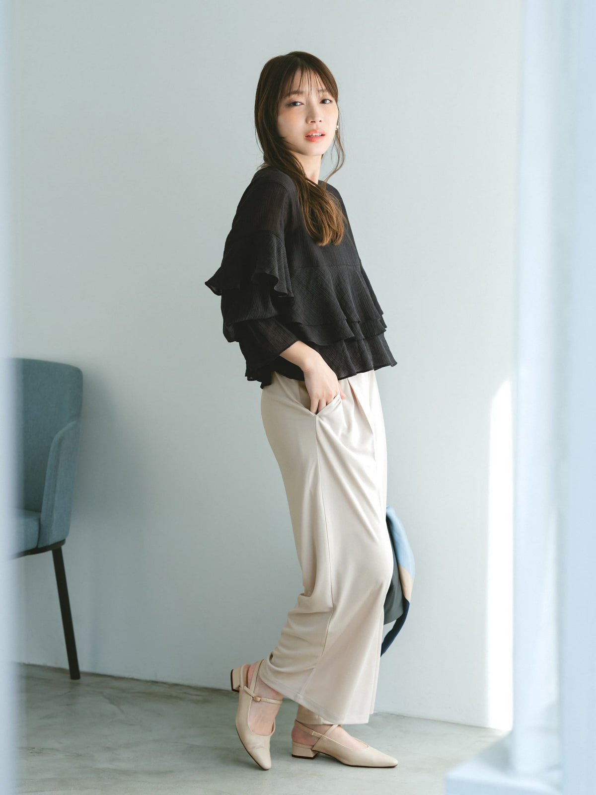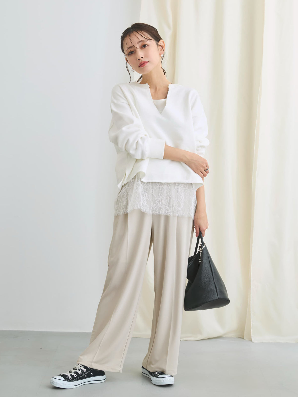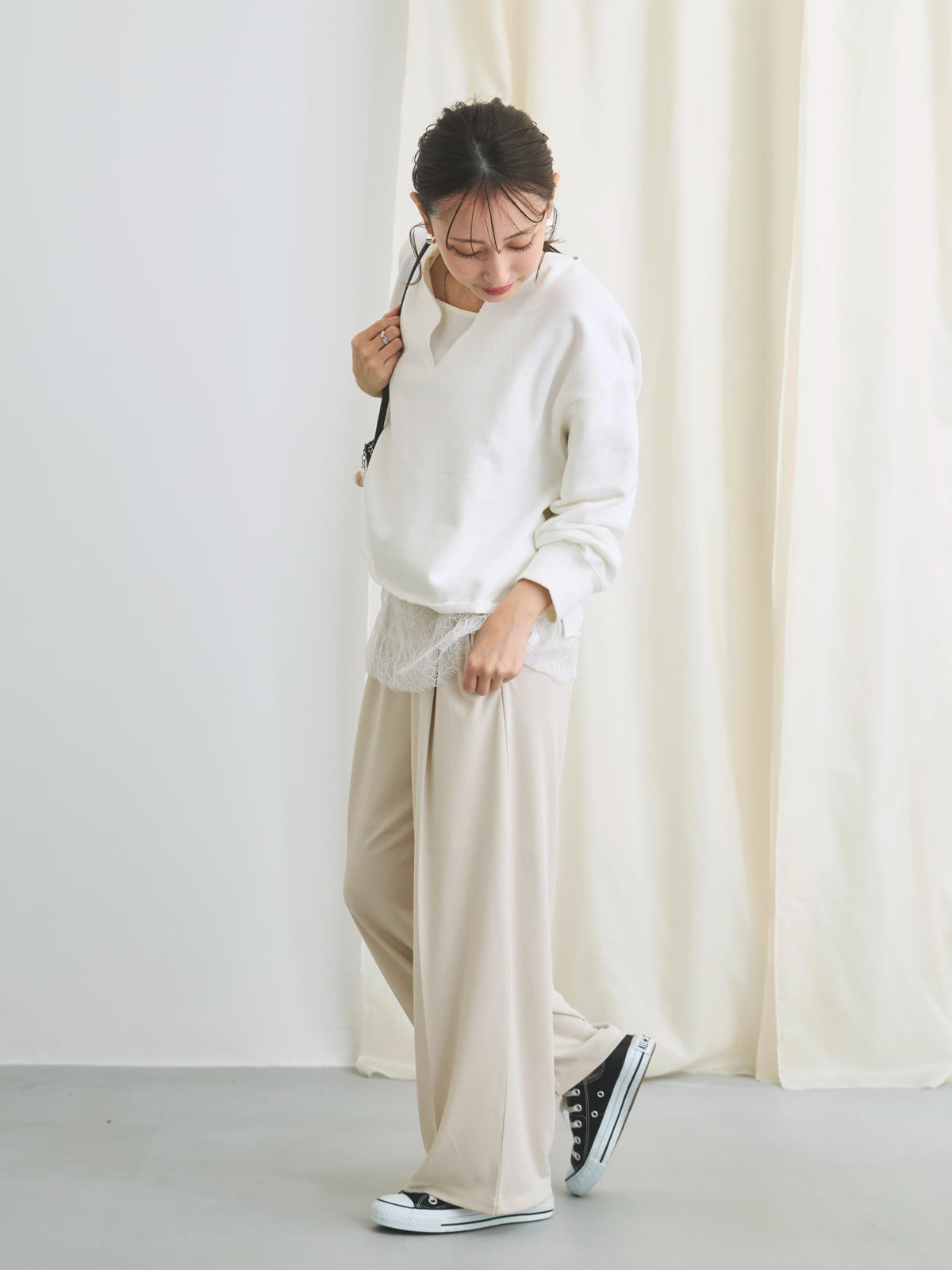 自然と体に馴染んでくれる落ち感のある素材が大人のこなれ感あるスタイルにマッチしてくれます。