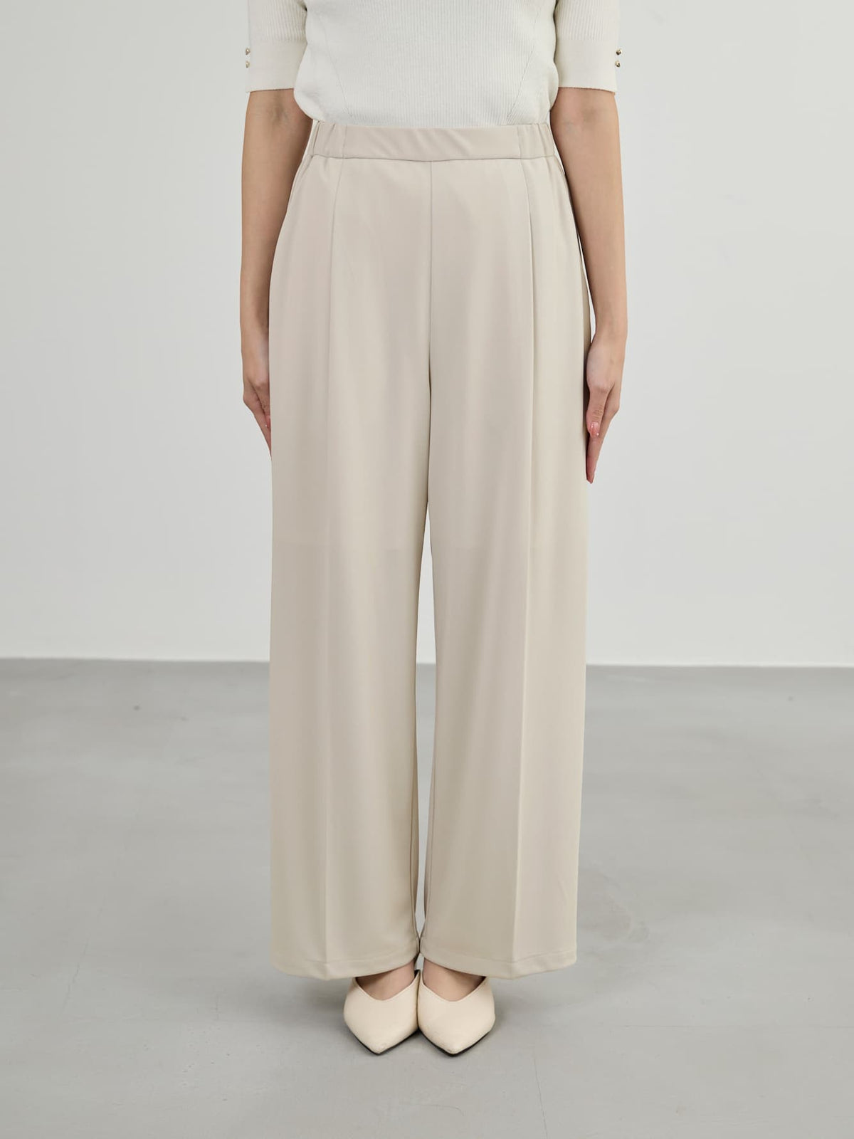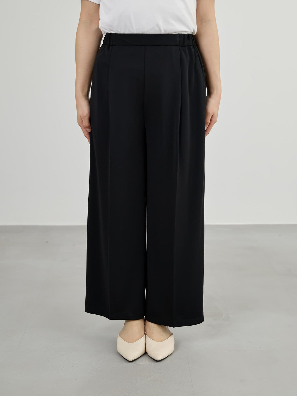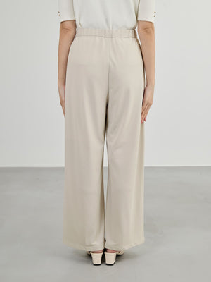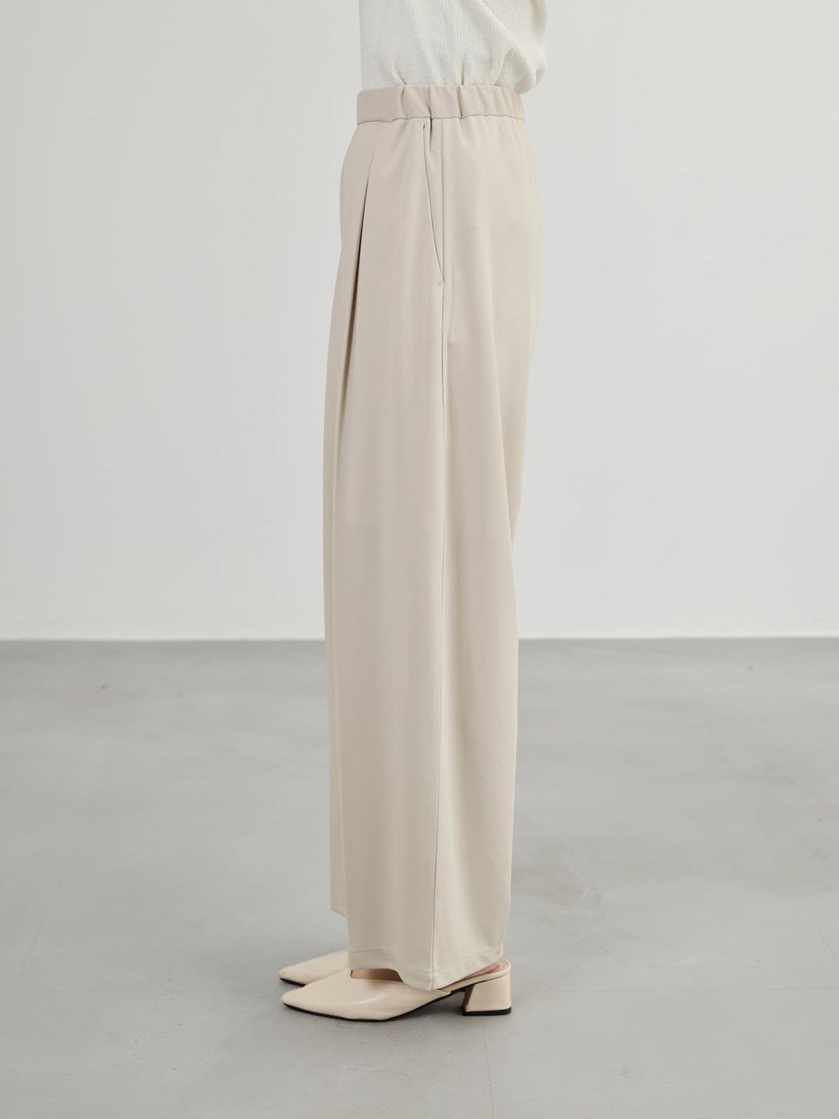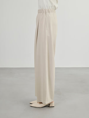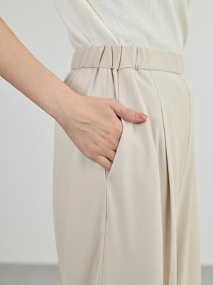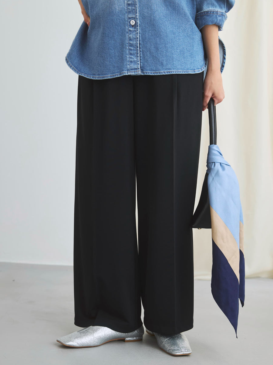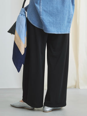 ラクチンなのにキレイ見えが叶うジャージ素材のタックパンツ。