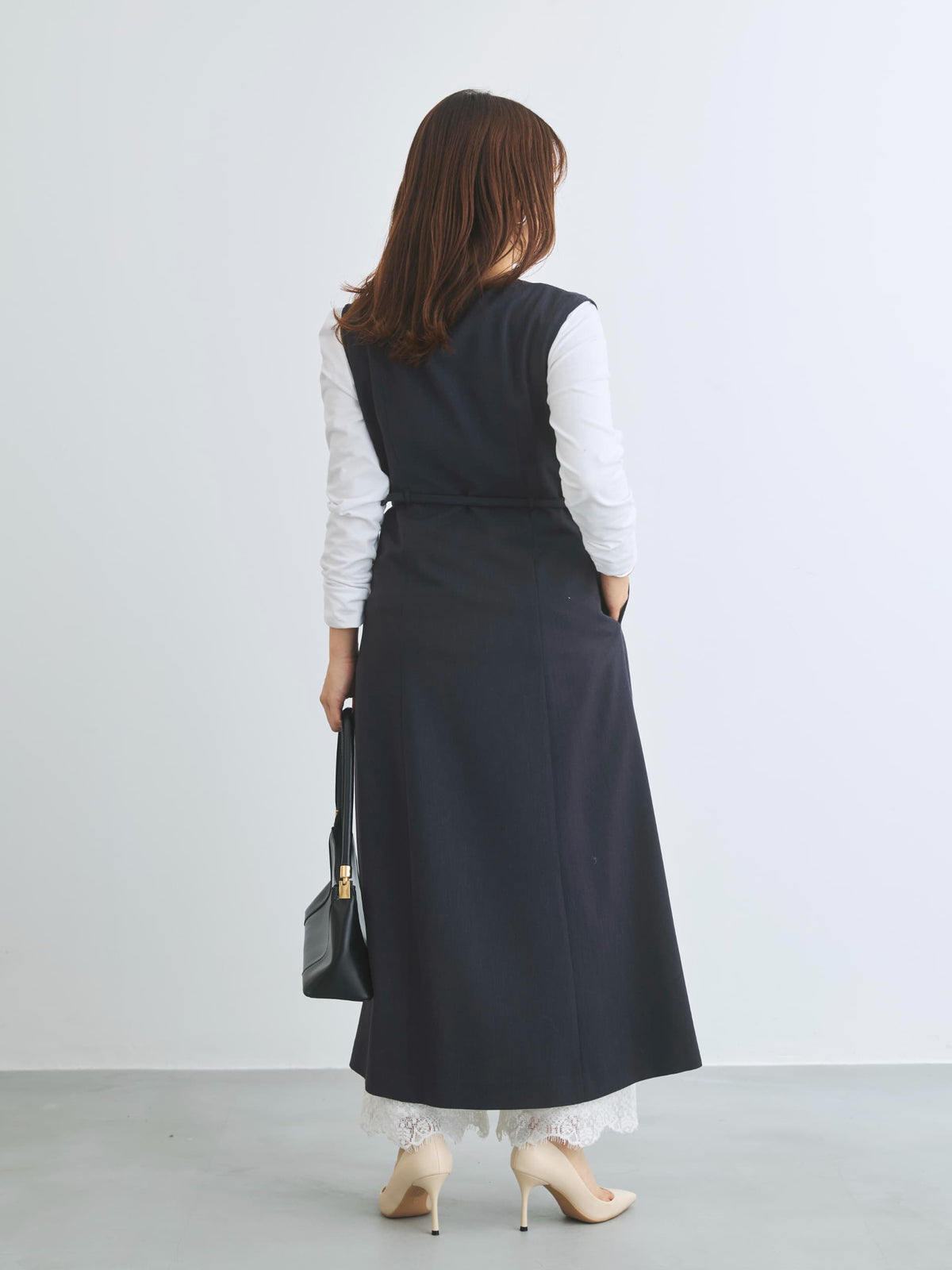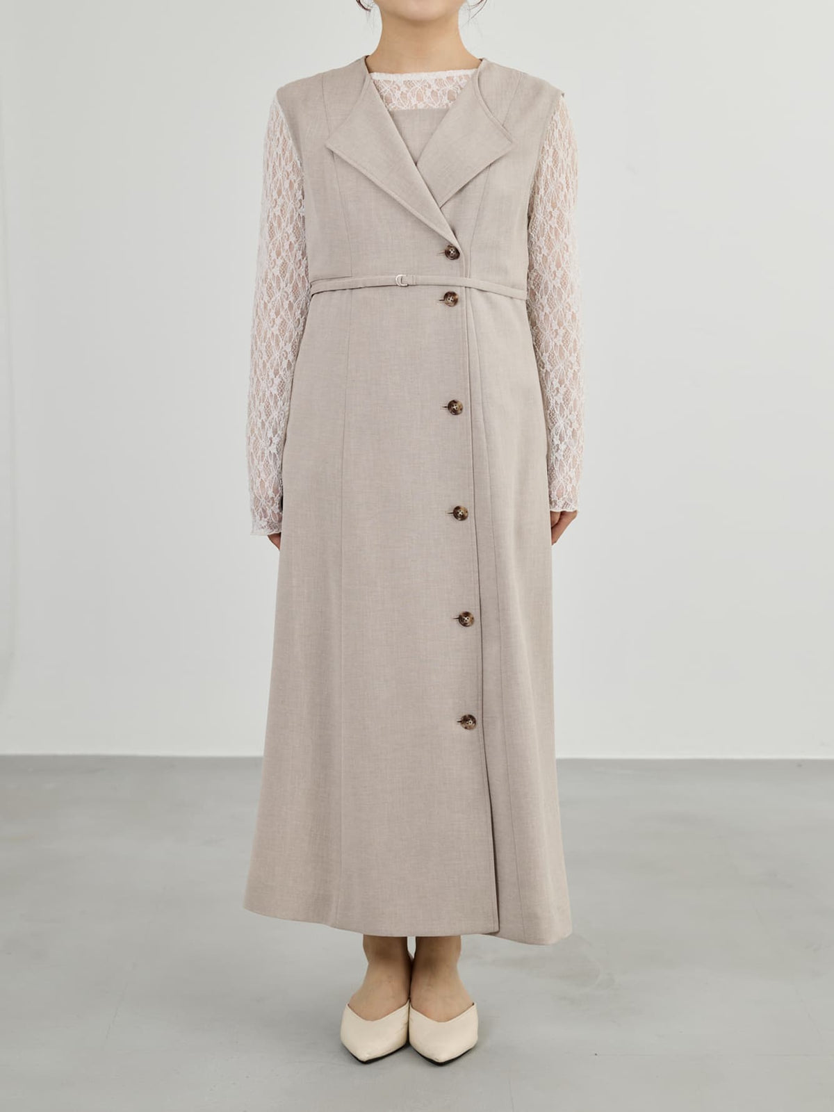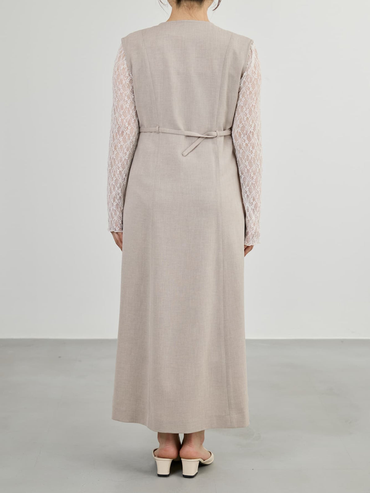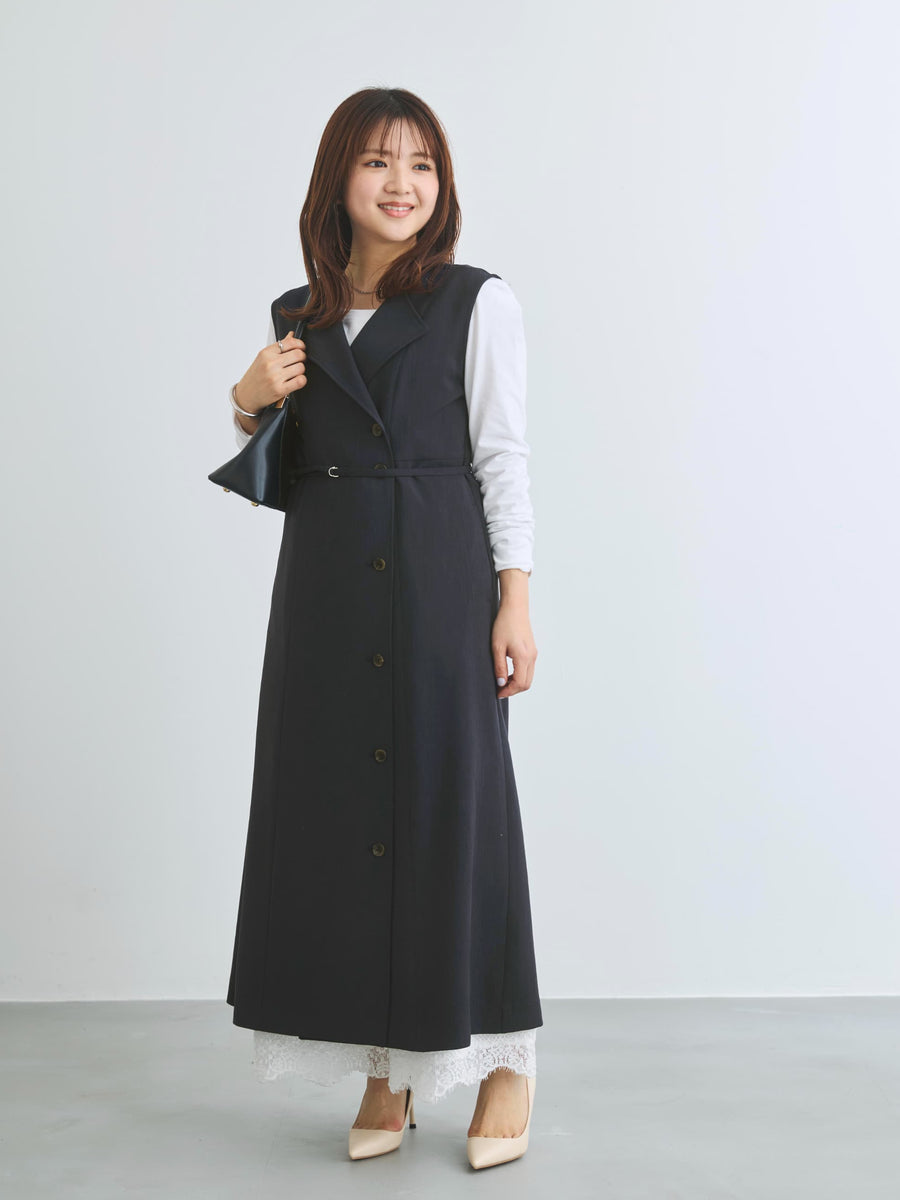 羽織っても映える上品素材のジレワンピース