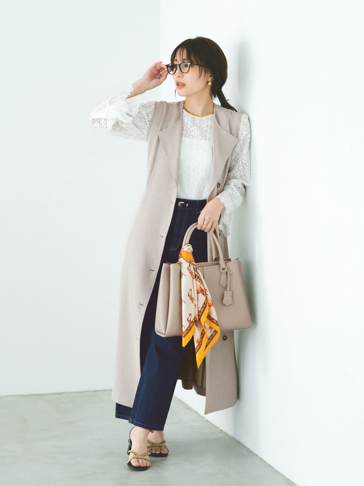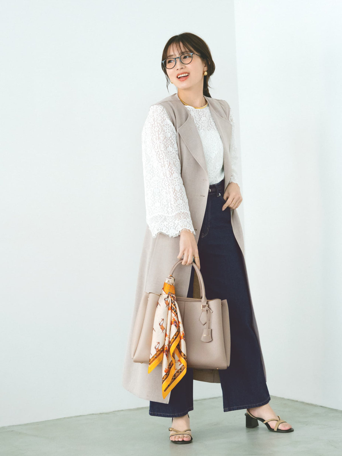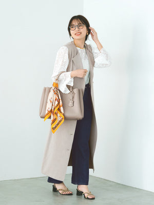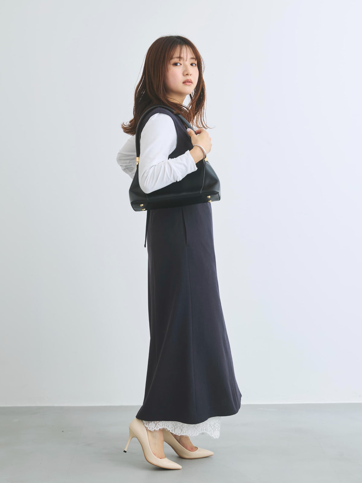 ブラウスやボウタイトップスと合わせたフェミニンな着こなしから、シンプルなニットやカットソーを合わせて程よくカジュアルダウンさせたきれいめスタイルまで様々なレイヤードスタイルを楽しめます。