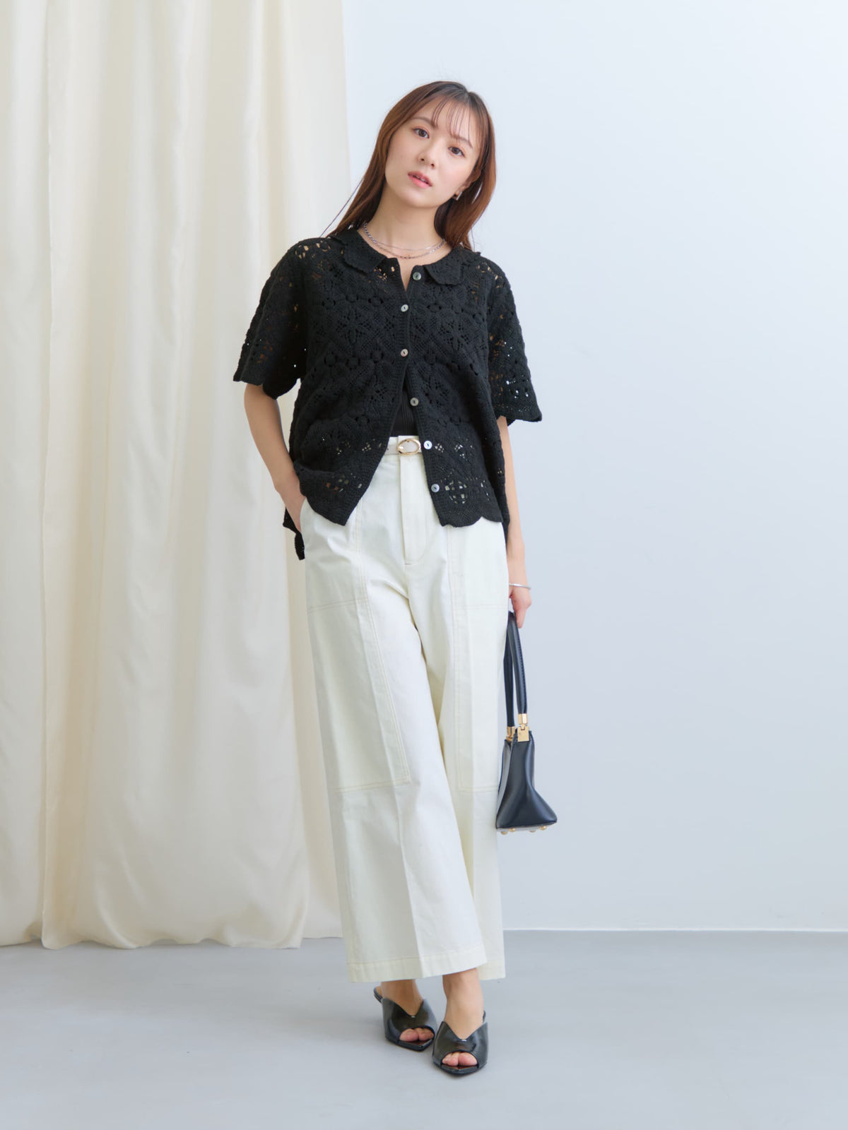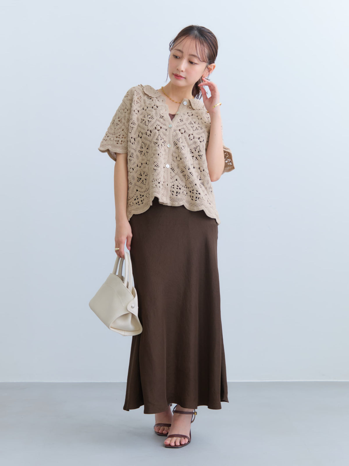 同シリーズの2wayクロシェワンピースと合わせたスタイリングもおすすめです。