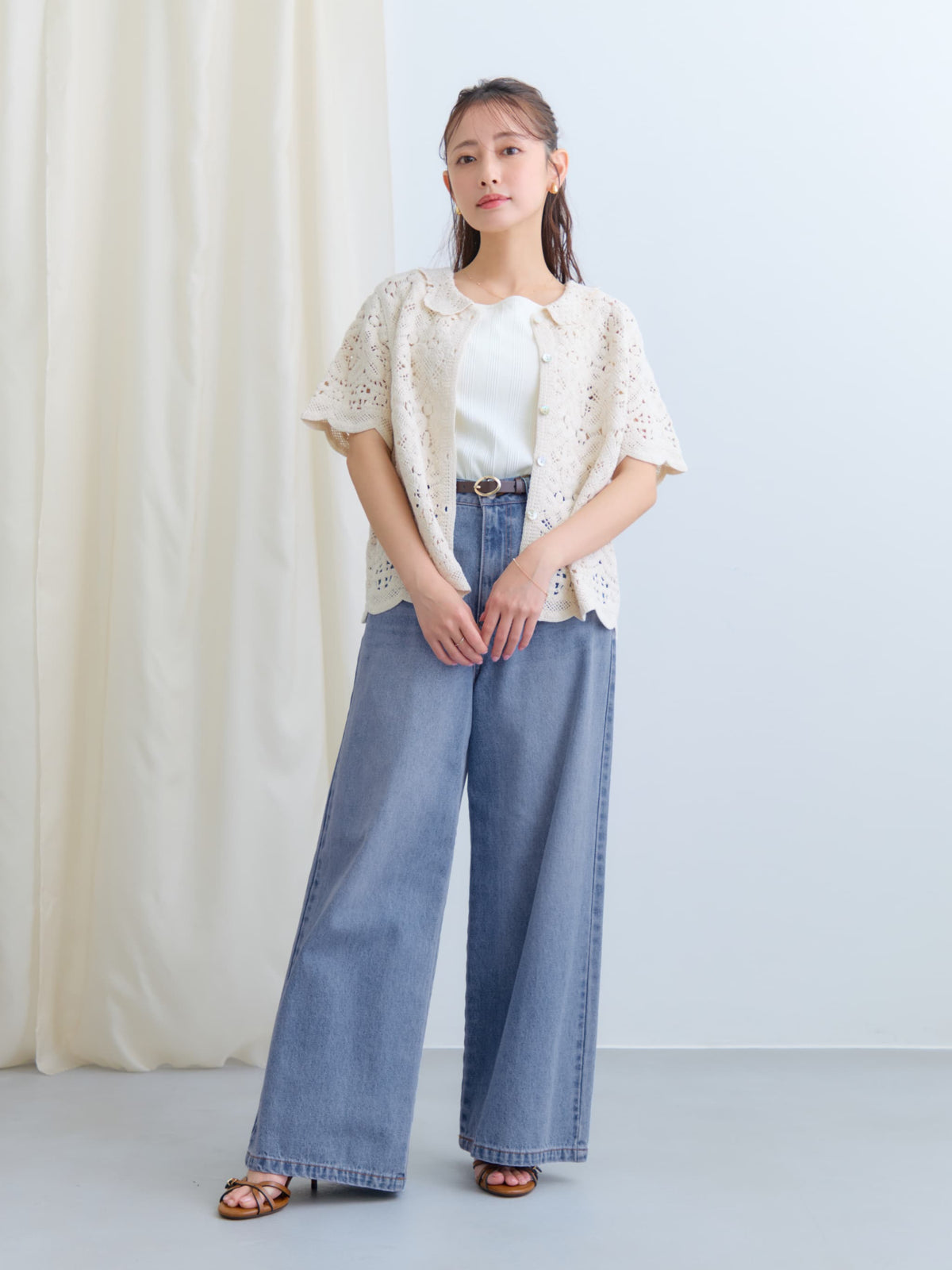 前を開けてワンピースやタンクトップの上にさらっと羽織れば、軽やかな夏のレイヤードスタイルが完成します。