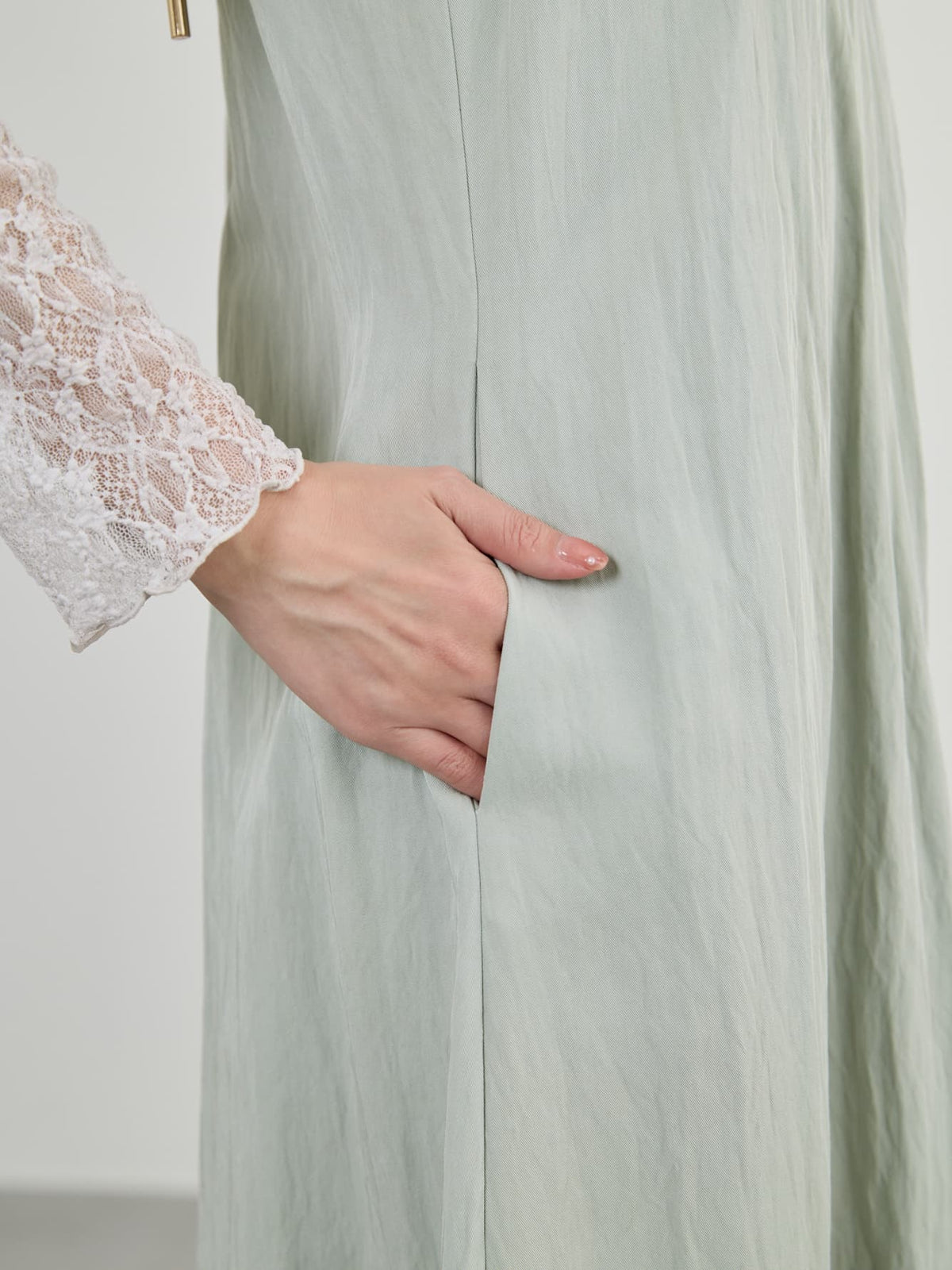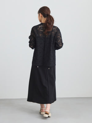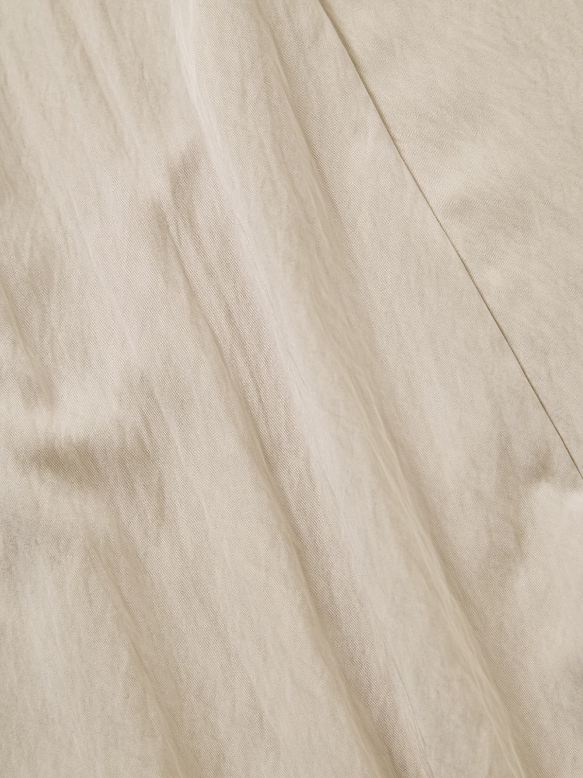 落ち感のあるレーヨン混素材を使用し、軽やかで柔らかな着心地に。表面にはさりげないシボ感があり、ニュアンスのある表情を楽しめます。程よい光沢感が上品な印象をプラスし、シワが目立ちにくいのも嬉しいポイント。裏地付きで安心感のある着用感に仕上げています。
