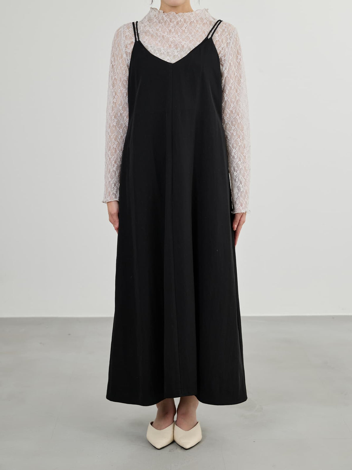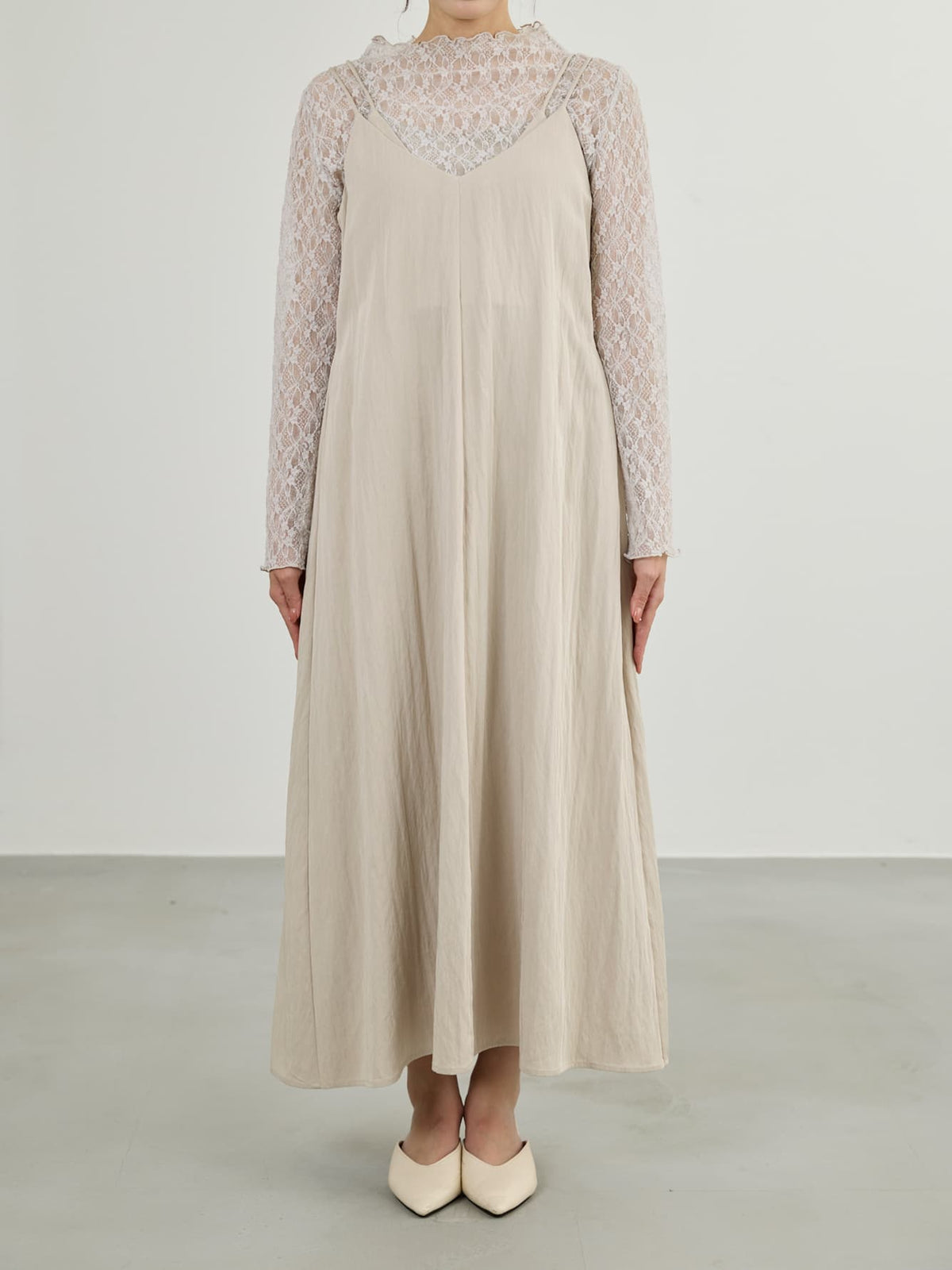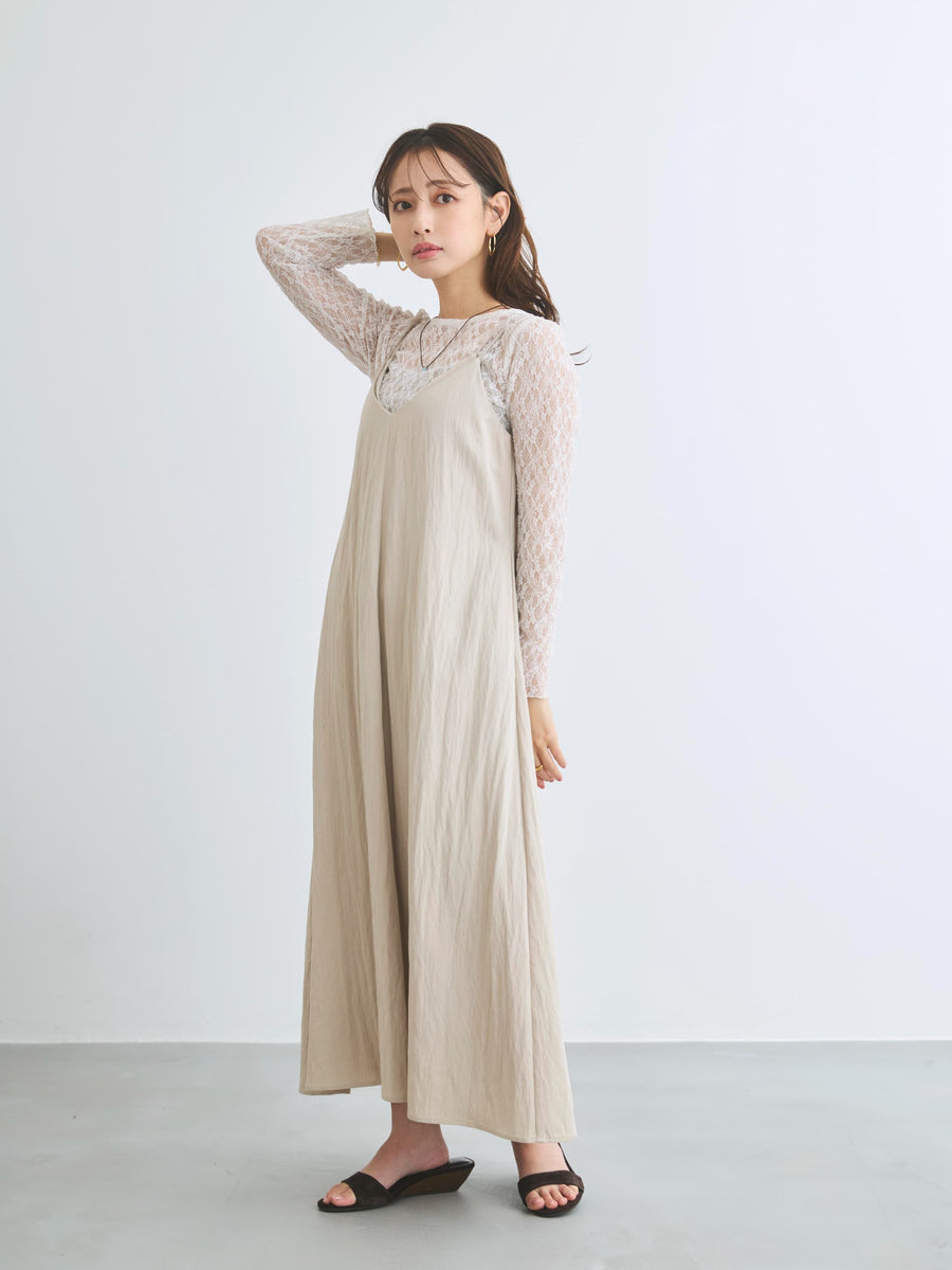 重ね着デザインで立体感を楽しむ大人キャミワンピ