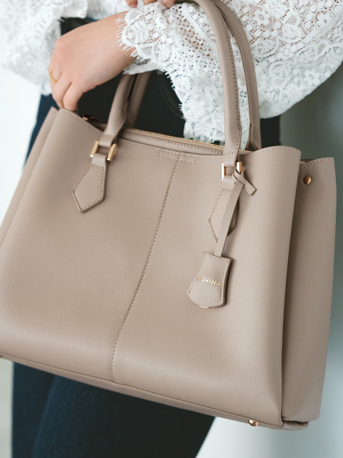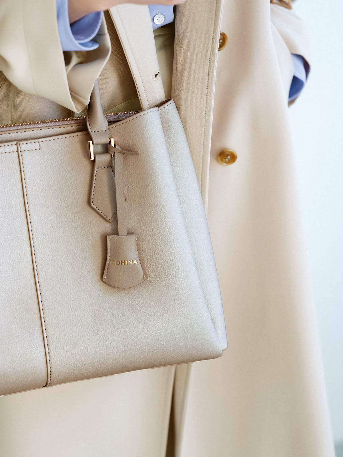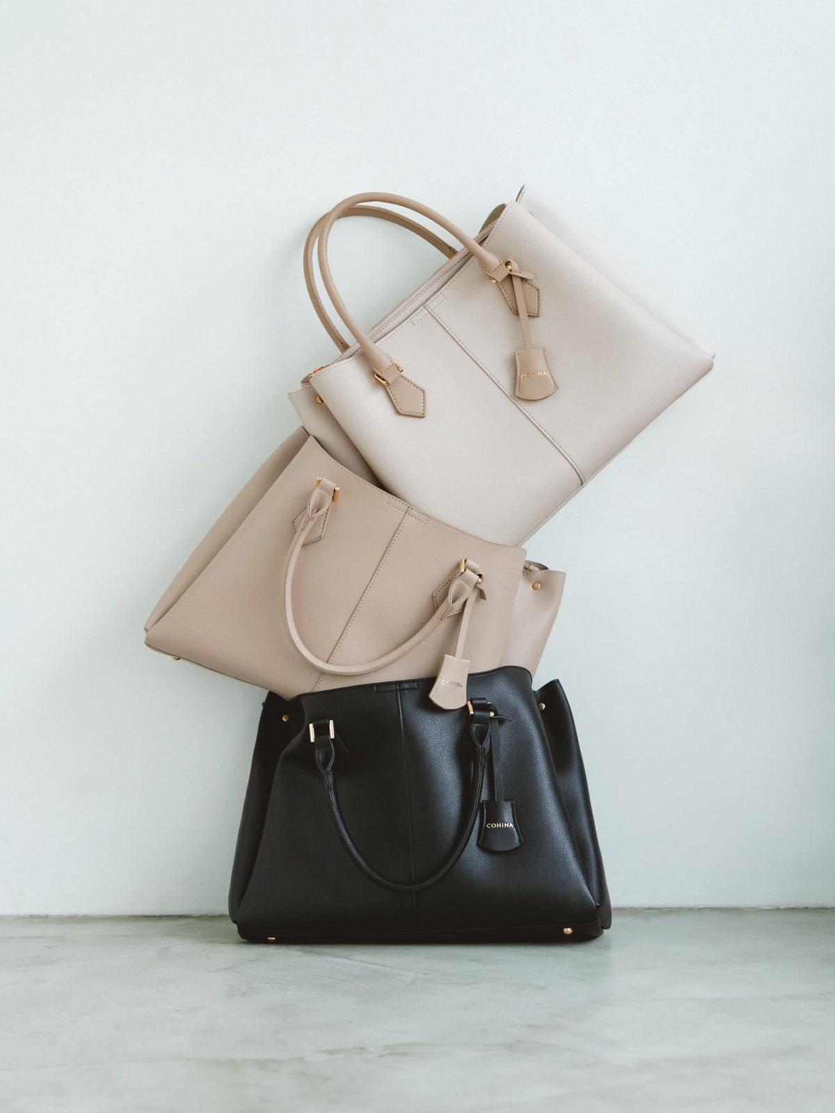 COHINA 限定カラーであるエクリュのバイカラーデザインも、ニュアンスの配色が上品な特別カラーになっています。