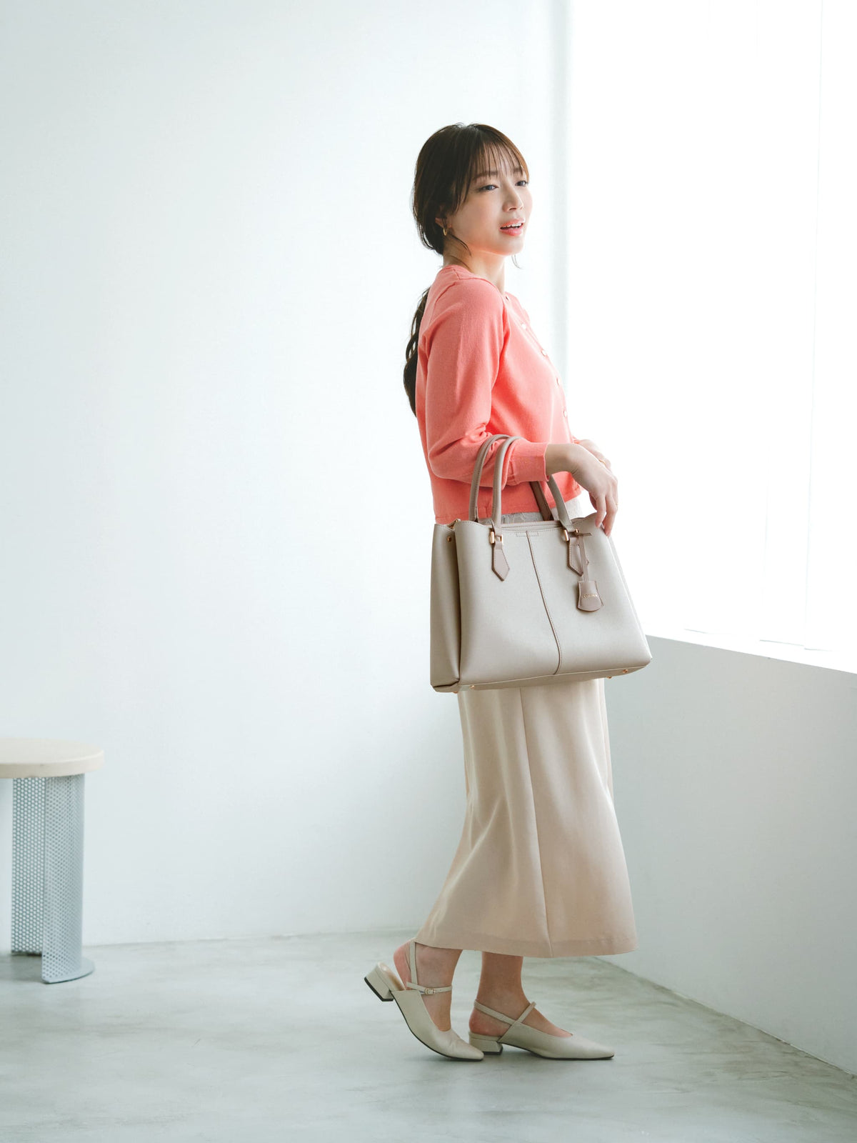 しなやかでありながらしっかりと自立し、軽量さを叶える合成皮革素材を使用しています。レザーライクな表情もありながら、軽やかな雰囲気が両立して女性らしさを叶えてくれます。
