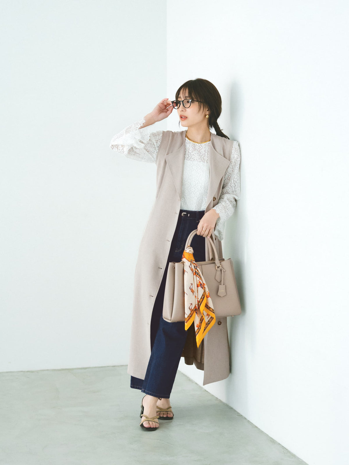 素材のしなやかさが伝わるフォルムと軽やかな作りで、小柄さんのために独自のバランスを追求したこのコラボだからこそ叶うアイテムに仕上がっています。
