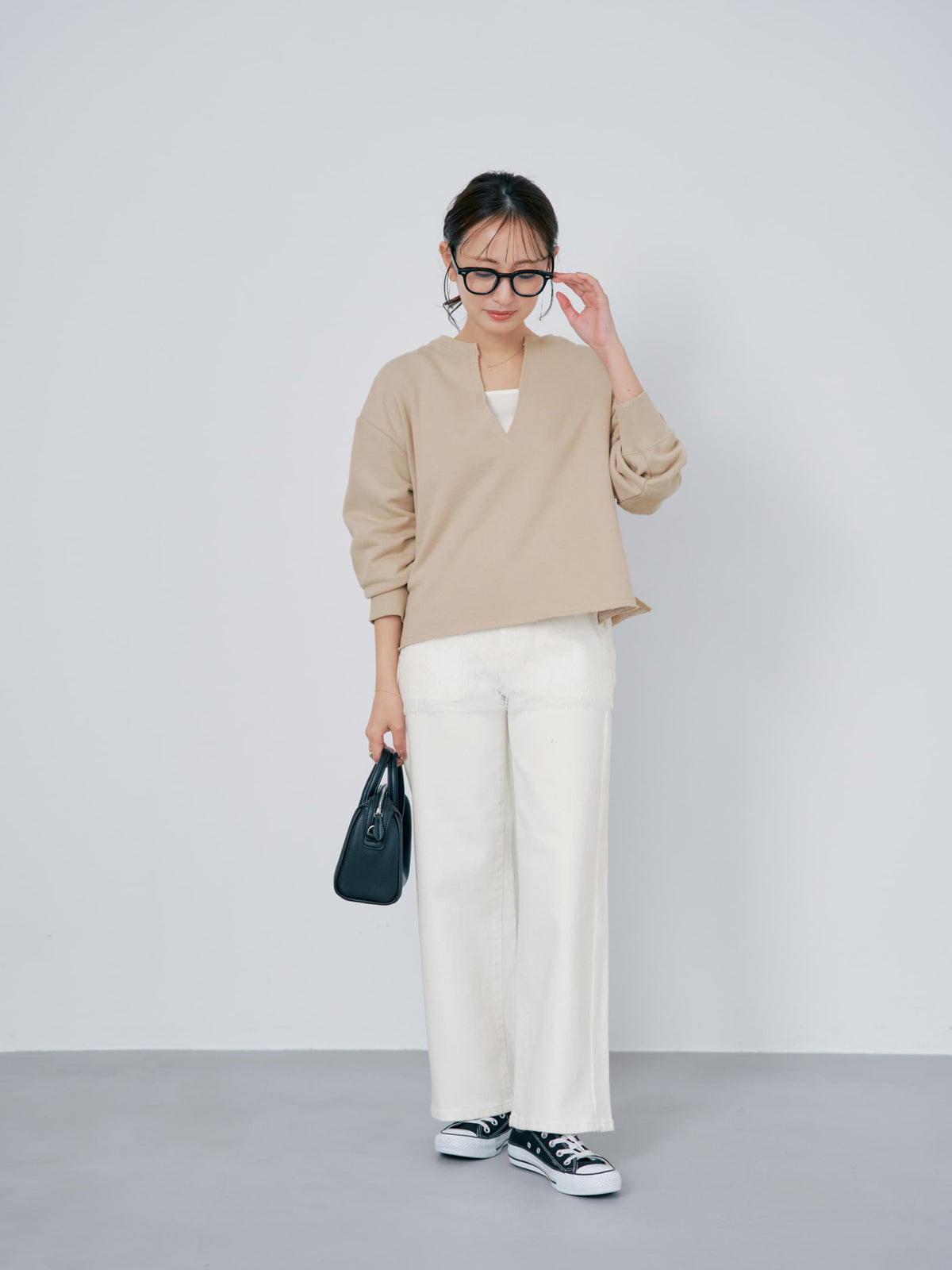 身長148cmで骨盤〜おしりにかかる丈感なので、COHINAのどんなトップスとも相性が良さそうです!