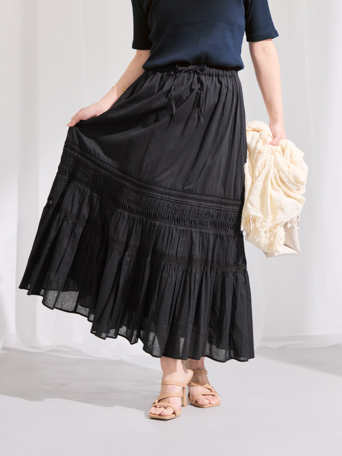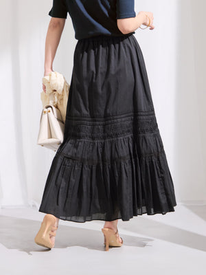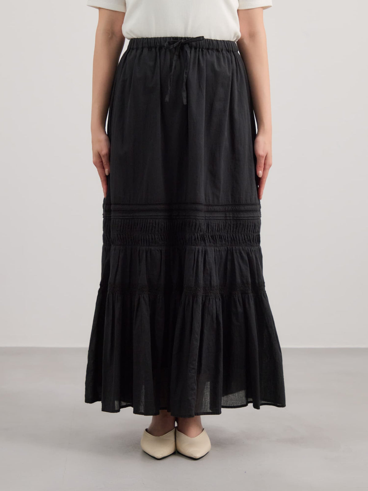 【手洗い可】【Made in India】ピンタックティアードスカート-short & regular