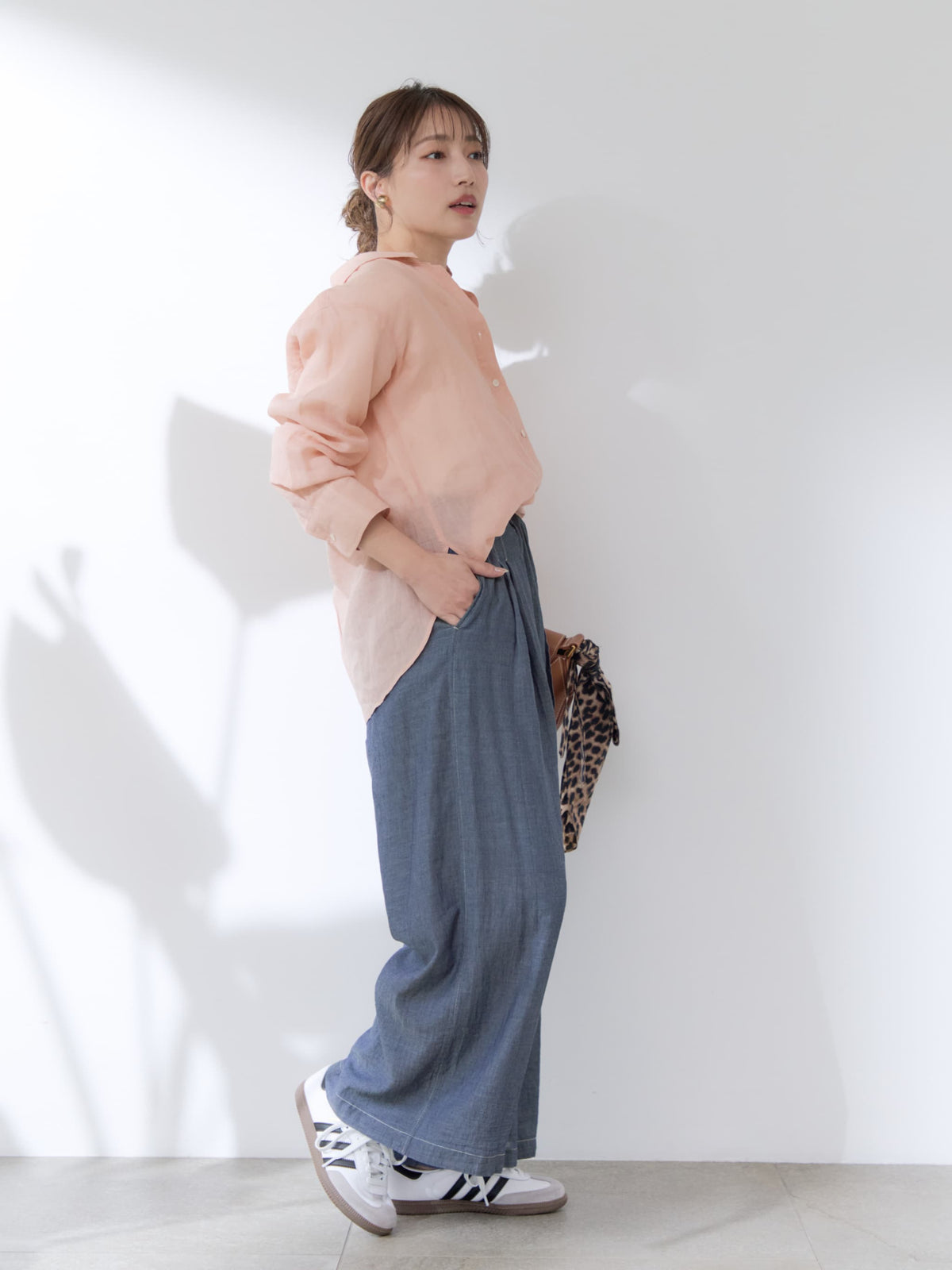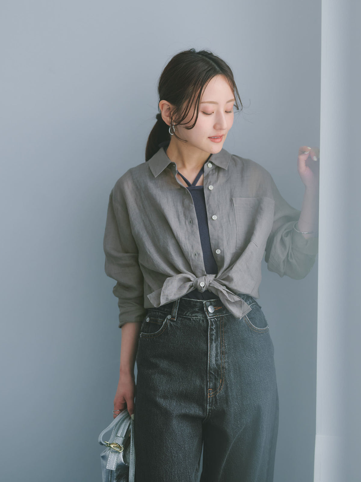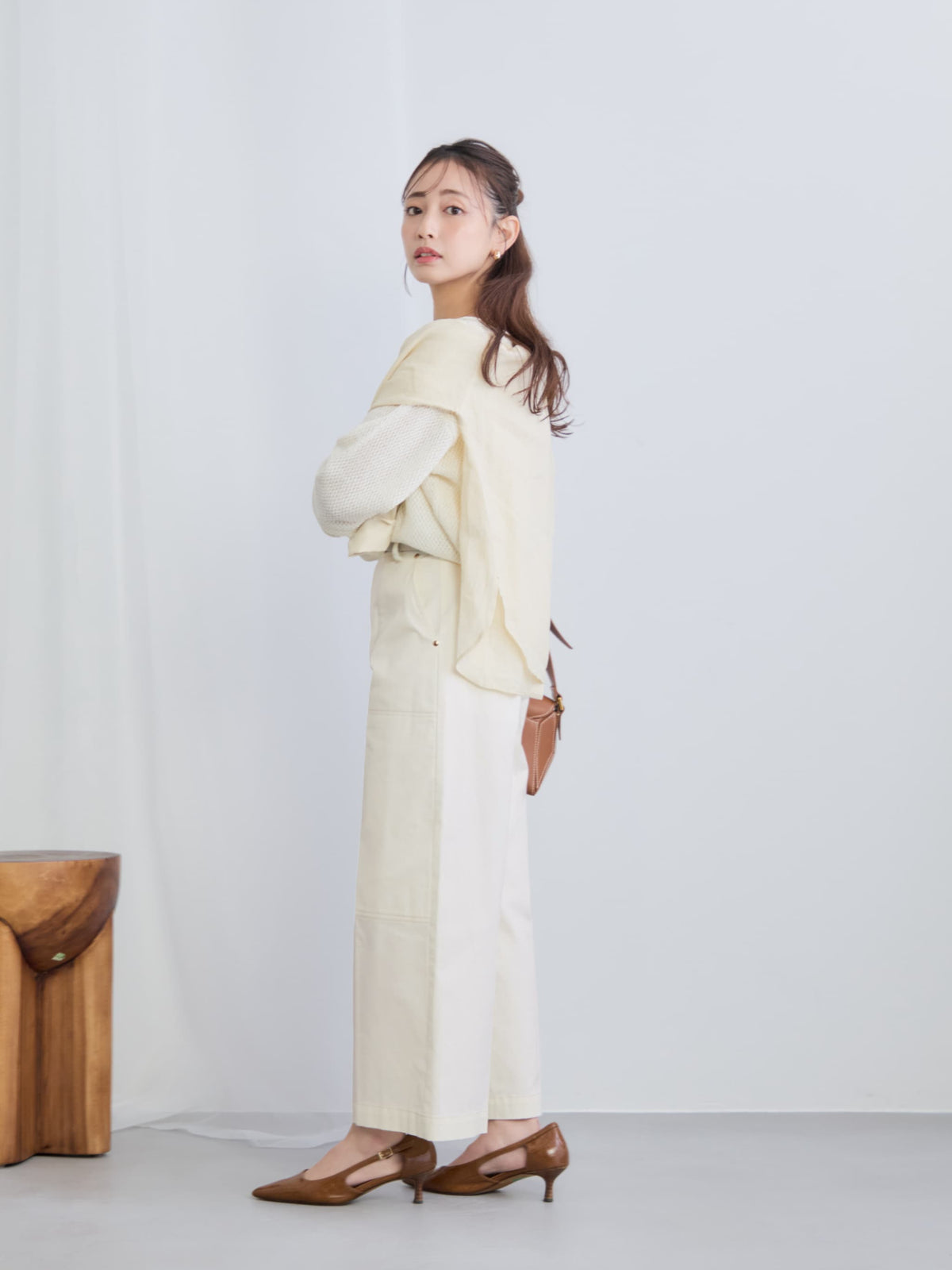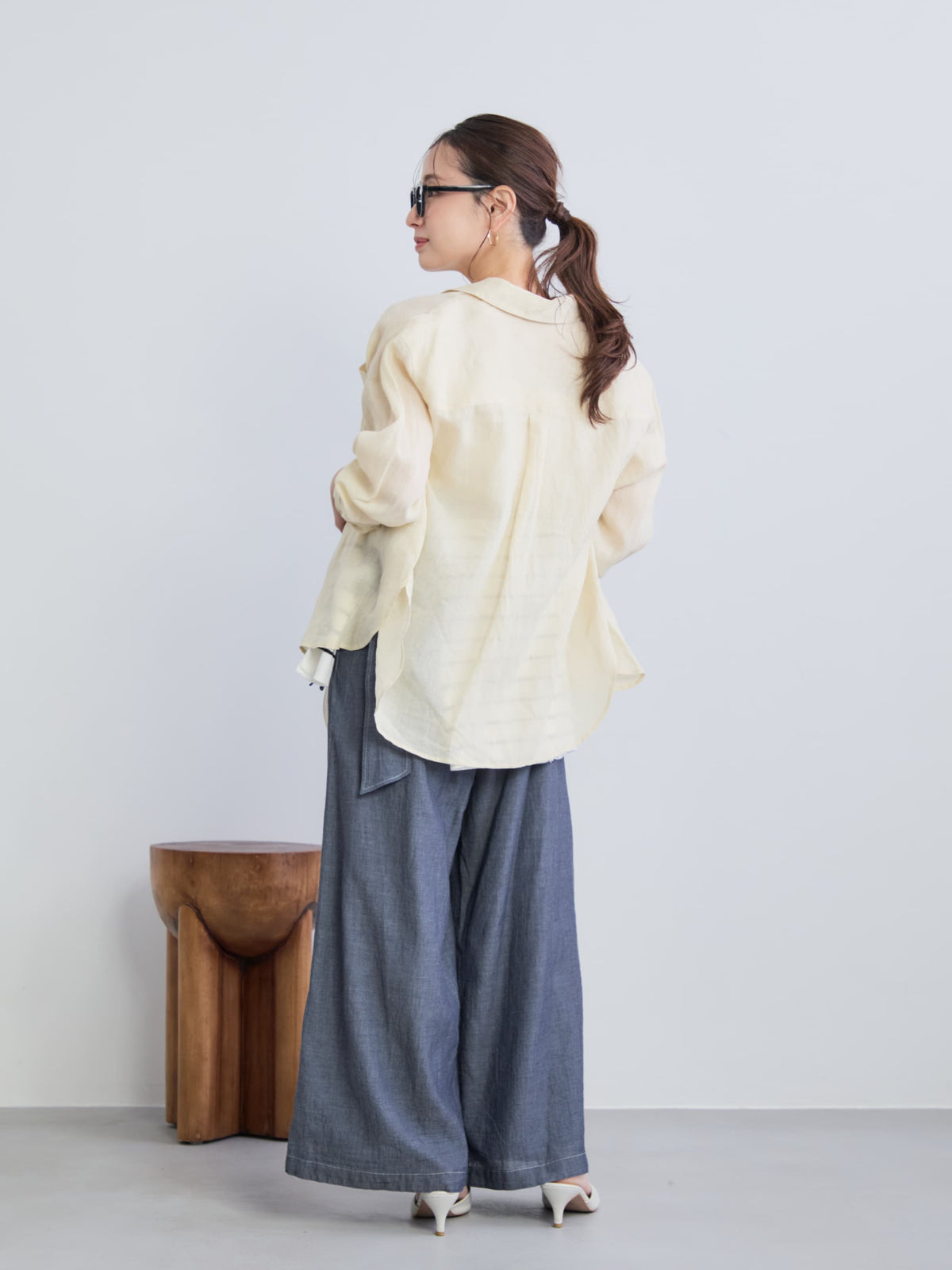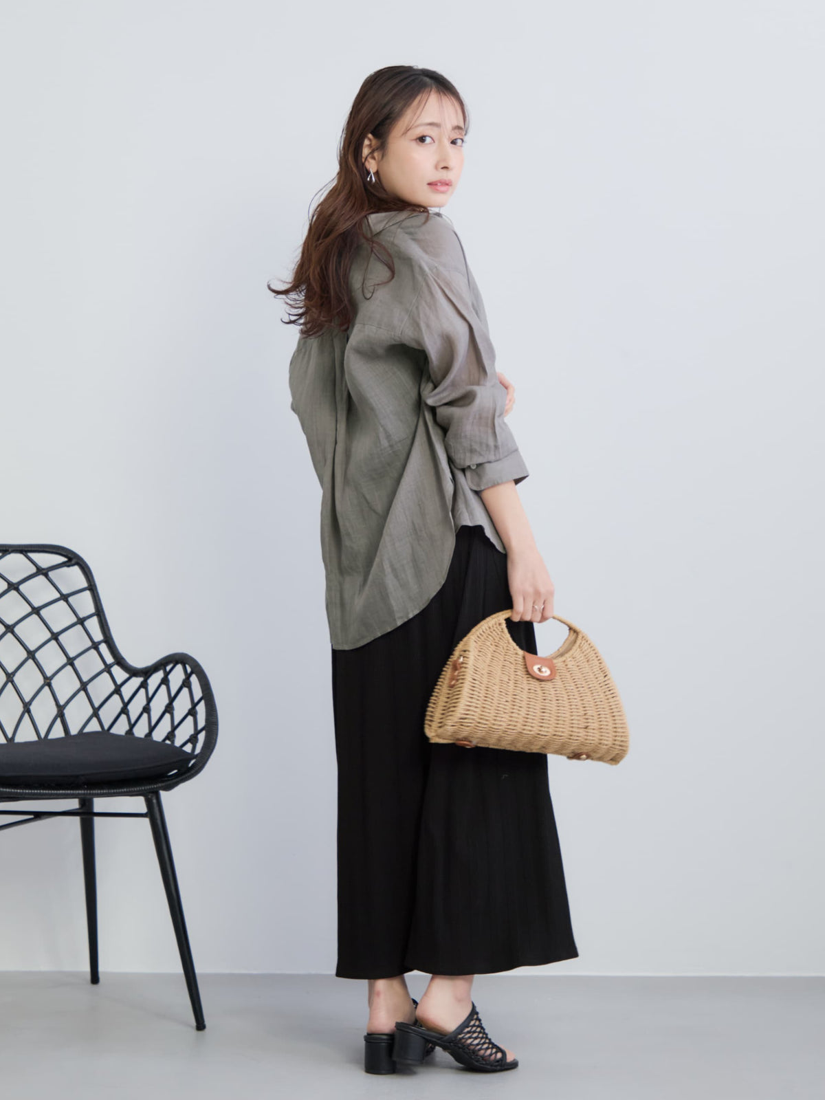 品の良いラフさを演出したい時に羽織や腰巻きなど、ピンポイントでも差し込める使いやすさが魅力です。麻らしいカジュアルさを押し出したデニムやカジュアルアイテムとの合わせはもちろん、ラミーらしい素材感を活かし綺麗めコーデのはずしにも使いやすいアイテムです。