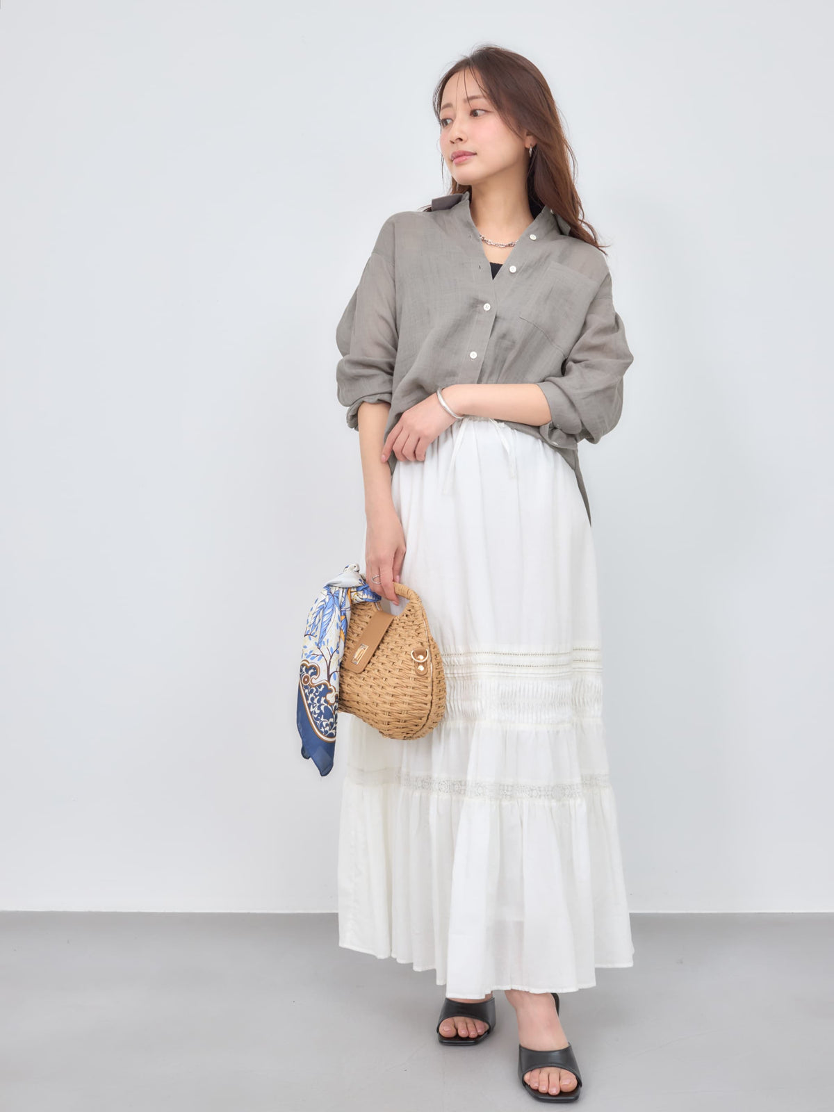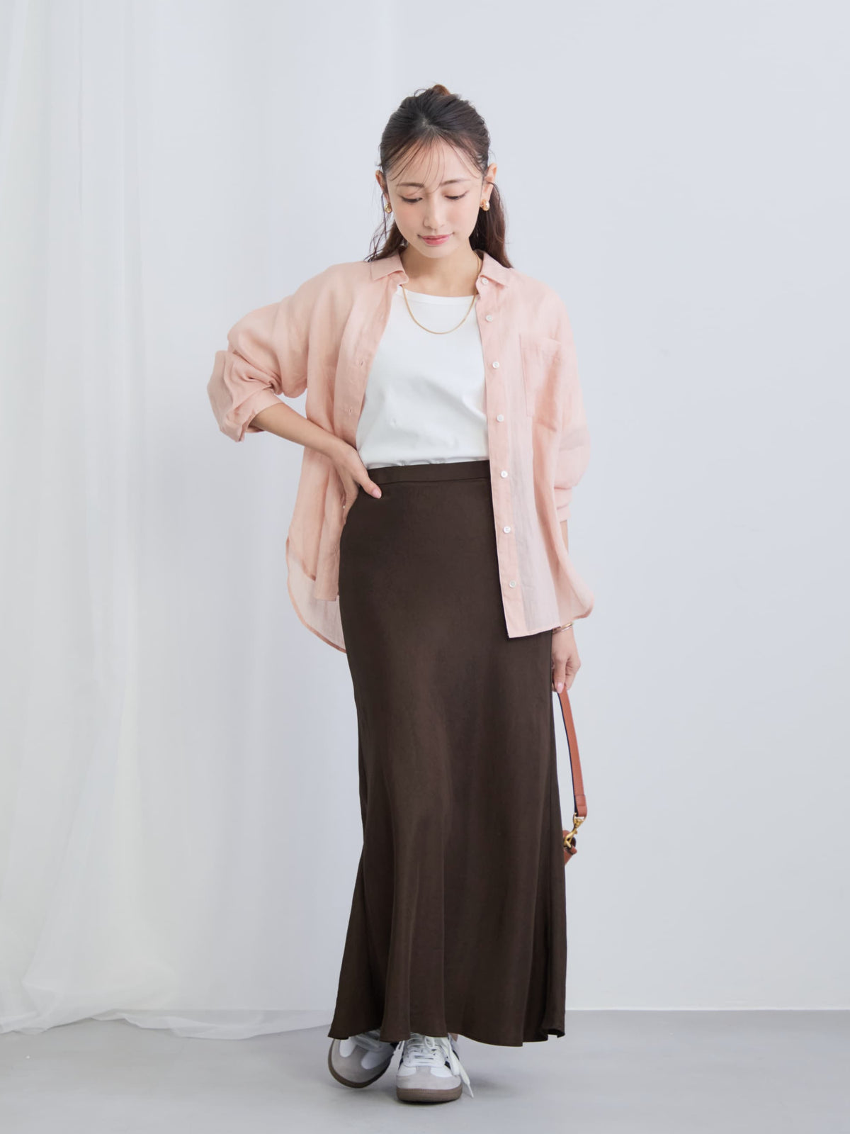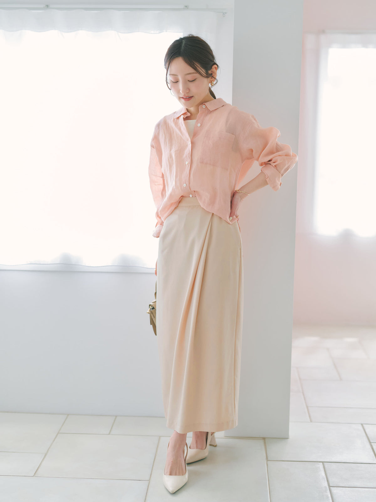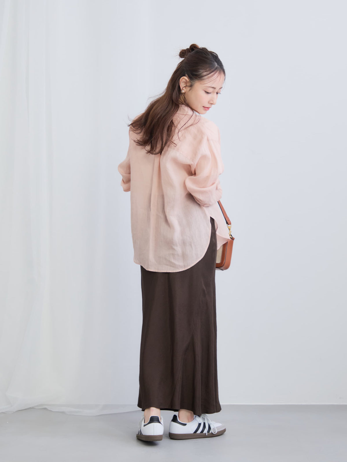 品の良いラフさを演出したい時に羽織や腰巻きなど、ピンポイントでも差し込める使いやすさが魅力です。麻らしいカジュアルさを押し出したデニムやカジュアルアイテムとの合わせはもちろん、ラミーらしい素材感を活かし綺麗めコーデのはずしにも使いやすいアイテムです。