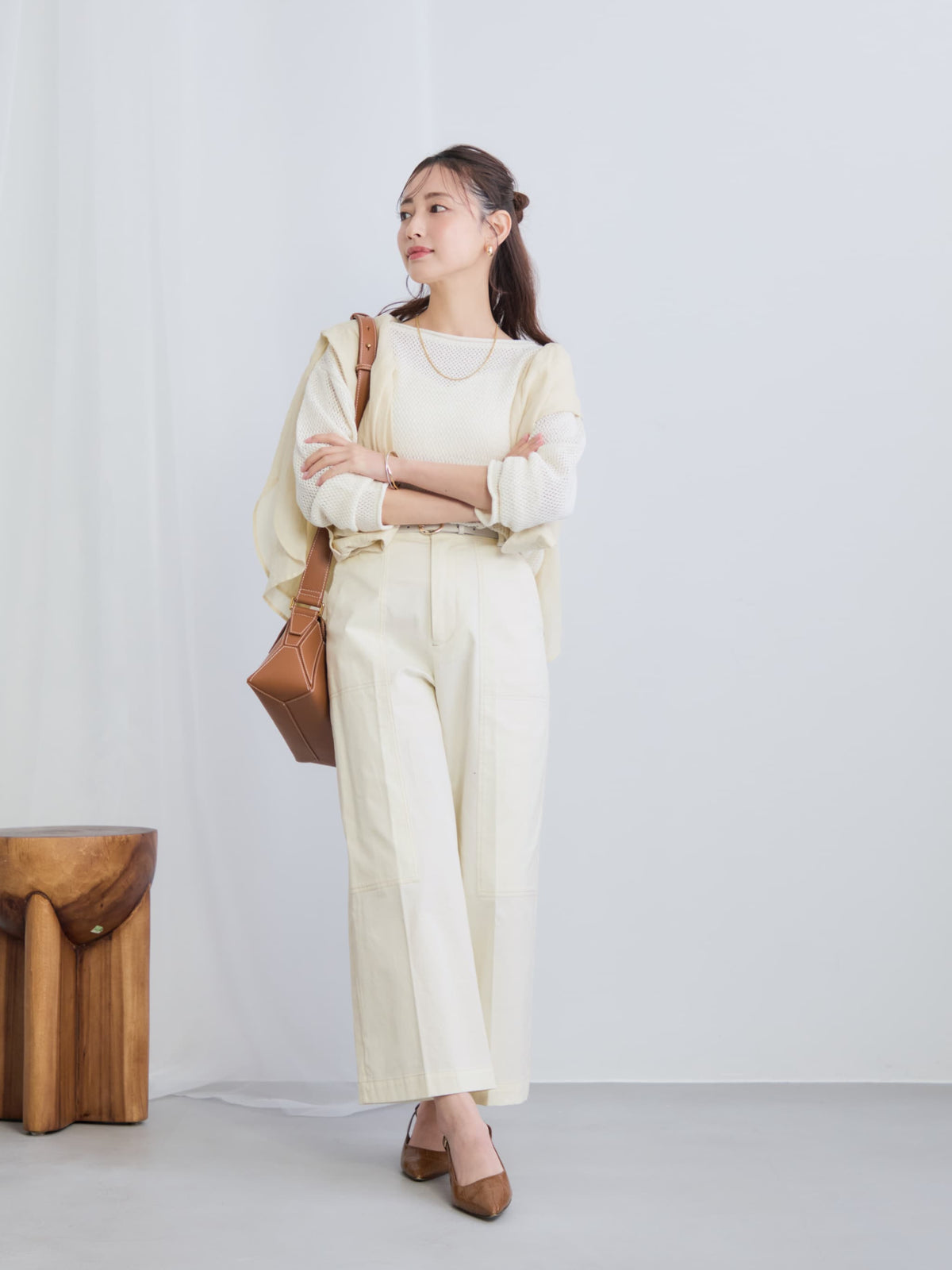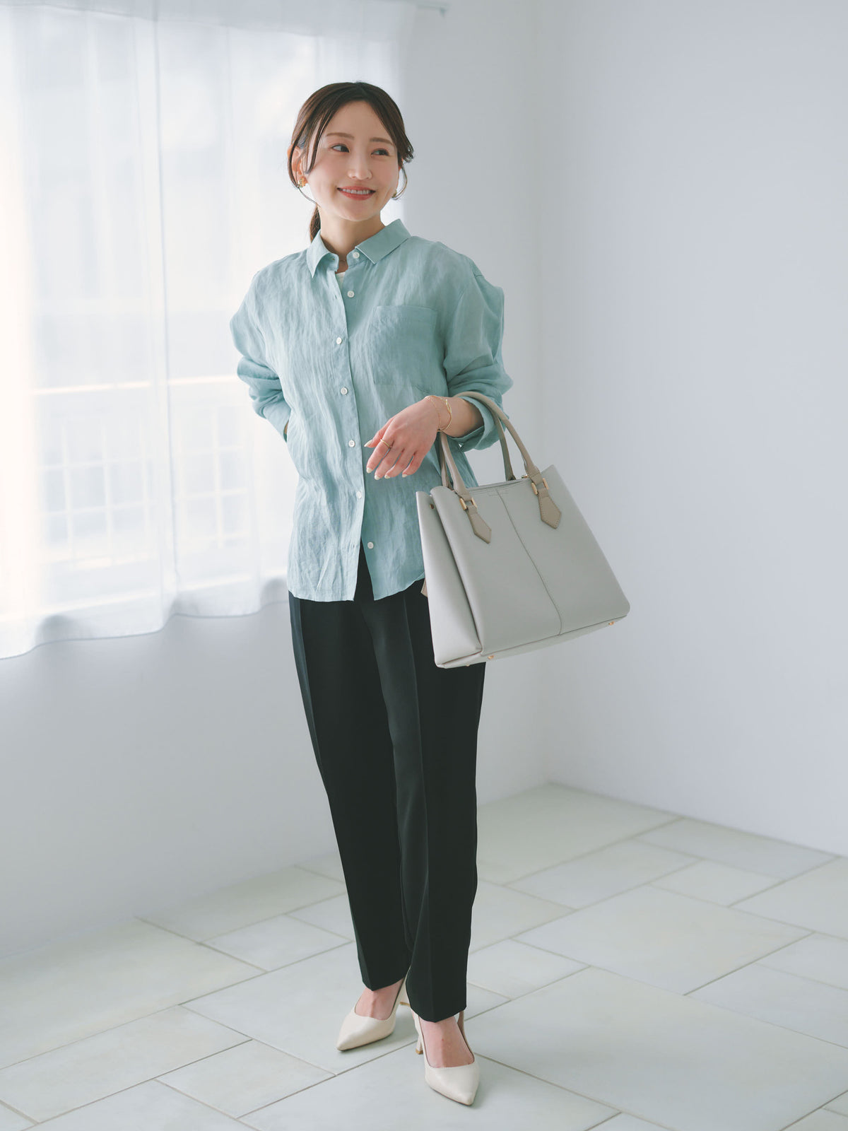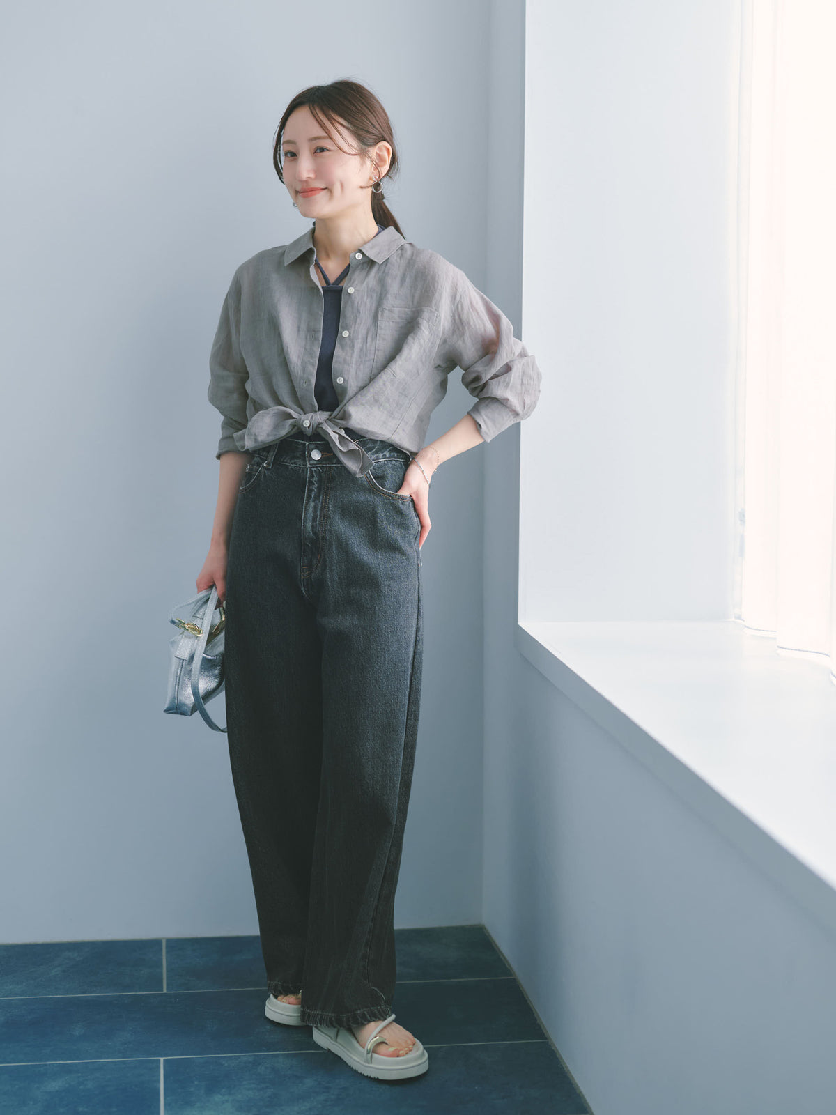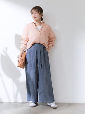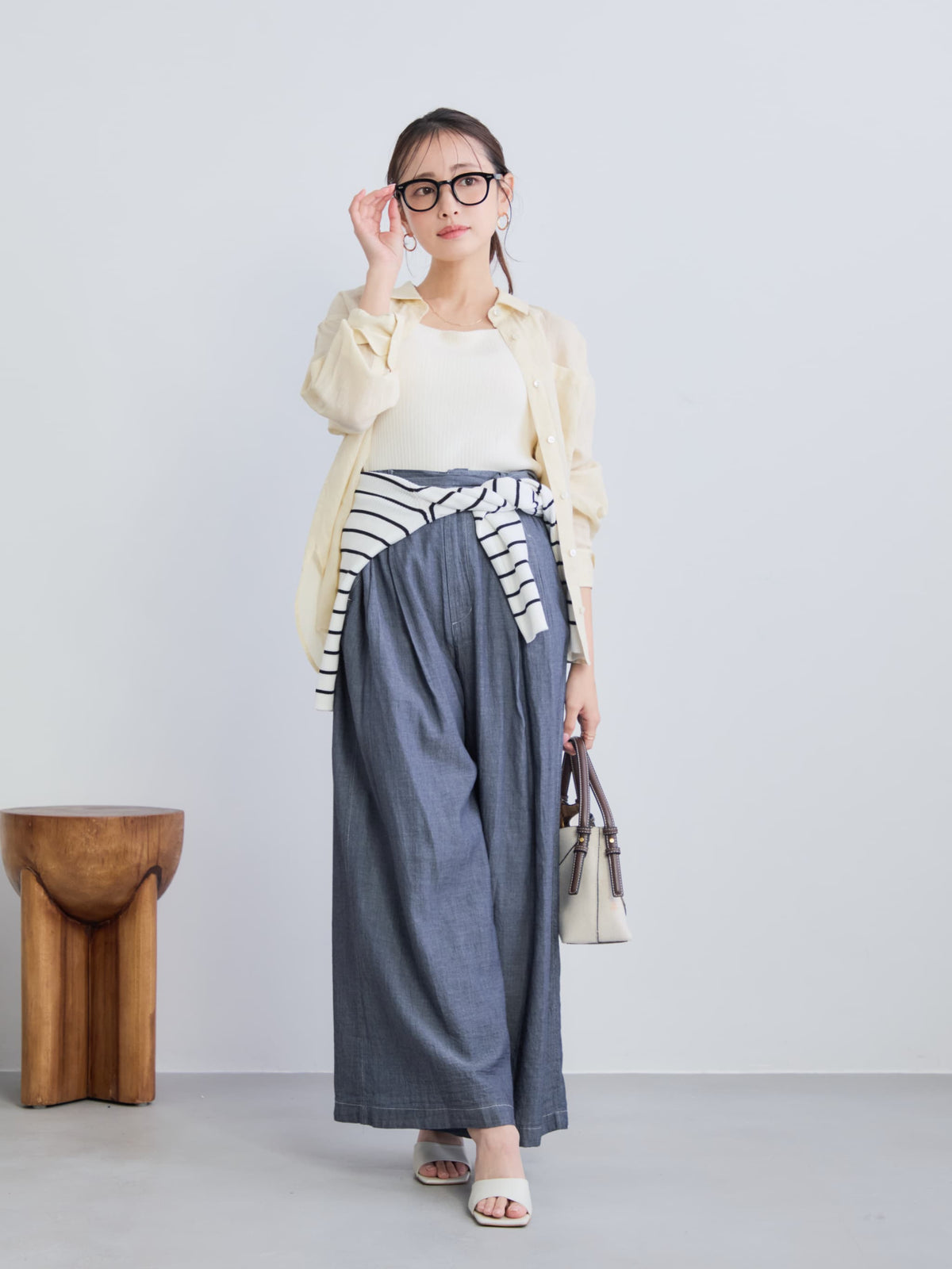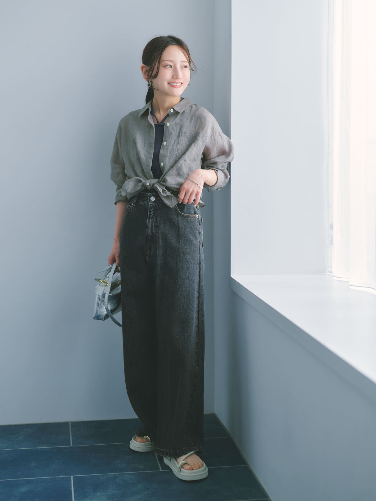 品の良いラフさを演出したい時に羽織や腰巻きなど、ピンポイントでも差し込める使いやすさが魅力です。麻らしいカジュアルさを押し出したデニムやカジュアルアイテムとの合わせはもちろん、ラミーらしい素材感を活かし綺麗めコーデのはずしにも使いやすいアイテムです。