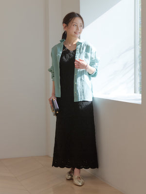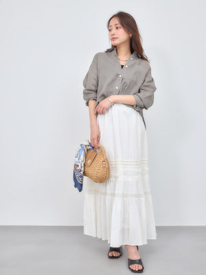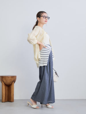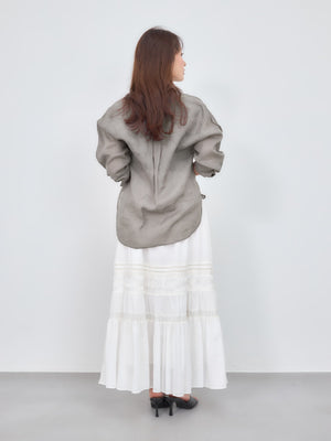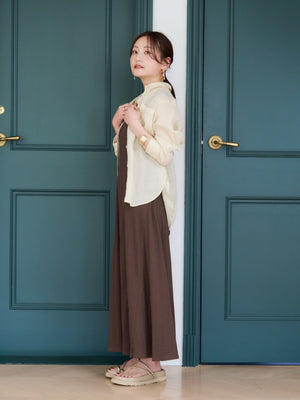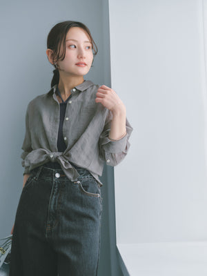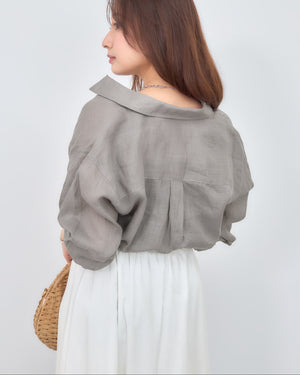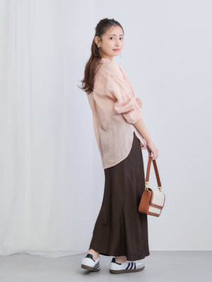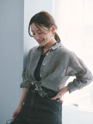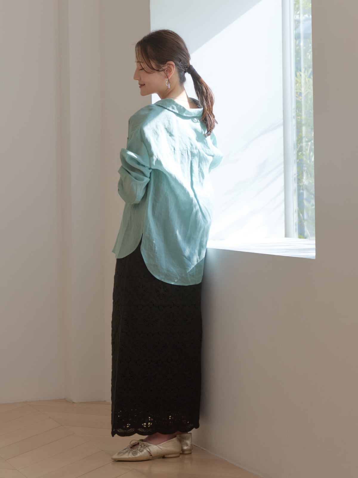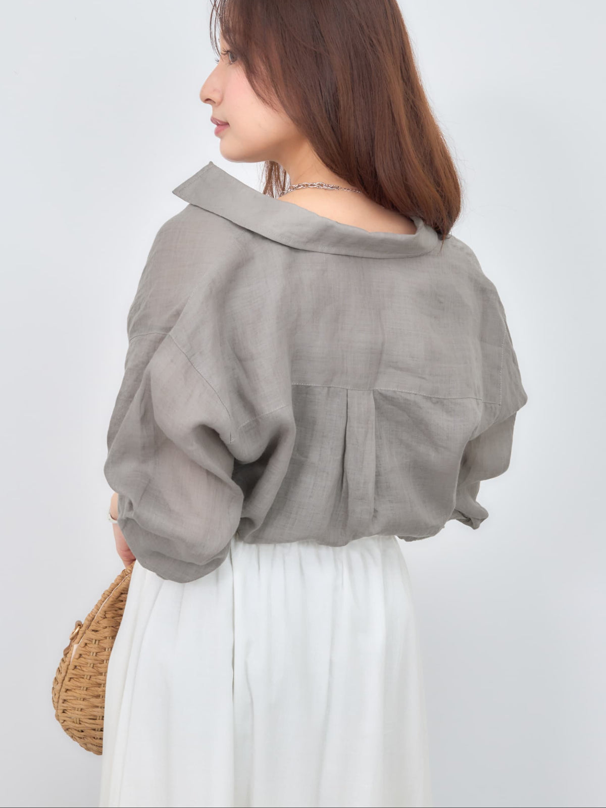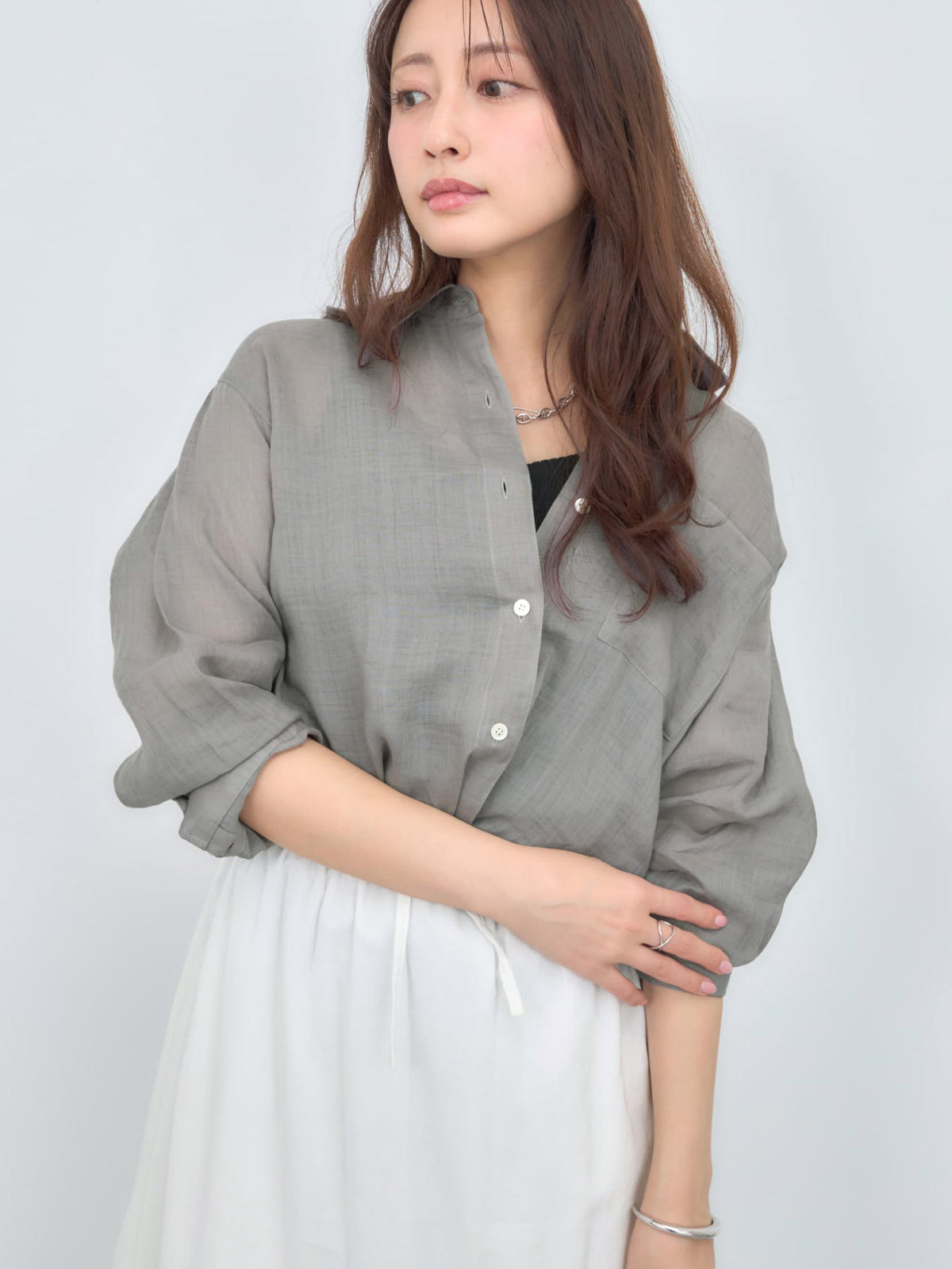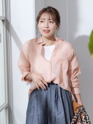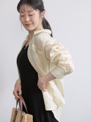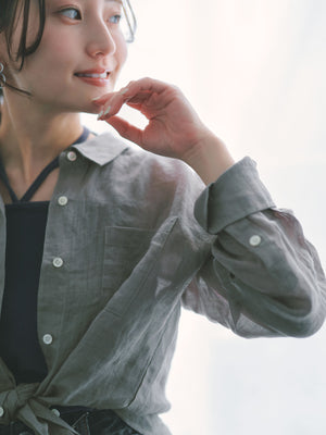 涼しげなラミー素材で、軽やかに着られます。色展開も初夏らしく爽やかでワンポイントとしてもおすすめ。程よいゆとりがあり、着丈はお尻が隠れるくらいなのでバランスよく着られ、ボトムを選ばず取り入れやすい1枚。前を閉じても羽織りでも使えるので着回し力も抜群です◎