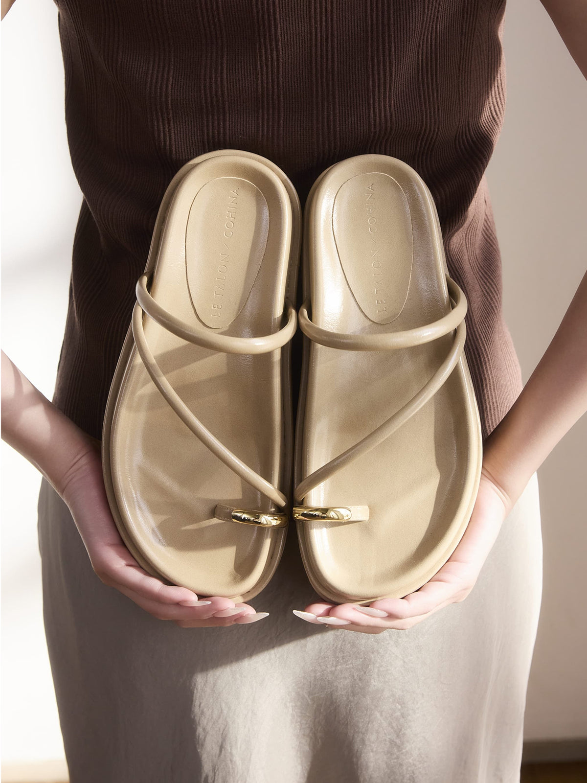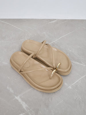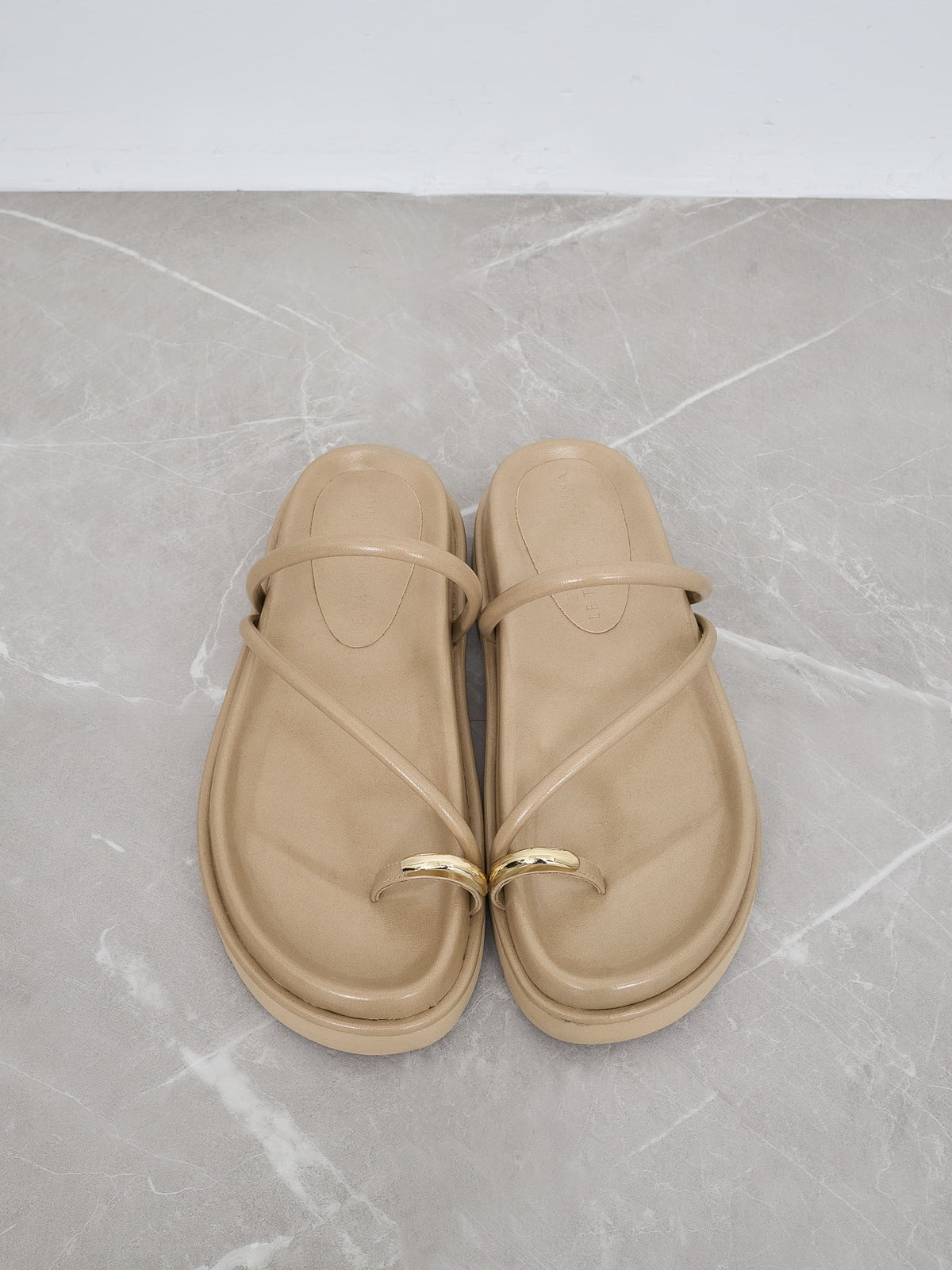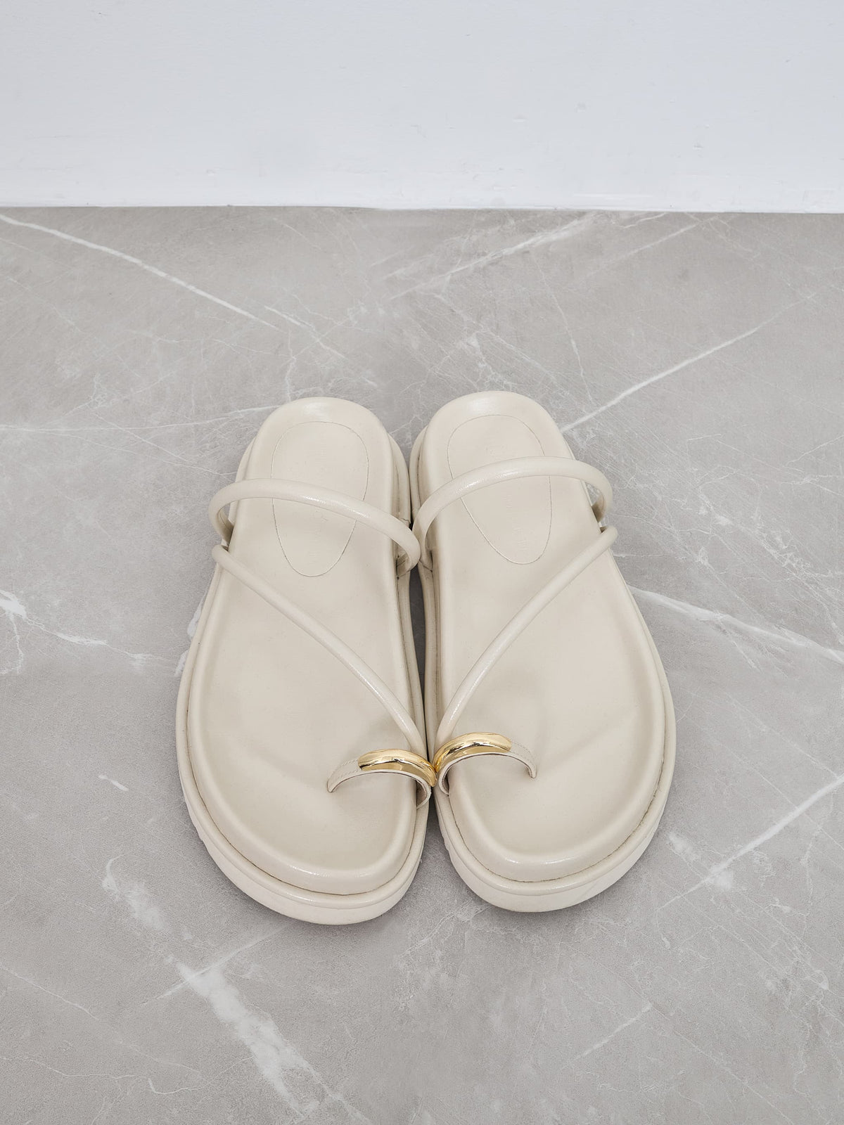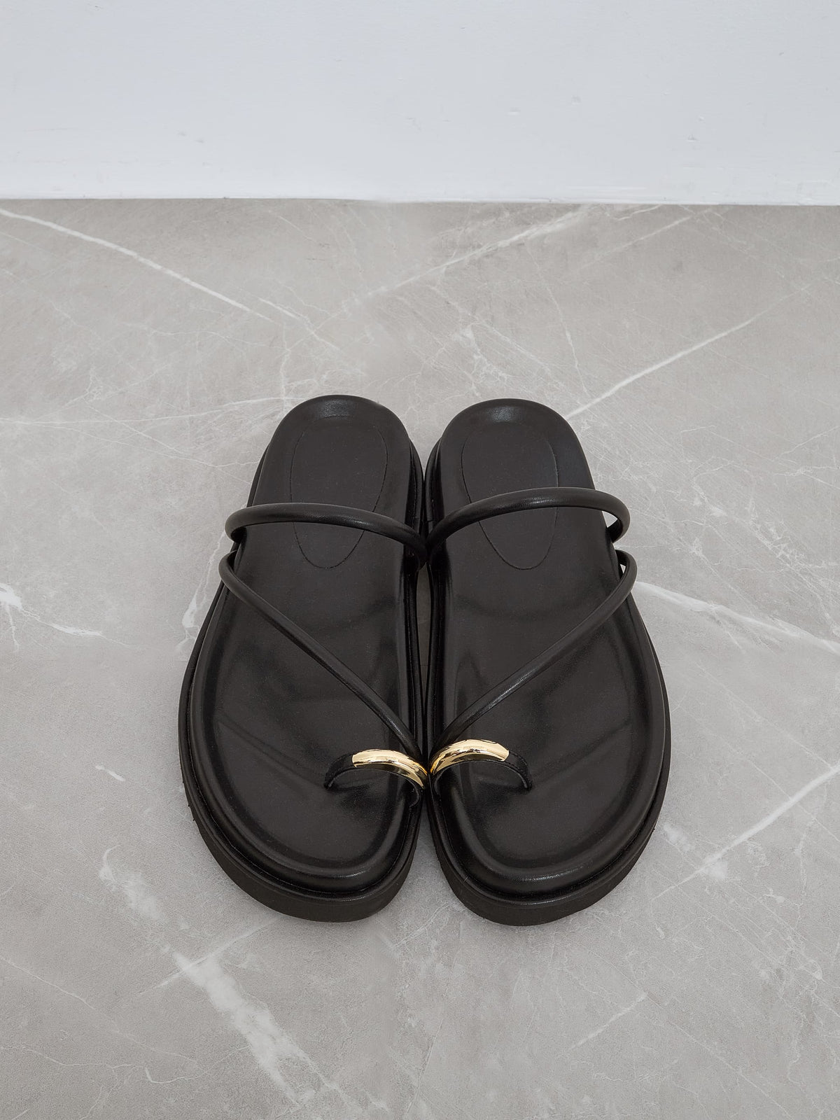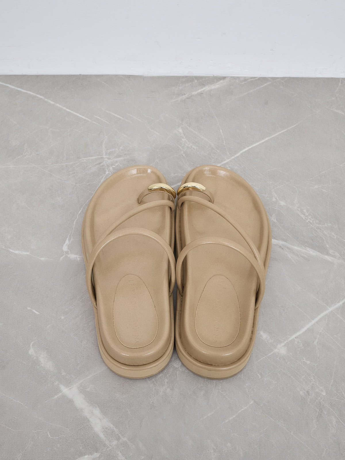 リラックス感あるフォルムで気軽に履けるデザインでありながら、サムリング部分に指輪のようなキラリと光るニュアンスが加わってシンプルさの中にもさりげないアクセントを添えています。