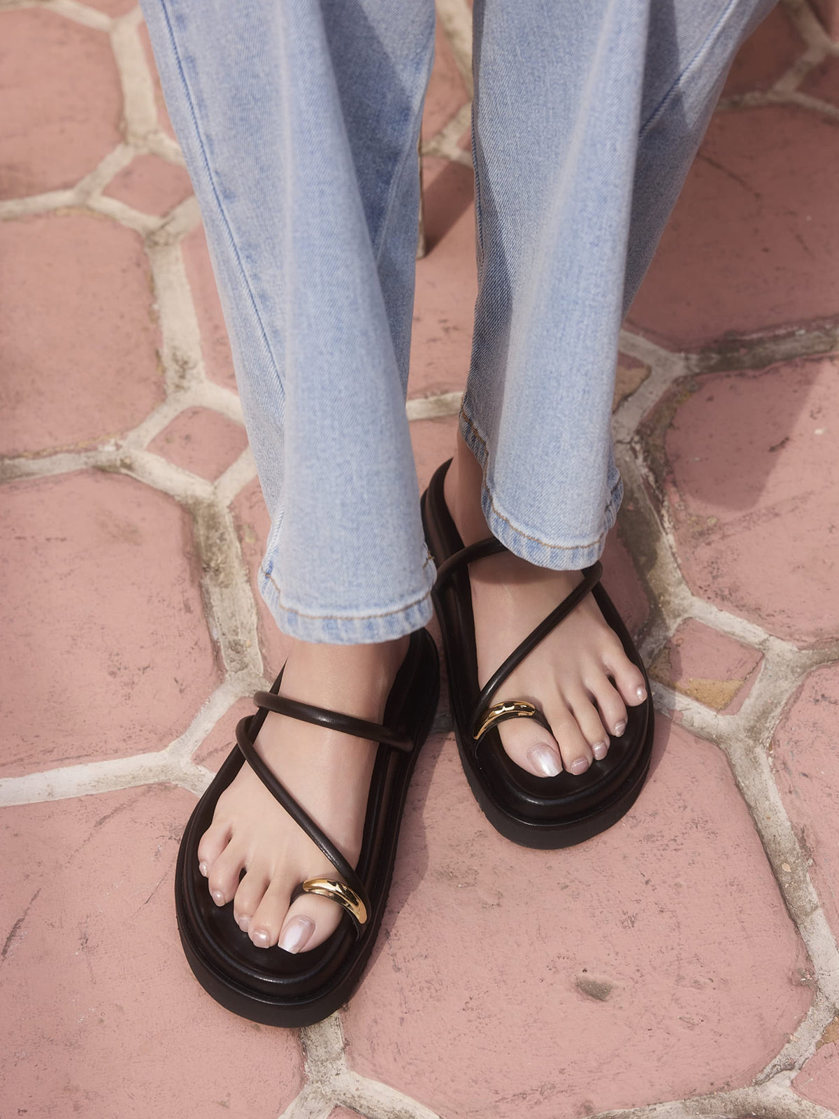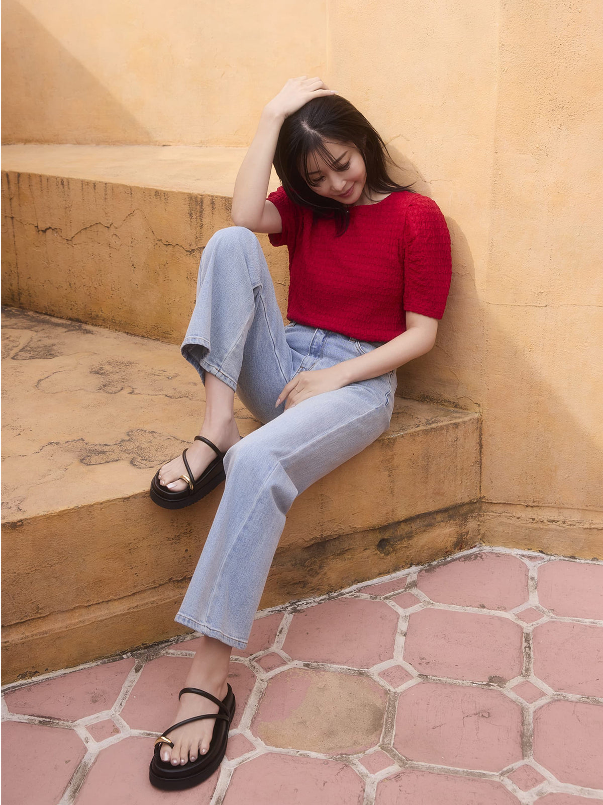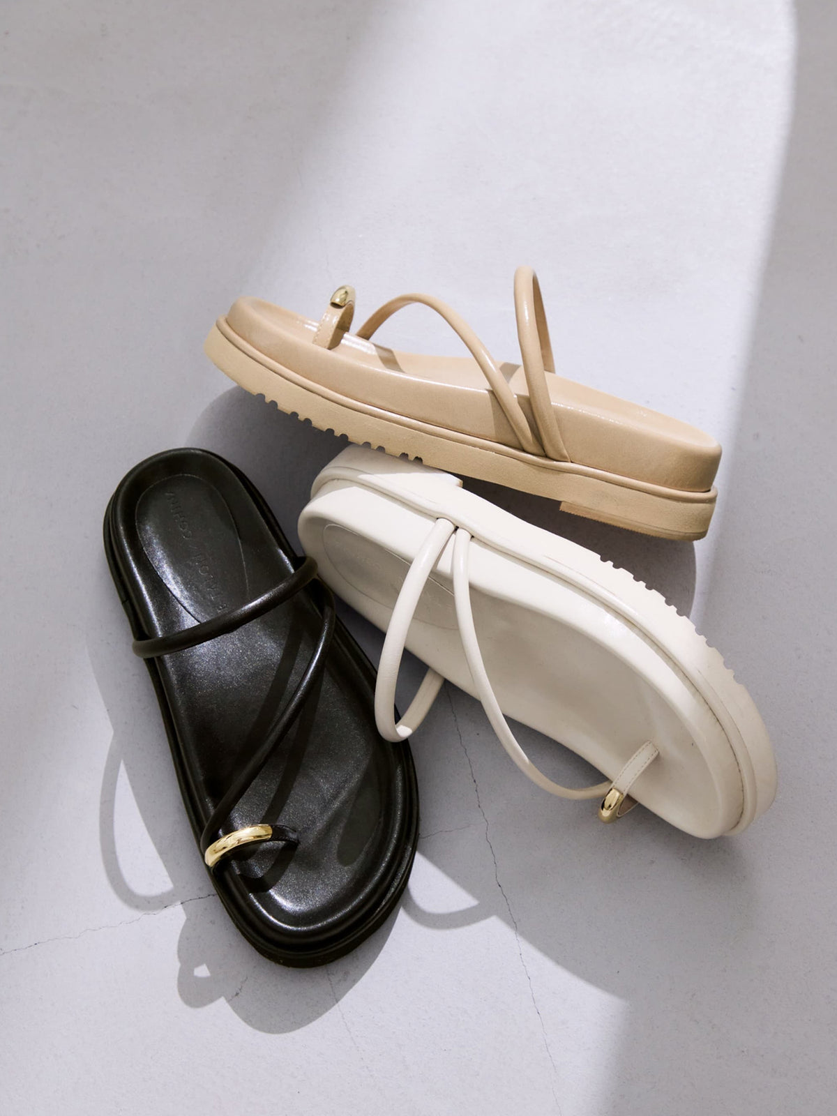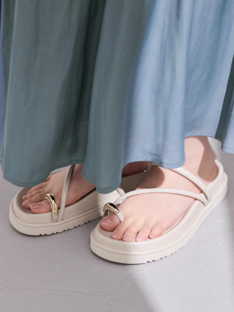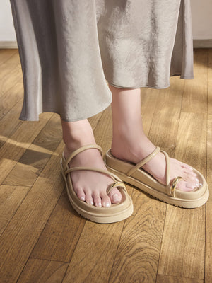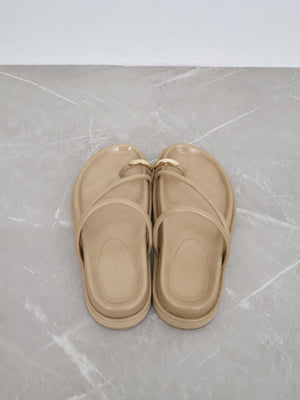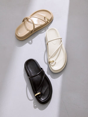 リラックス感あるフォルムで気軽に履けるデザインでありながら、サムリング部分に指輪のようなキラリと光るニュアンスが加わってシンプルさの中にもさりげないアクセントを添えています。