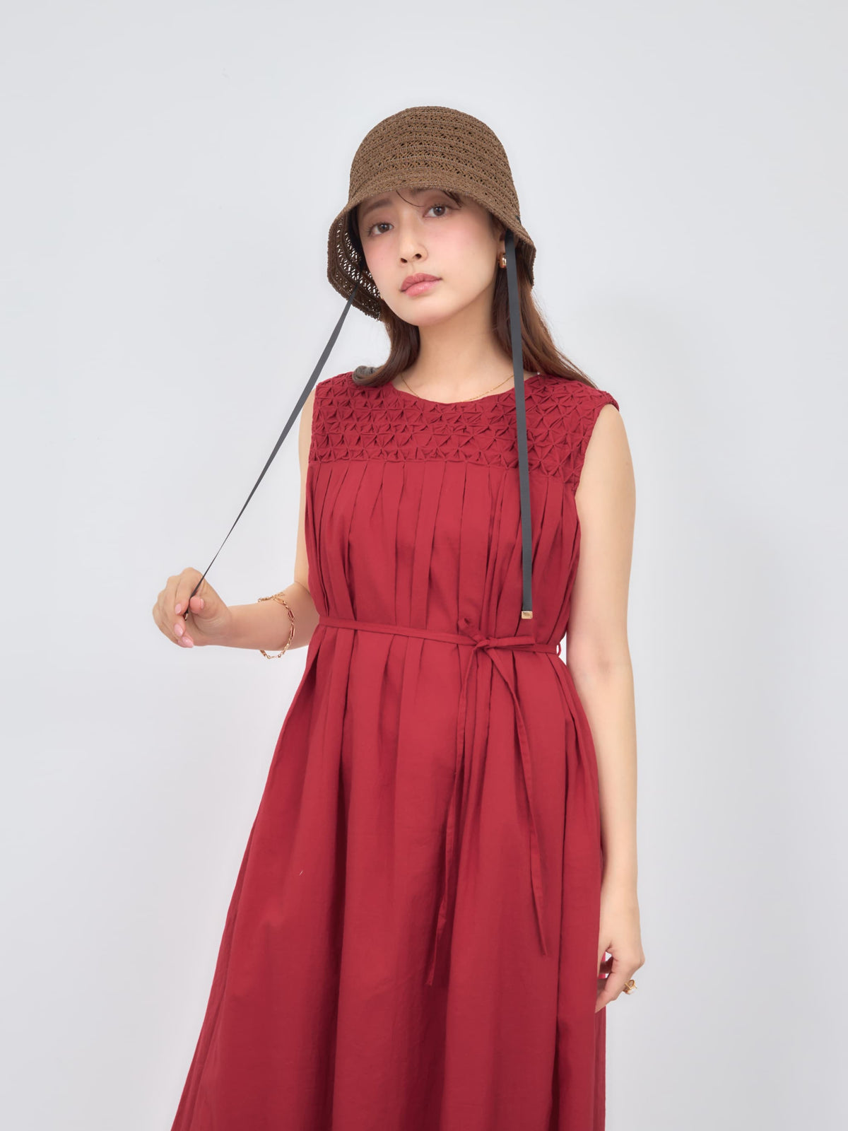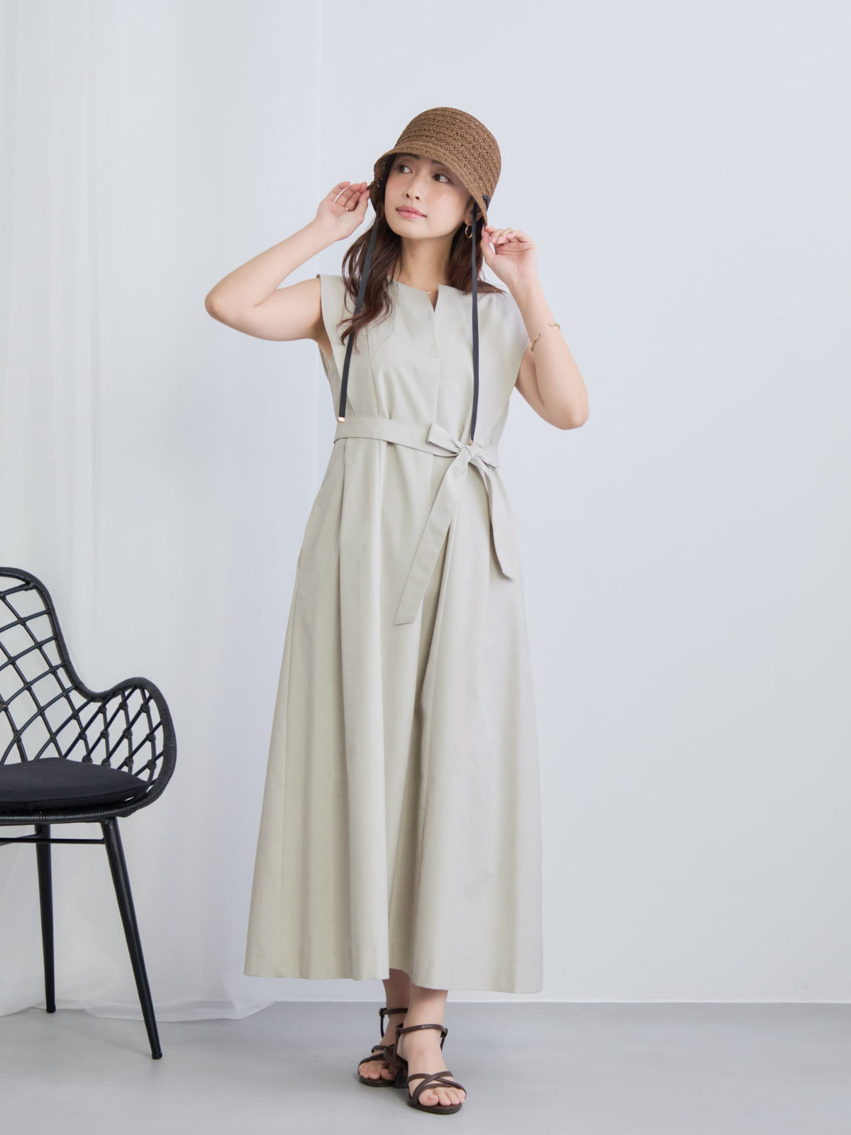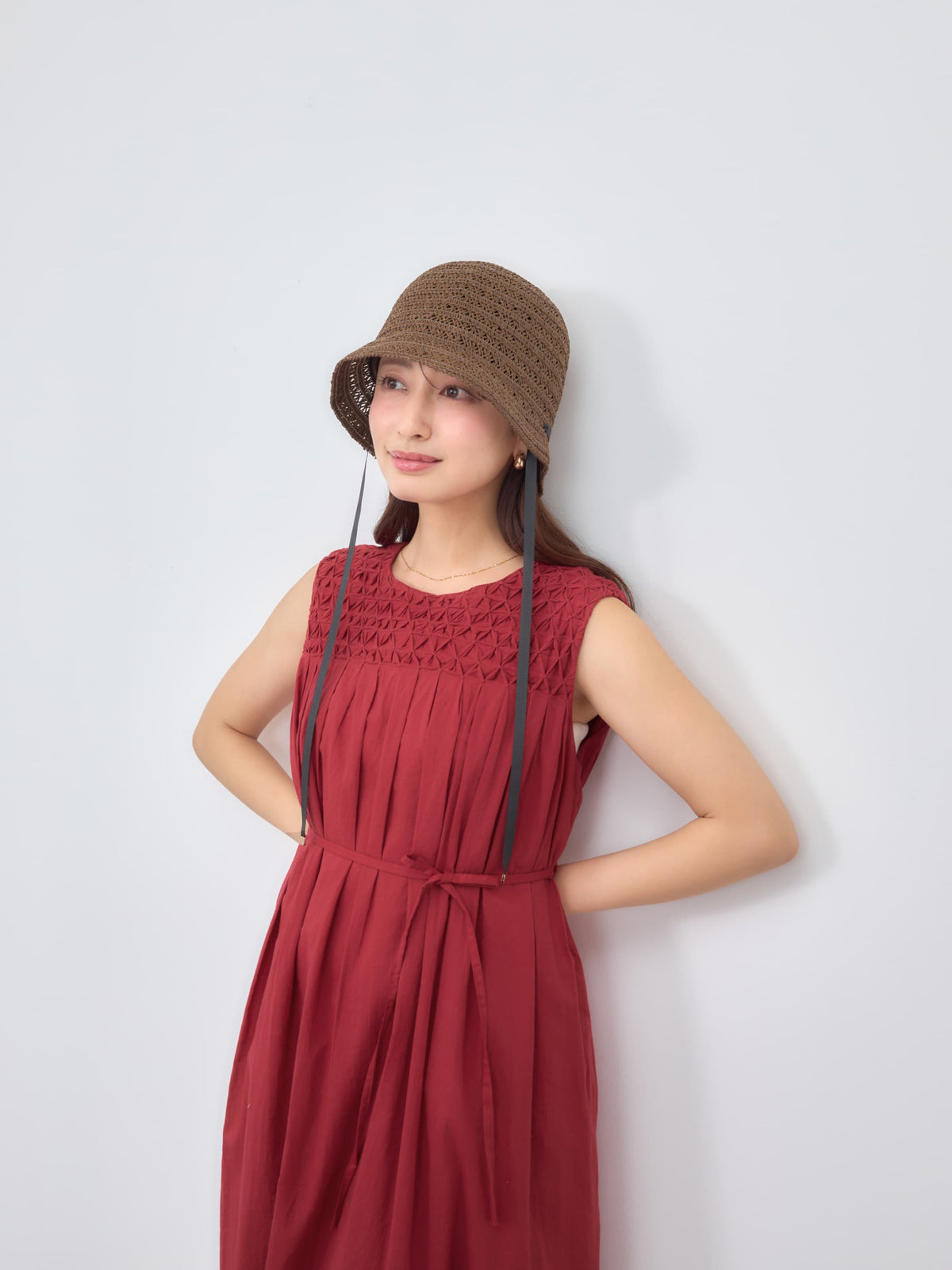 高さや広がりすぎないブリムなど、小柄さんに合わせたサイズ設計でバランスの良いシルエットに仕上げているので、顔まわりをコンパクトに見せてくれます。サイドに配した細めのリボンがさりげないアクセントに。内側で頭まわりを調整できる仕様も嬉しいポイント。ナチュラルながらも女性らしさを引き立てる大人のサマーハットです。