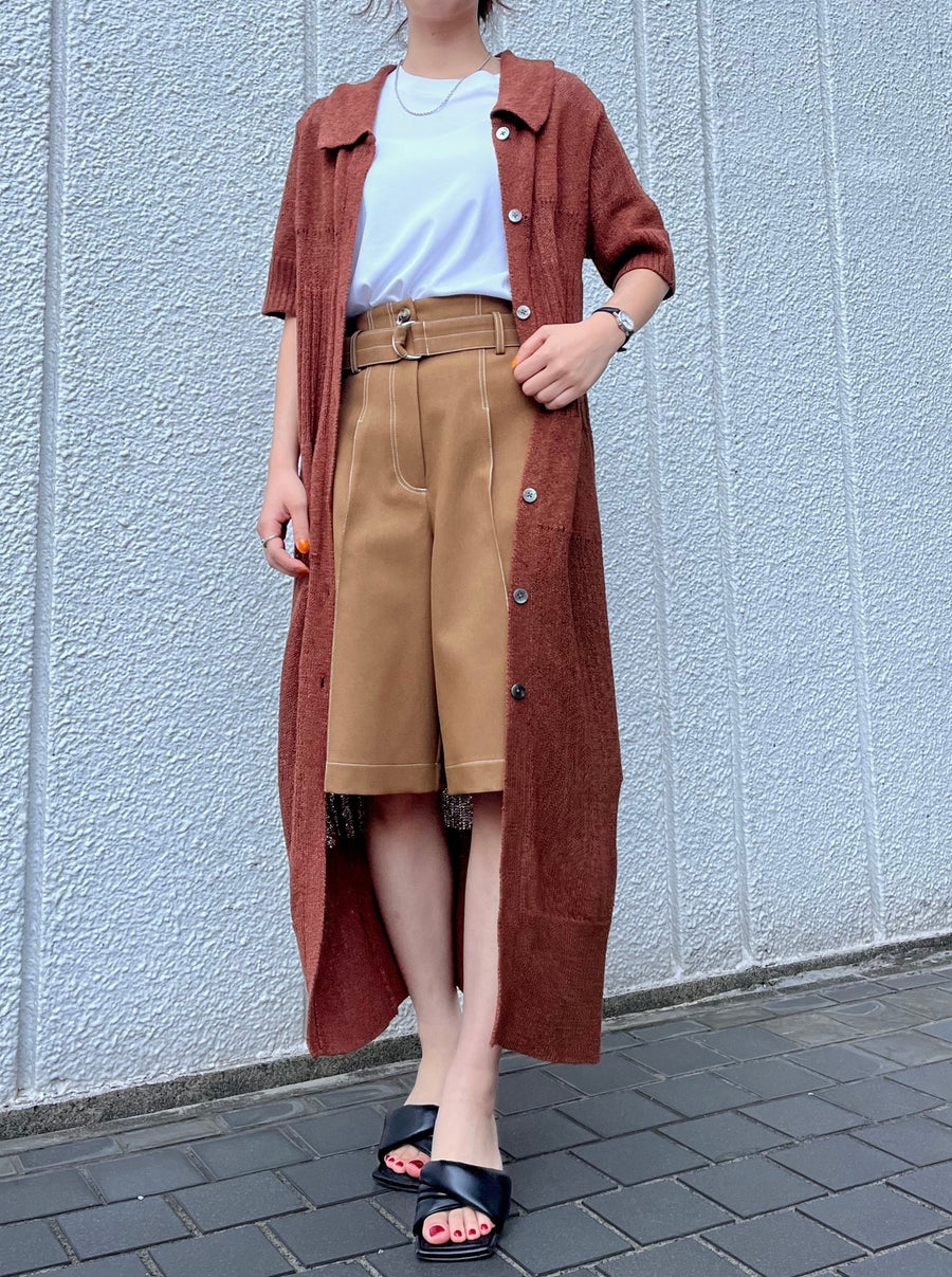 アクリル、ナイロンが混ざることで少しドライタッチな質感も加わり春夏らしい素材感に仕上がっています。