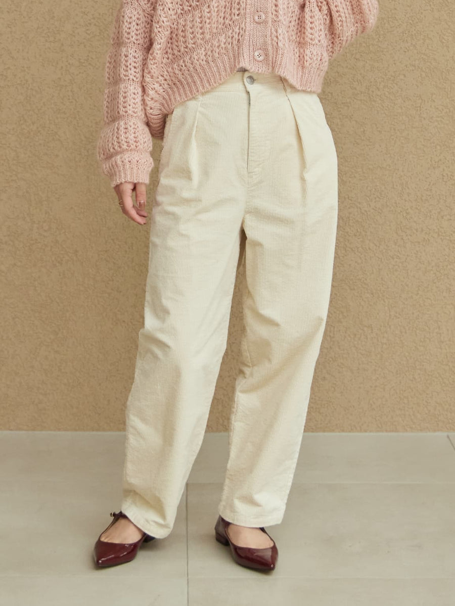 ほんのりカーヴィーなシルエットのコーデュロイパンツ。腰回りをカバーしてくれるワンタックデザインで、製品洗い加工を施しナチュラルな風合いが特徴。細すぎず、太すぎないコールは、冬の装いに程よく抜け感をプラスしてくれるアイテムです。