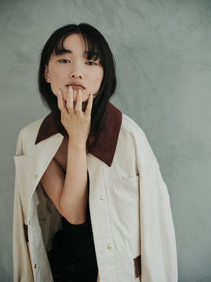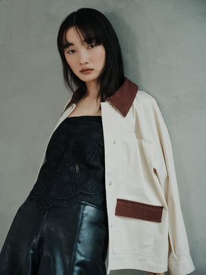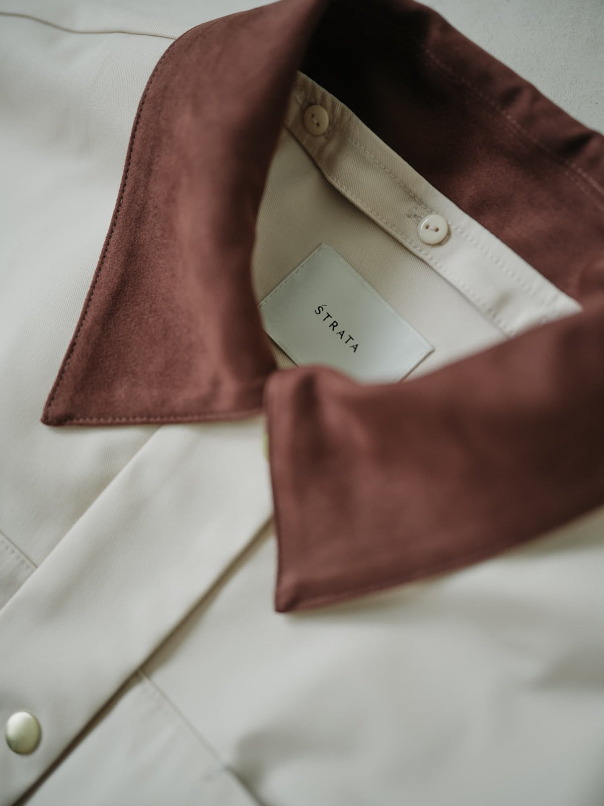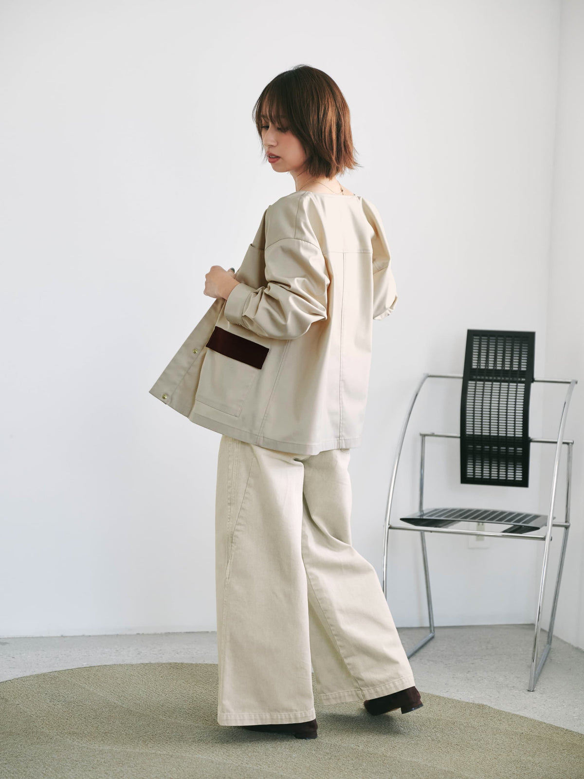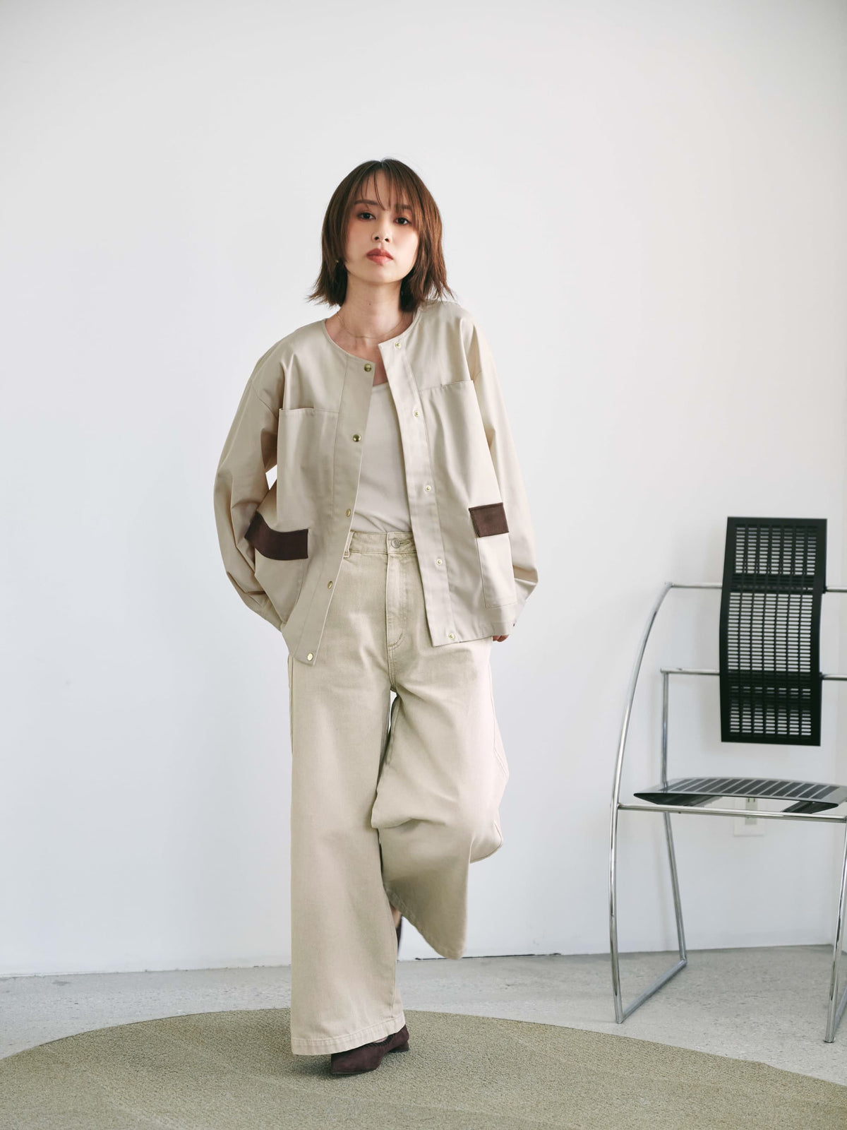 襟を外して2wayに、フェイクスエードで差をつける、大人のこなれジャケット