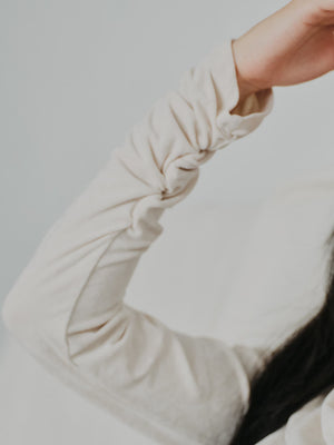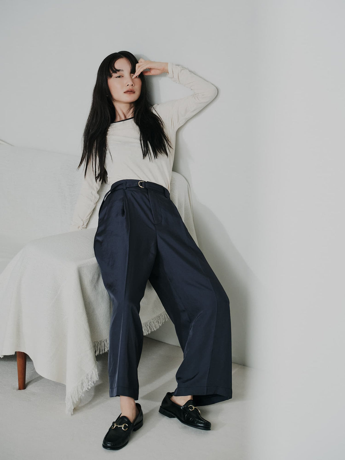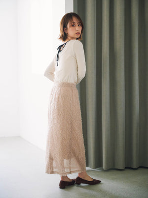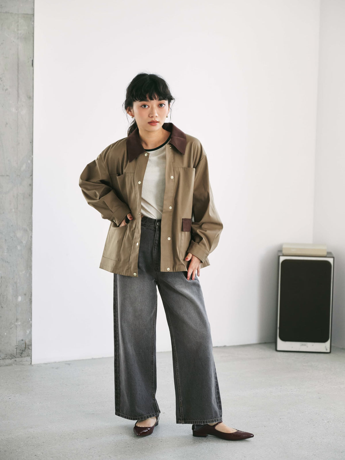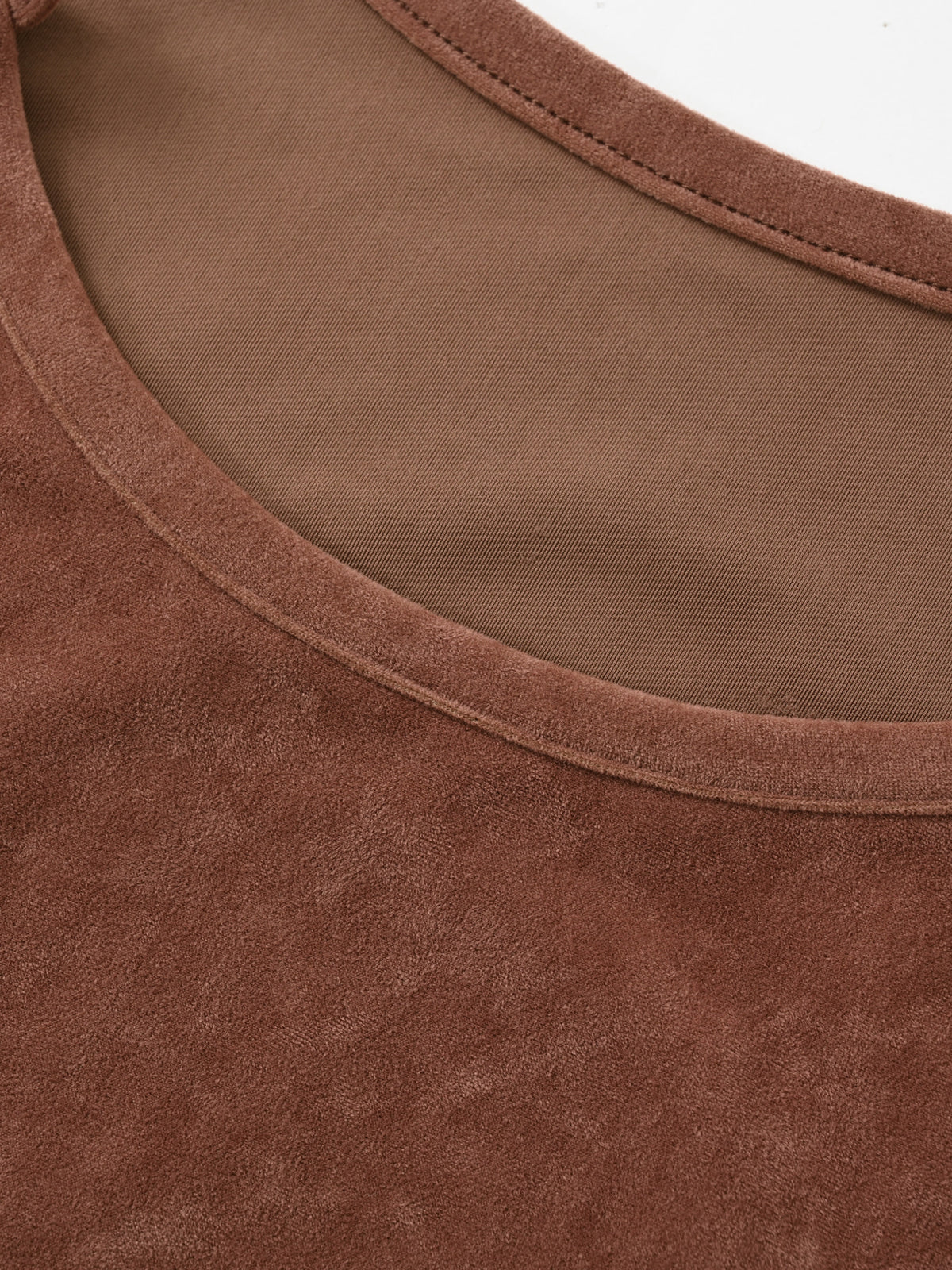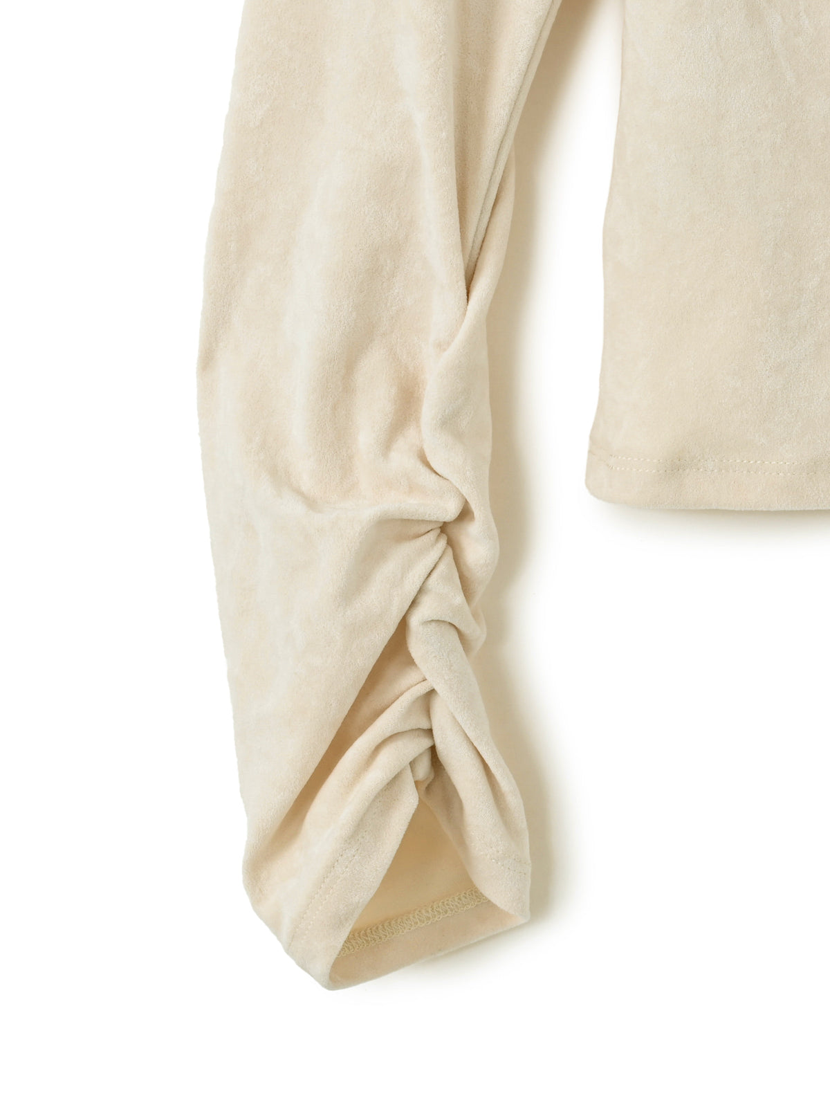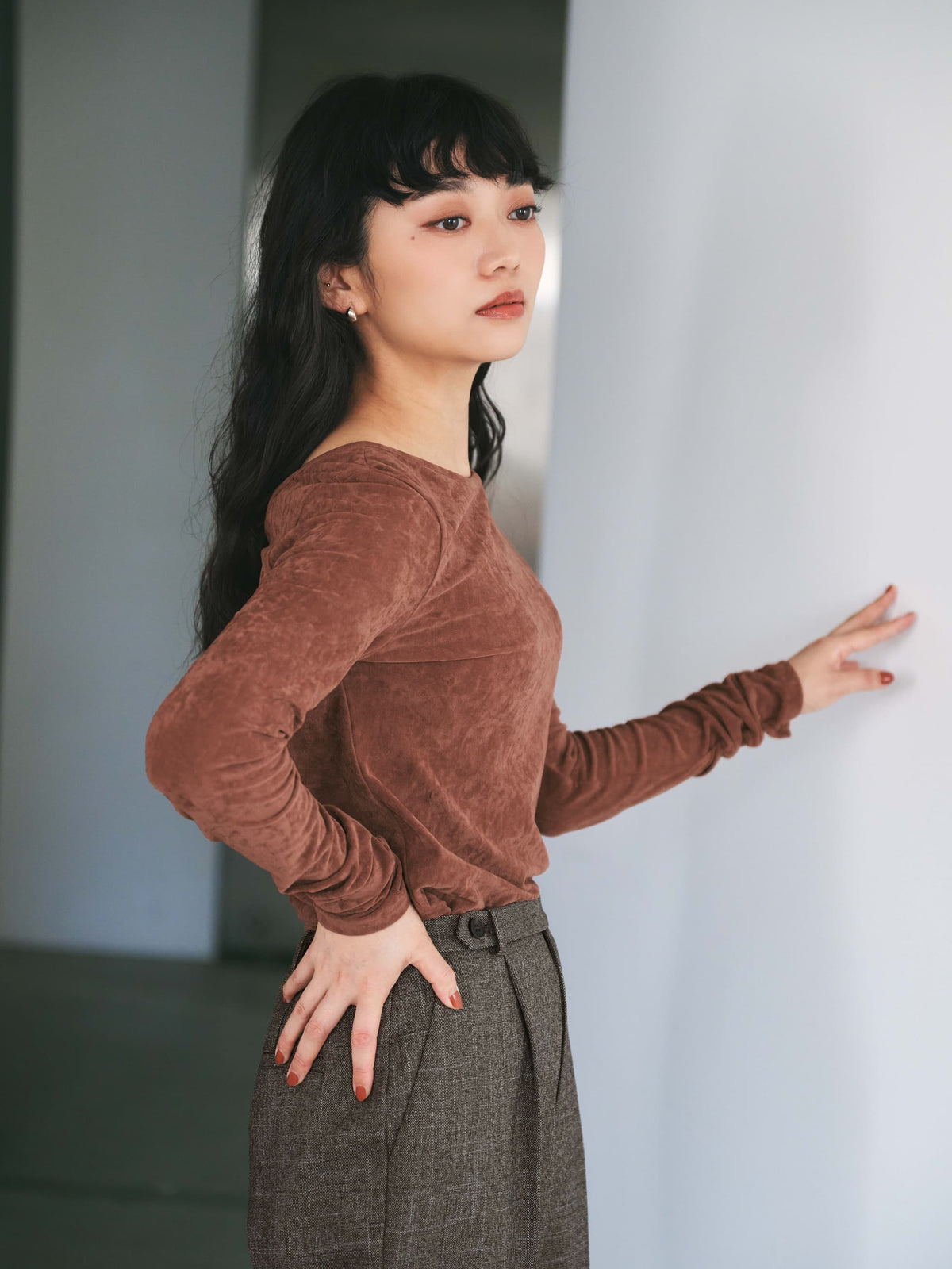 いつものカットソー代わりに取り入れるだけで着こなしが新鮮に。1枚でもアウターやジャケットのインナーに大活躍です。同素材のトリアセベロアナロースカートとセットアップで着るのもオススメ。