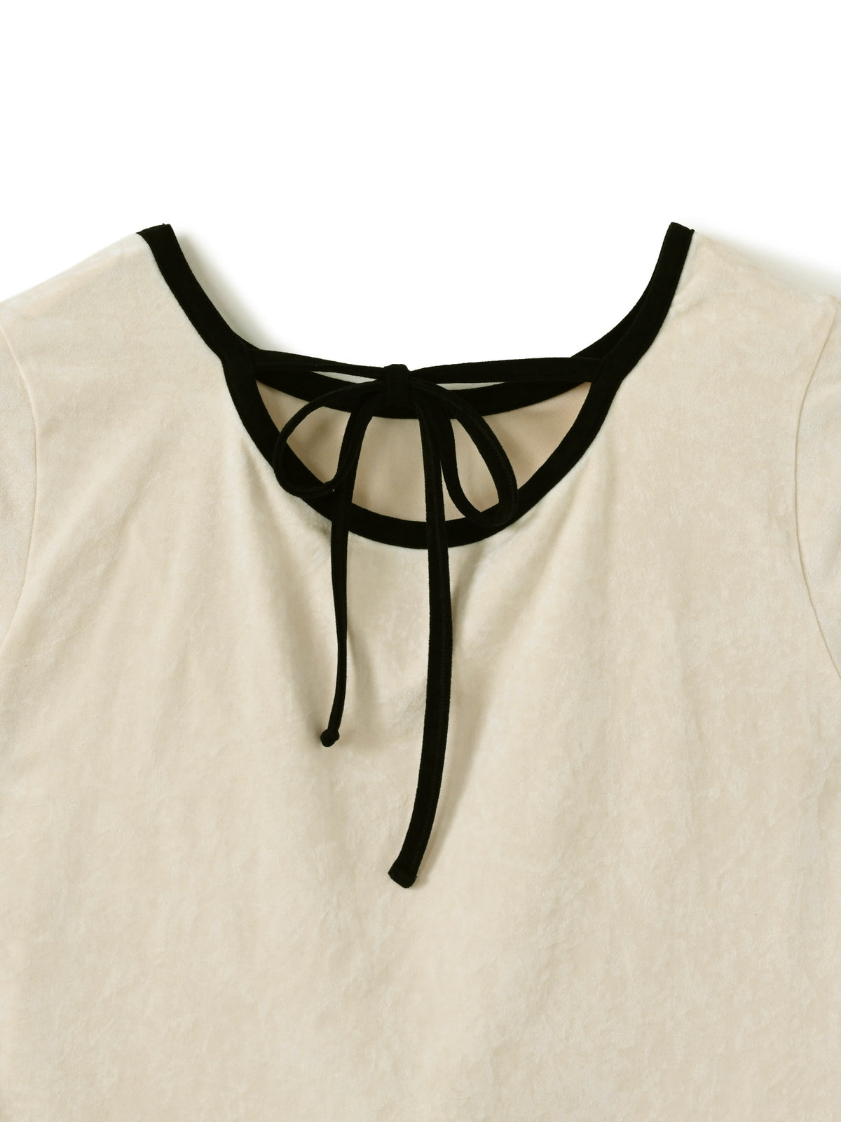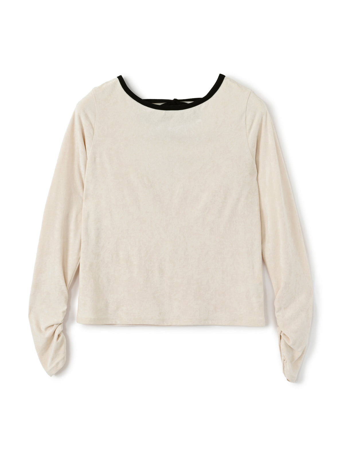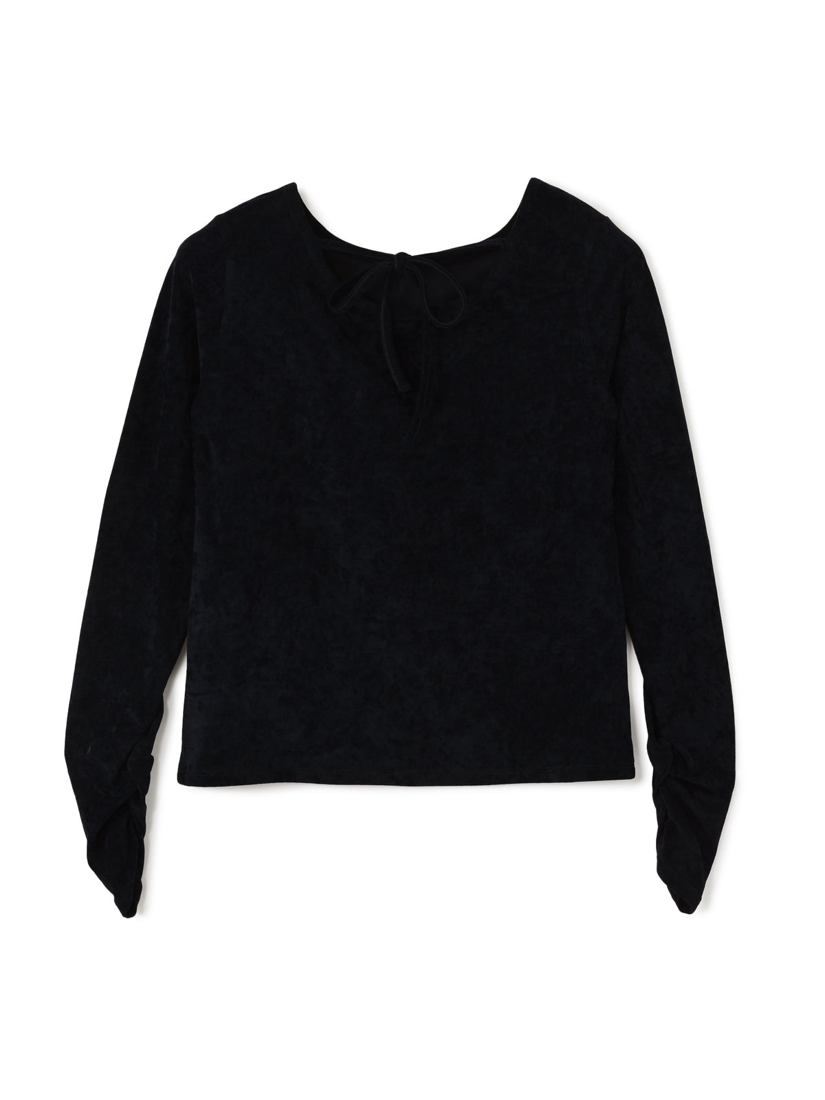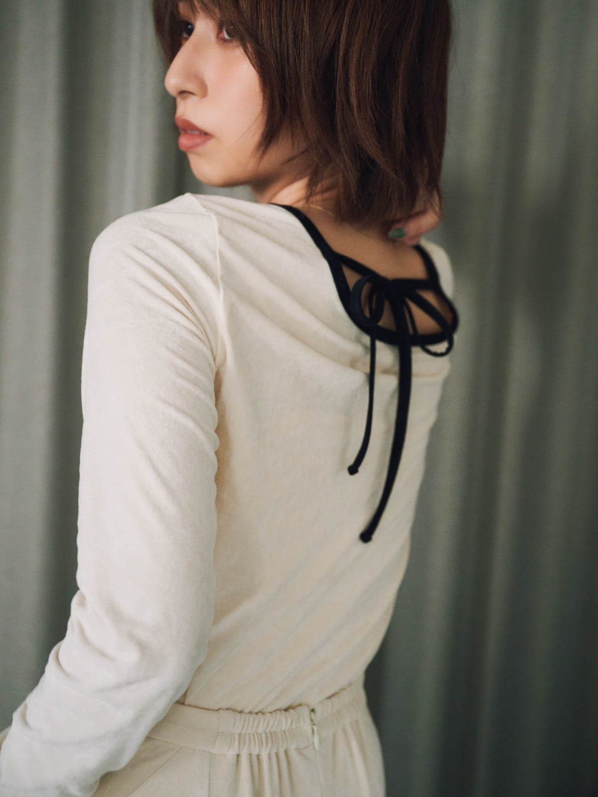 大人の光沢を纏う!リボン×背中開きで後ろ姿も抜かりないベロアトップス