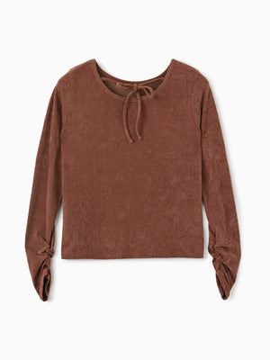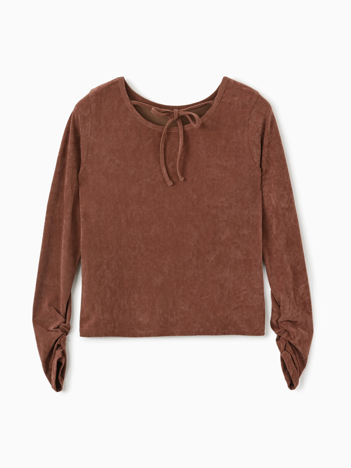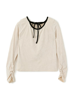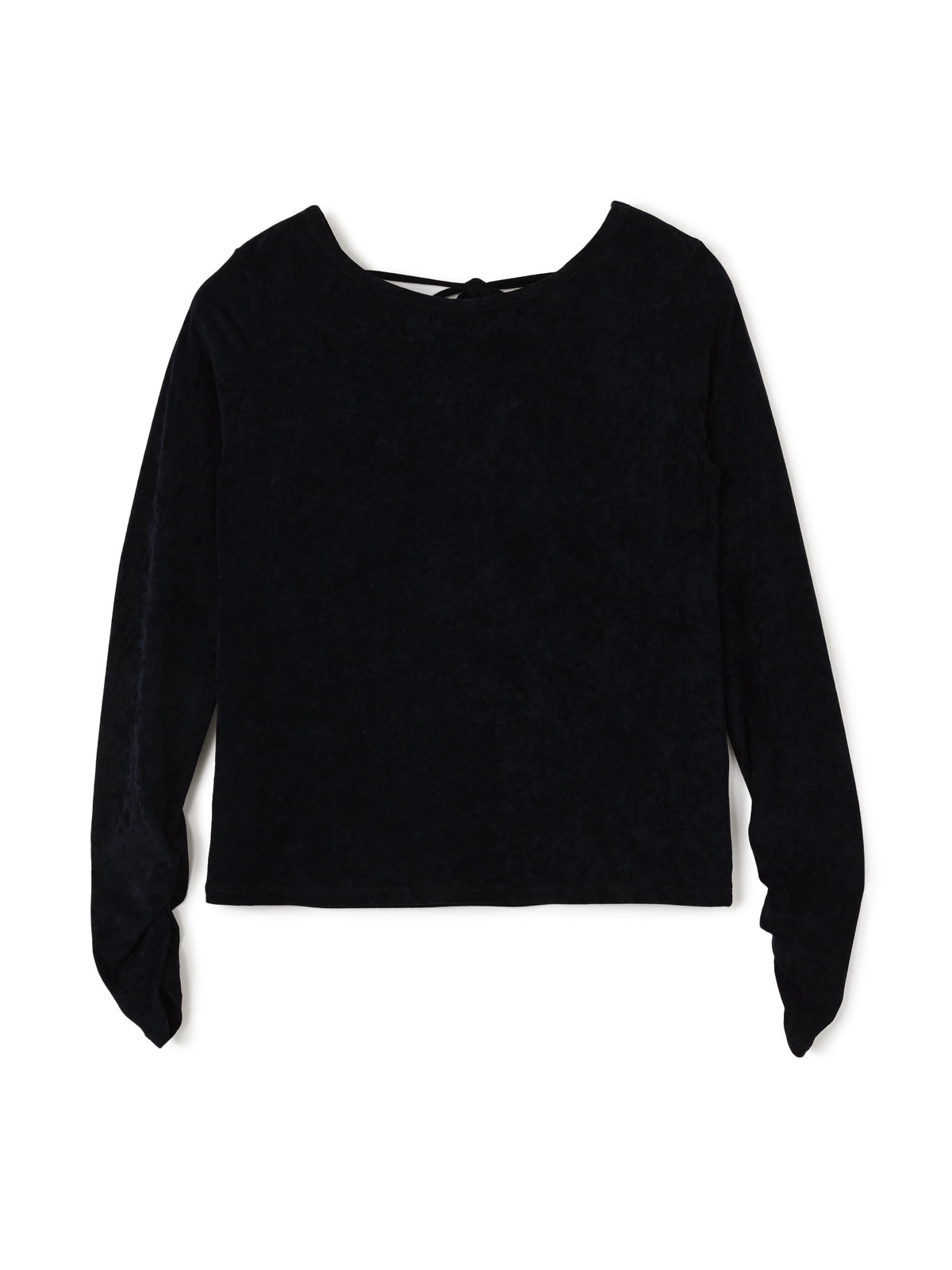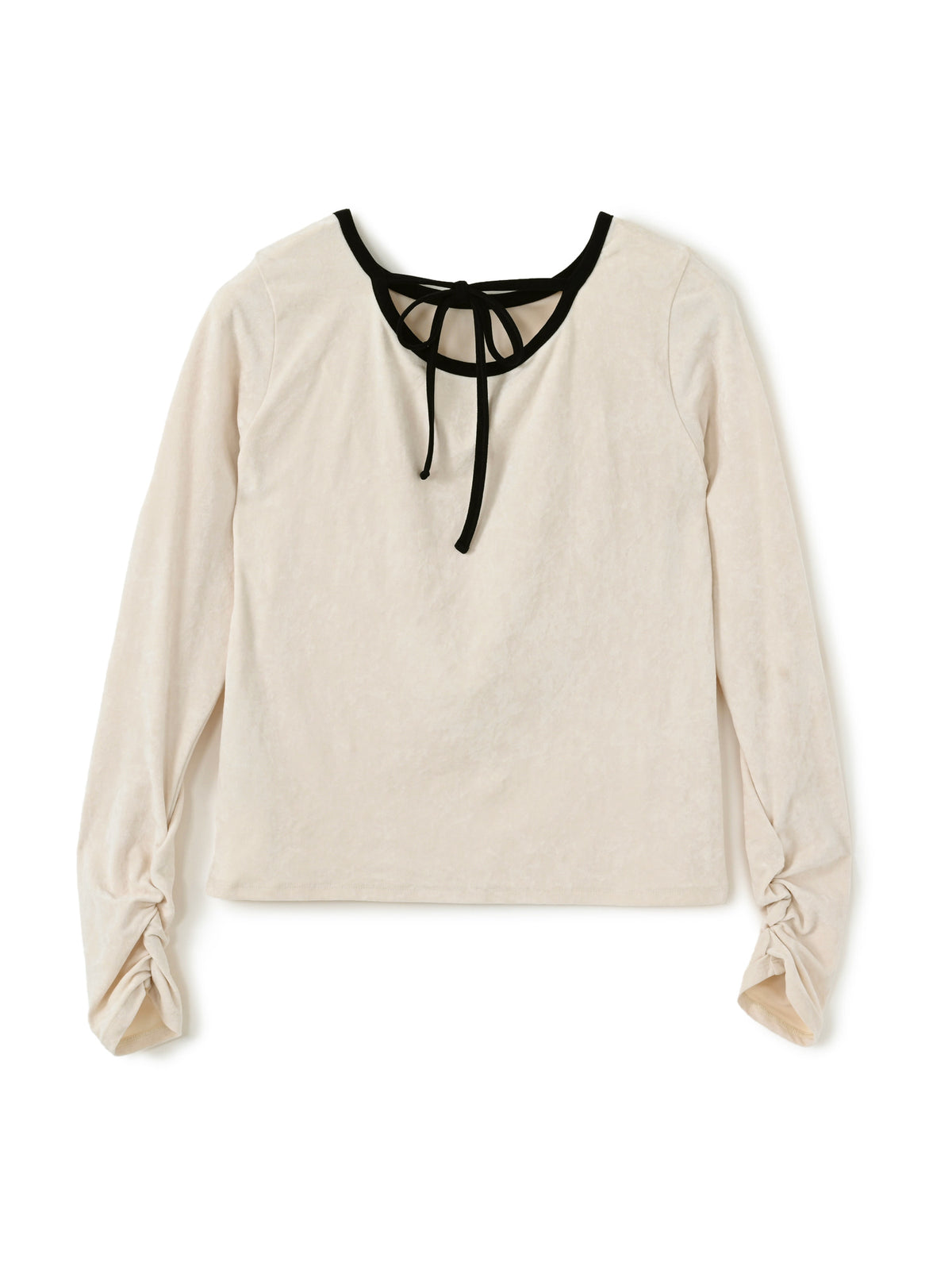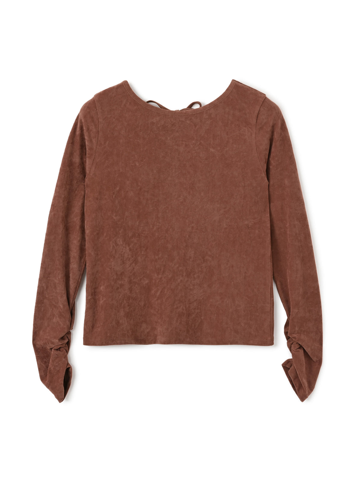 大人の光沢を纏う!リボン×背中開きで後ろ姿も抜かりないベロアトップス