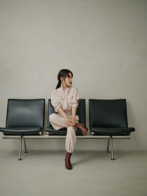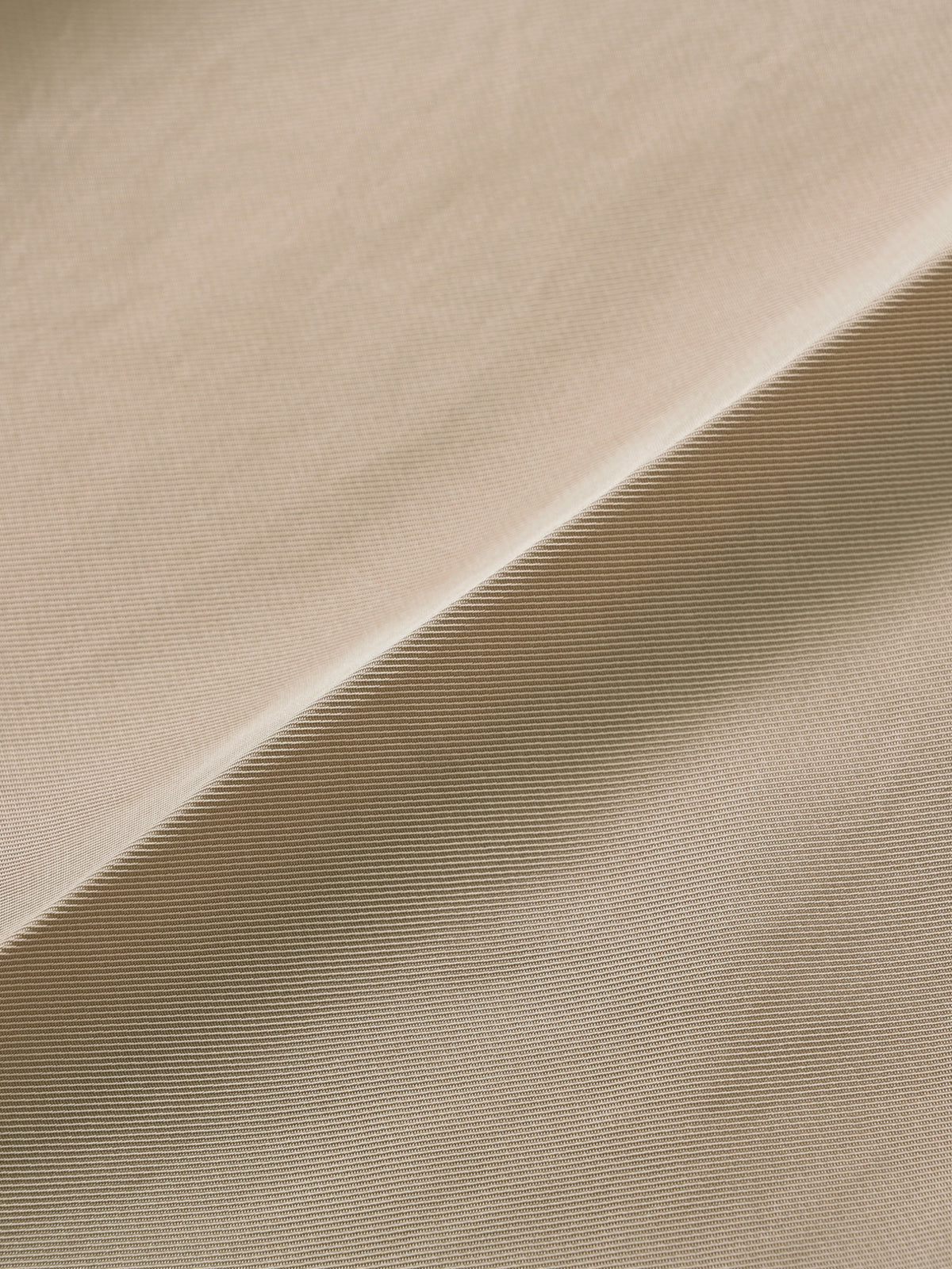 リサイクルポリエステルを38%使用した、適度な肉感と落ち感のあるツイル素材を使用。上品な艶感があり、程よく綺麗めな印象をプラスしてくれ、ロングシーズン活躍してくれる素材感が魅力です。