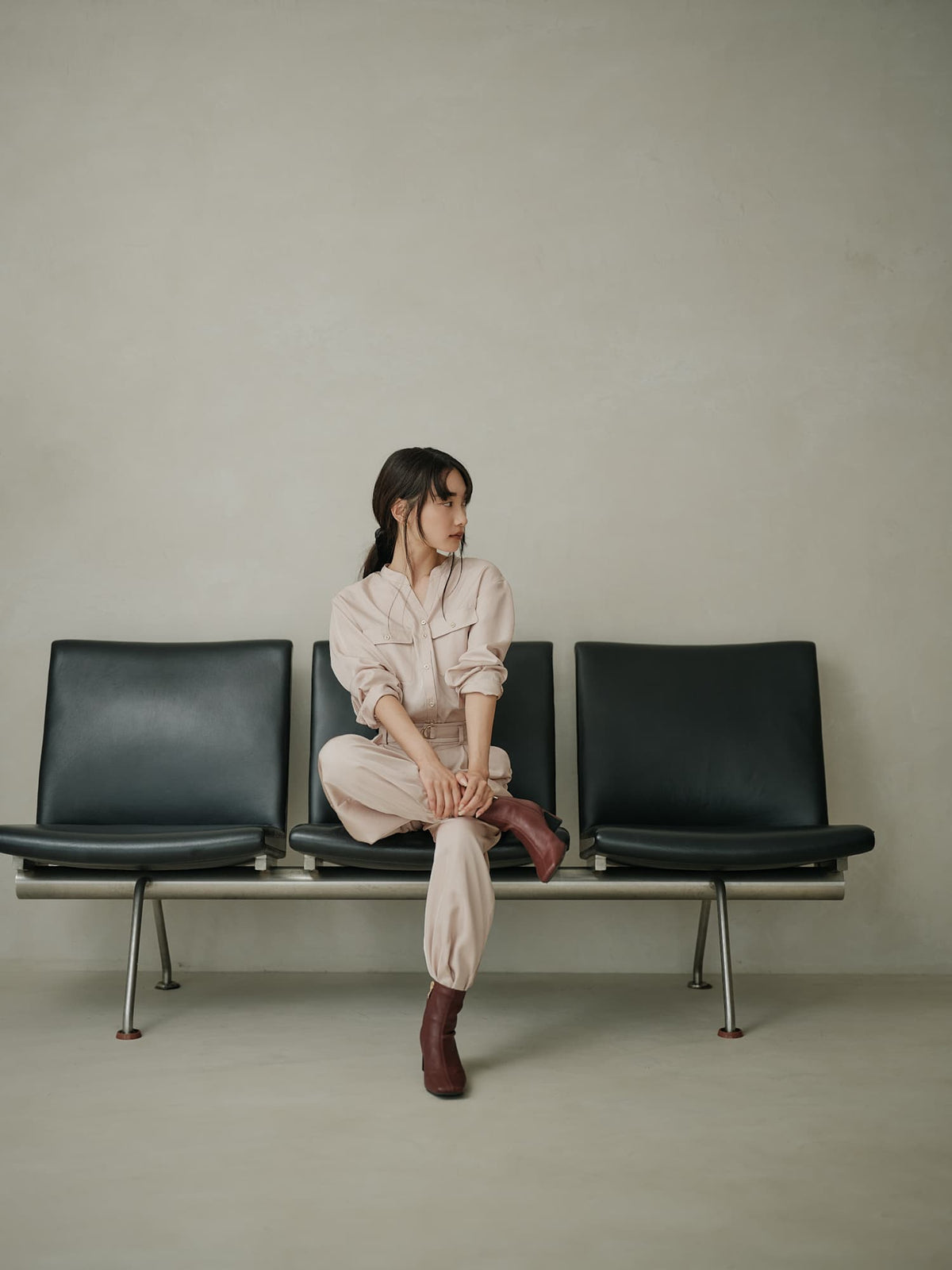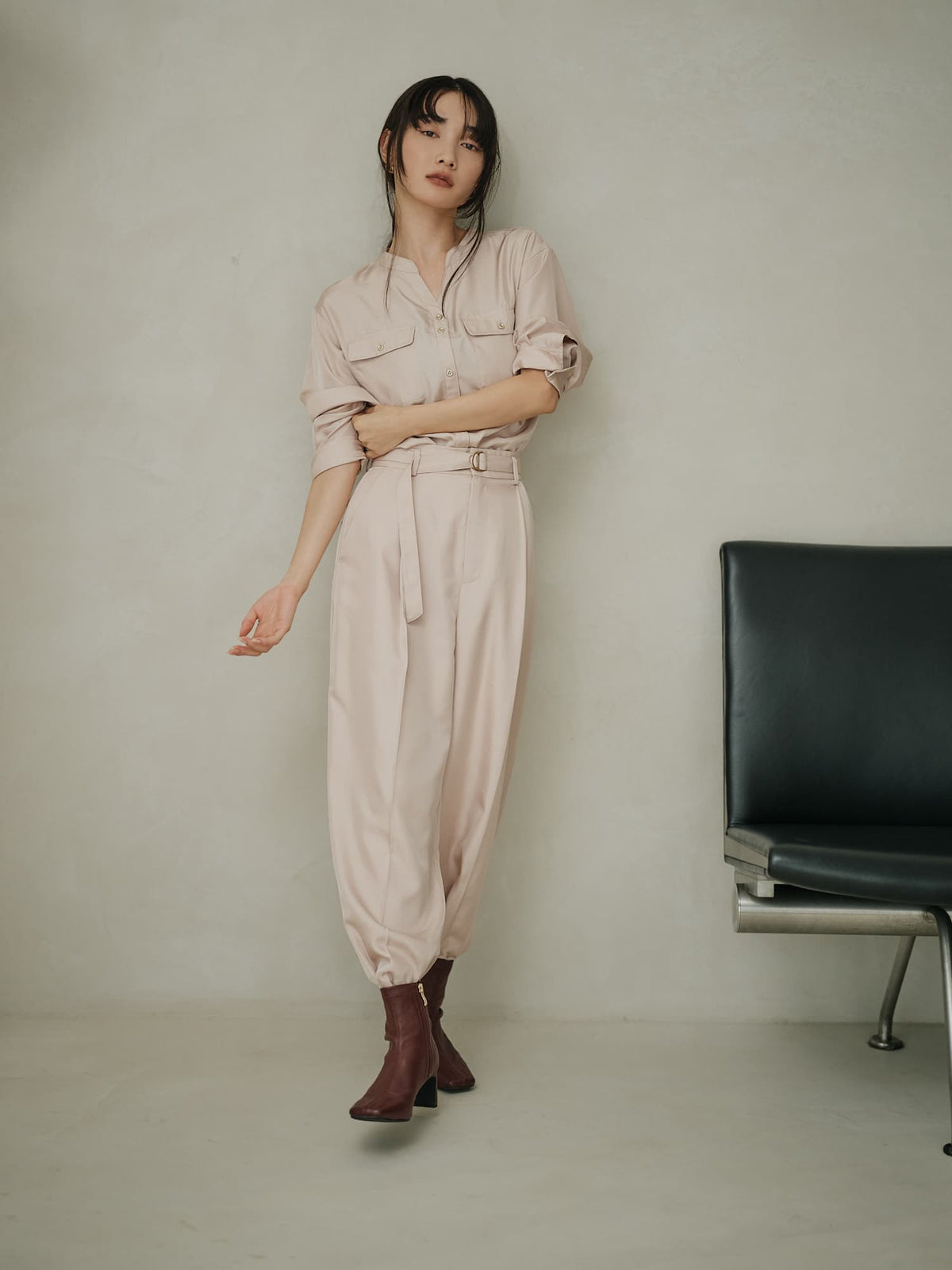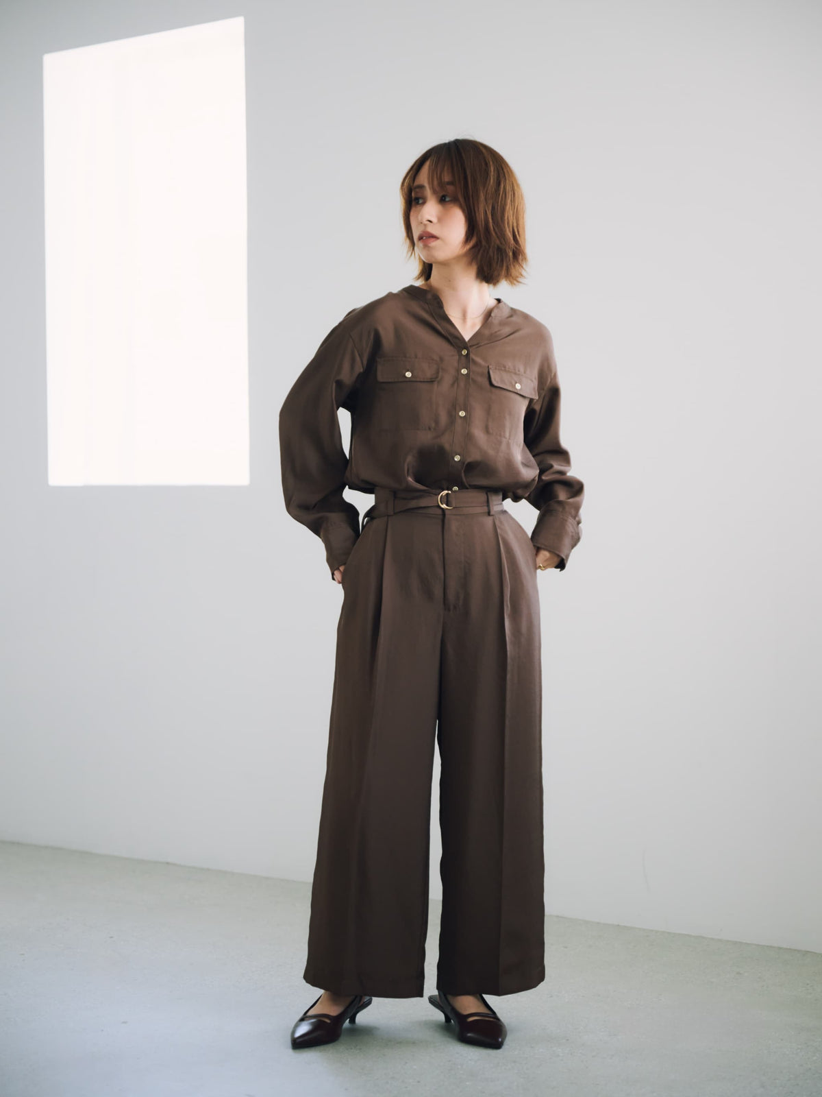 同素材でお作りしたブライトツイルダブルポケットシャツと合わせてオールインワン見えのコーディネートもおすすめです。 単品使いはもちろん、リラックス感がありながらも綺麗めな印象をプラスしてくれるのでデイリー使いからお仕事着にも。