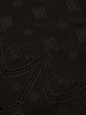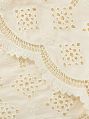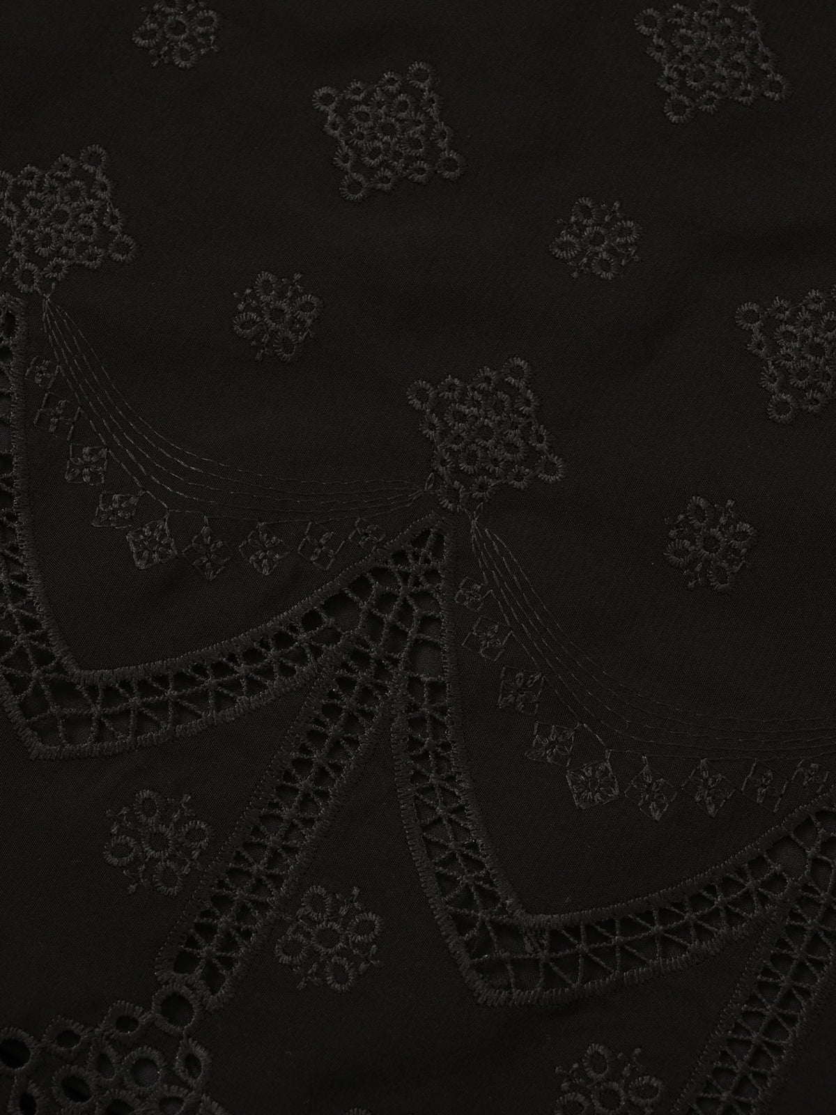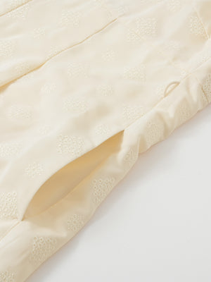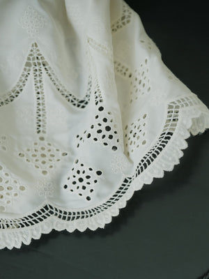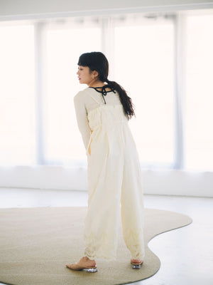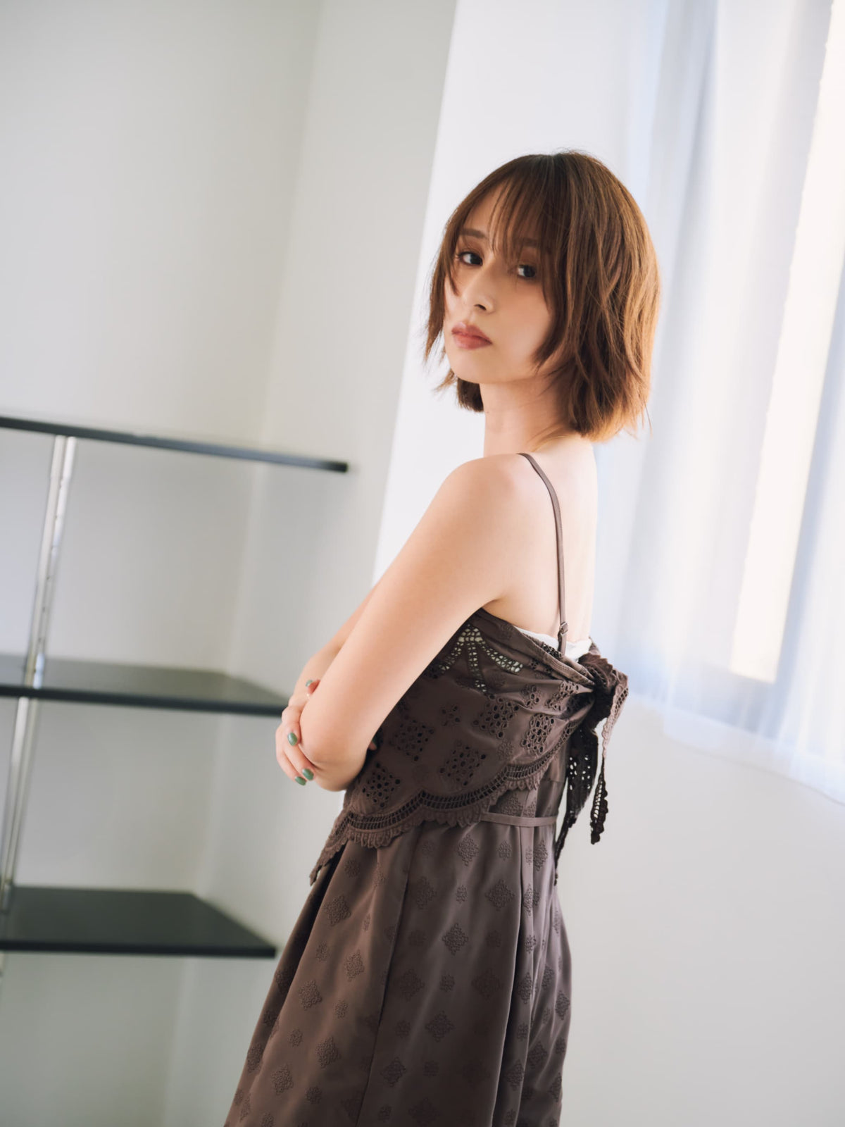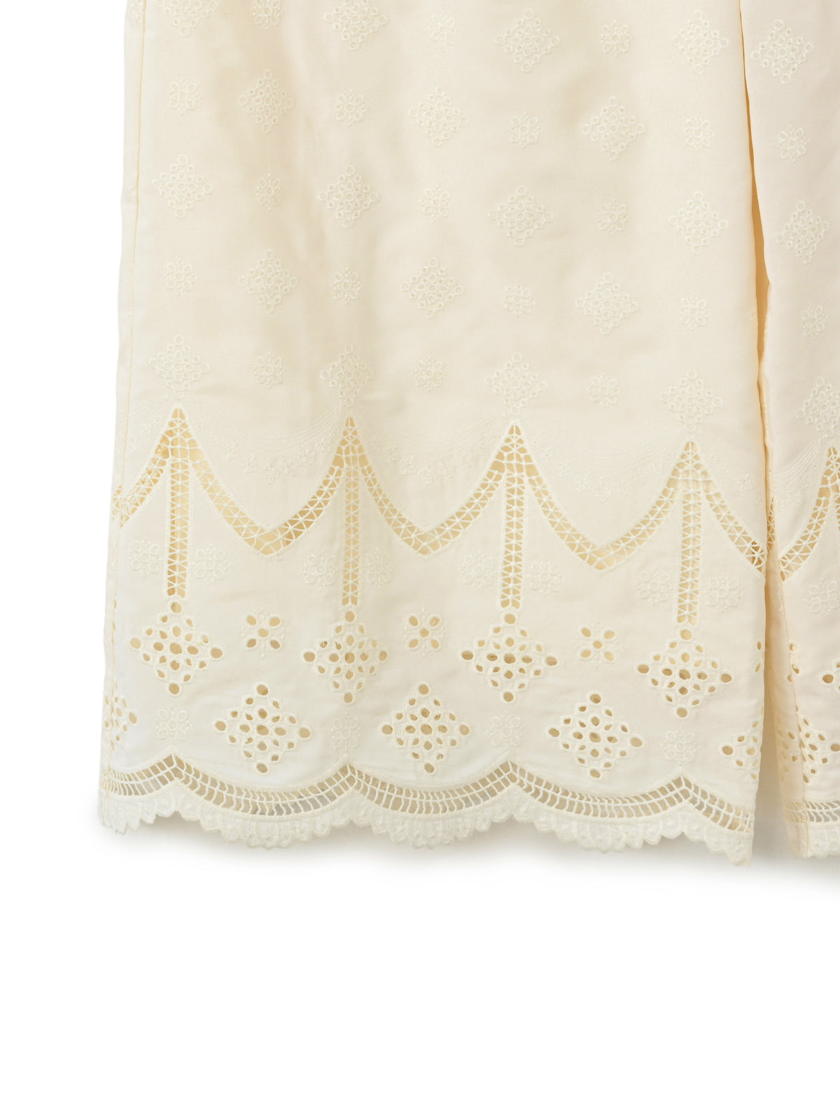 スカラップ部分には抜け感が出るように図案のサイズを調整し、小柄さんでも着用しやすく1枚で着映えするアイテムに。フェミニンさがありながらも大人も着用しやすい柄に仕上げたSTRATAだけの特別なテキスタイルです。