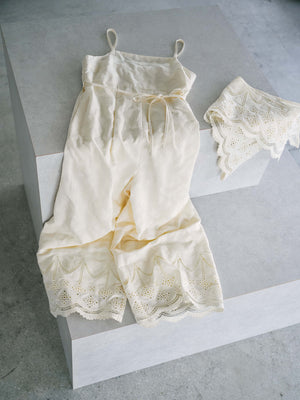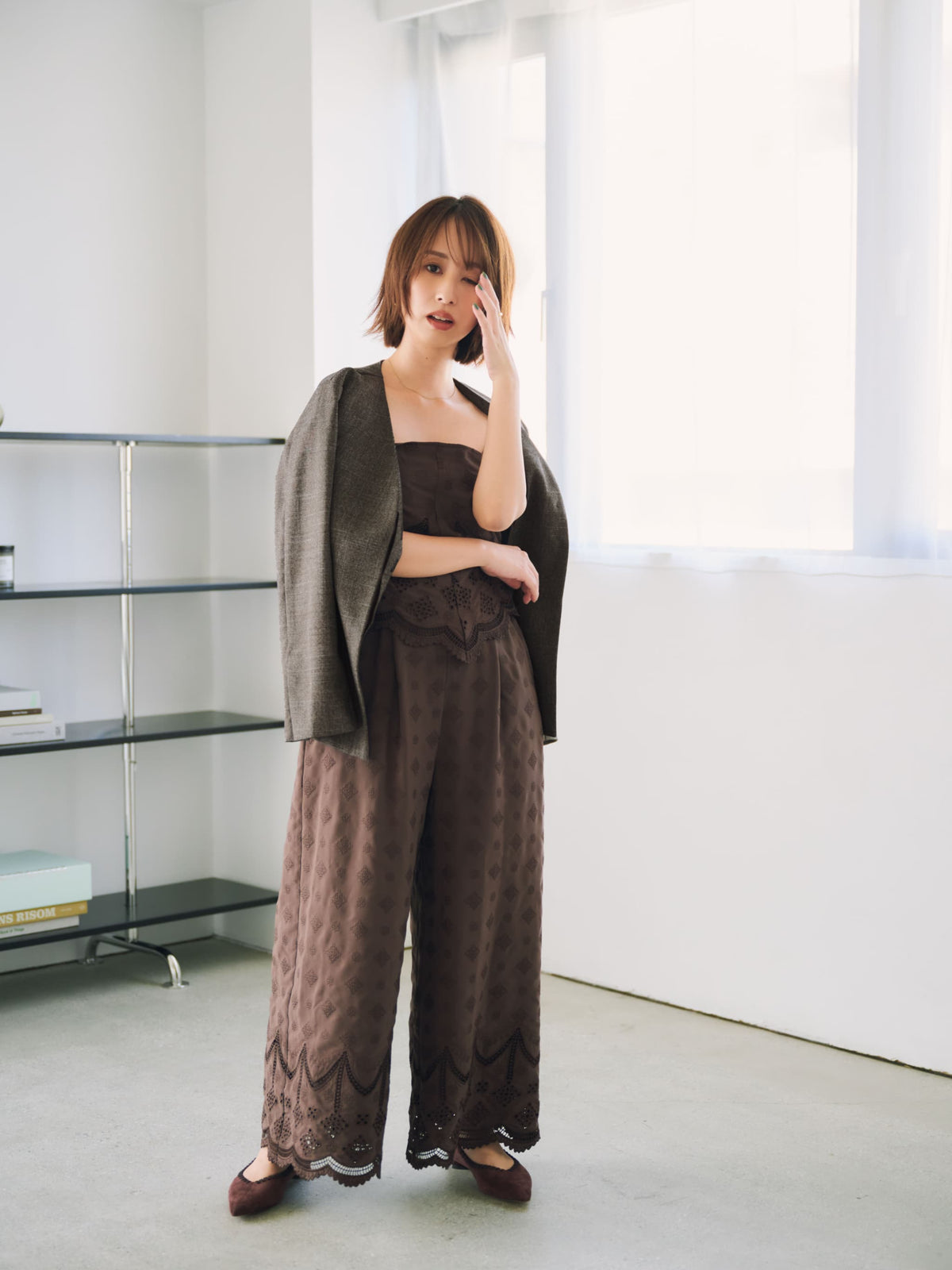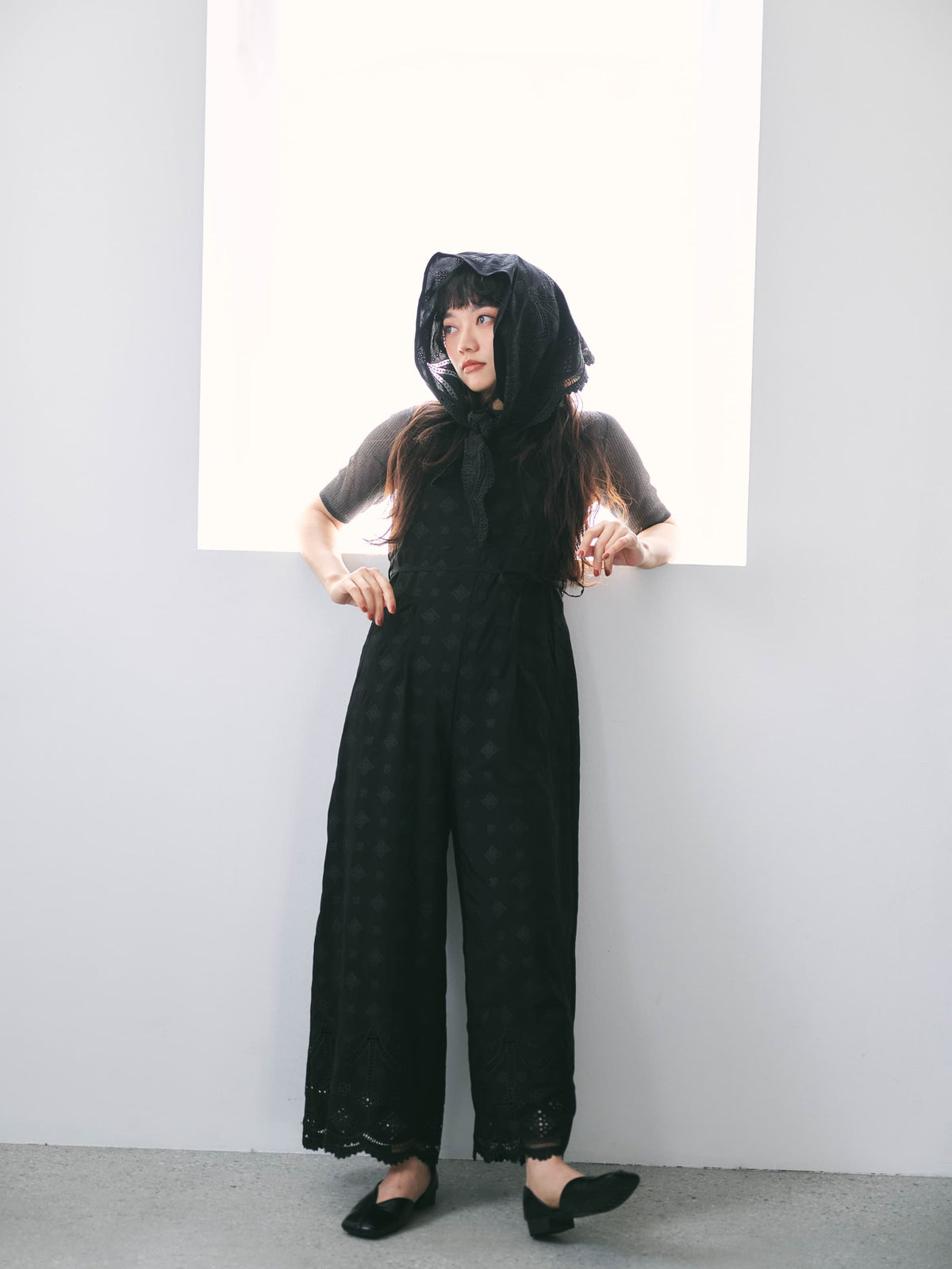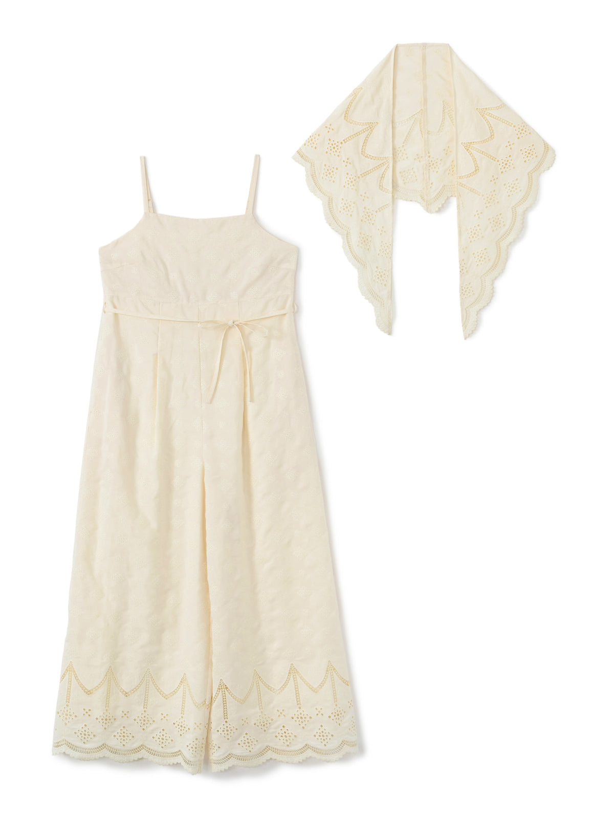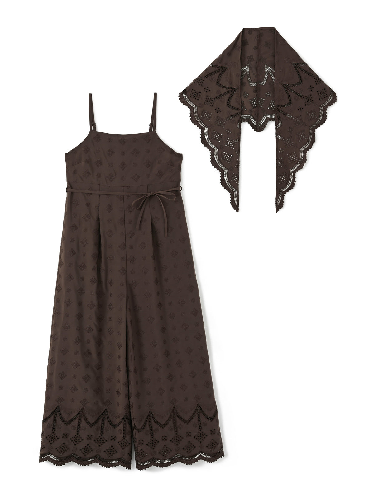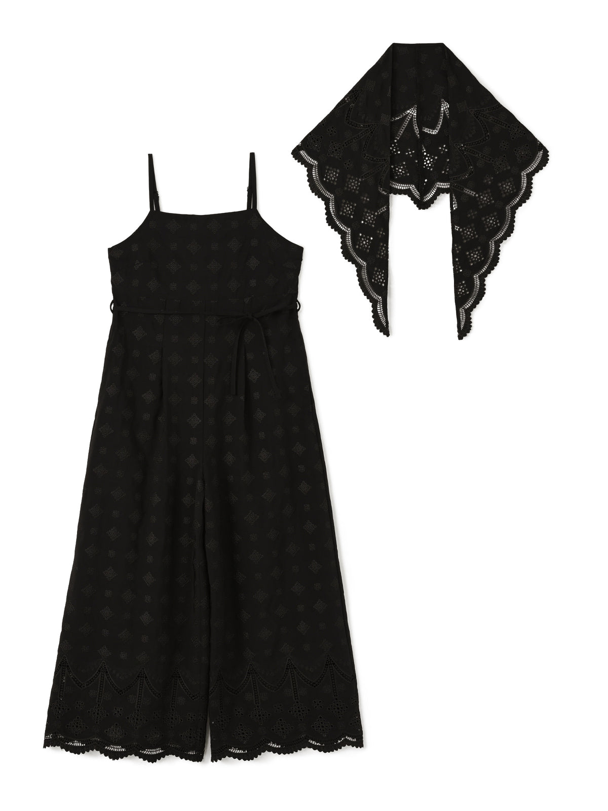 総柄刺繍が目を引く、1枚で主役級のオールインワン。トレンドのスカーフがセットになったクラフト感のある今年らしいアイテム。