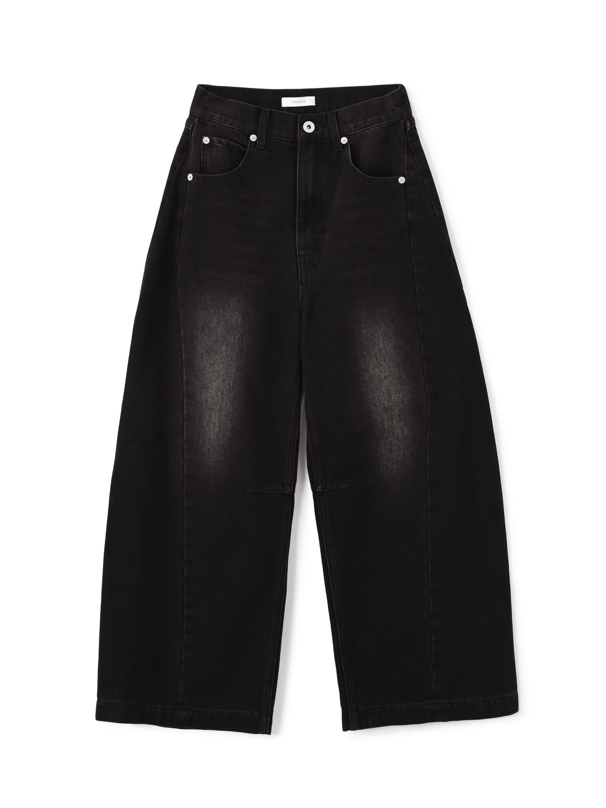 脇から切り替えを施し、膝位置にダーツを入れ全体に丸みを作ることで、トレンド感のあるシルエットに。小柄さんに合わせて設計したSTRATAならではのこだわりのシルエットです。